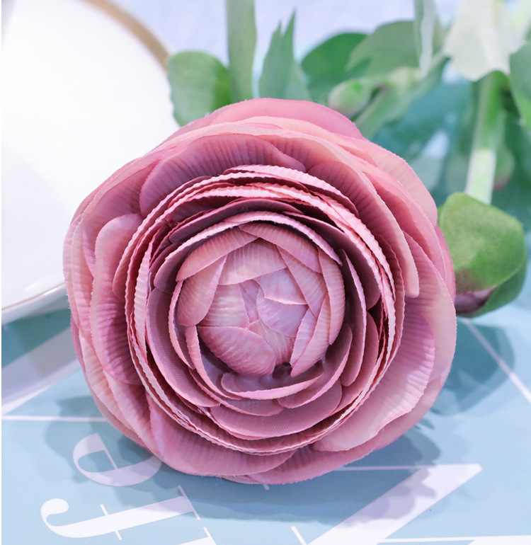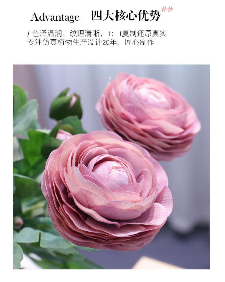 【畅销】50CM仿真手感保湿2头大毛莨假花 仿真保湿露莲花批发