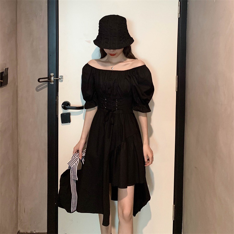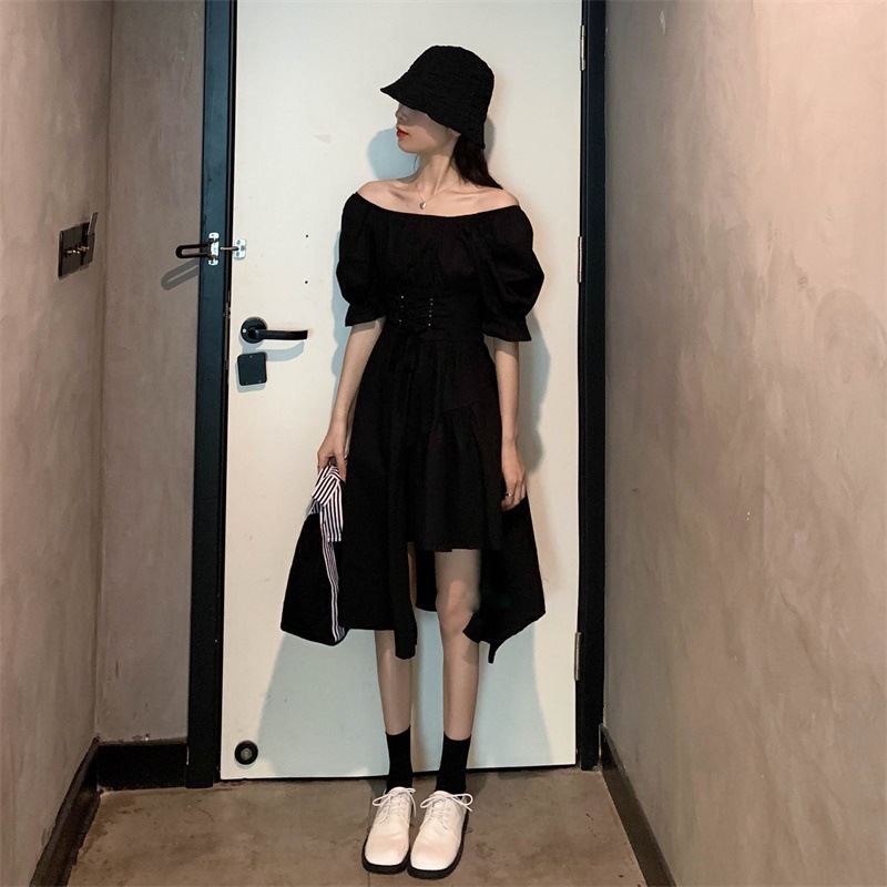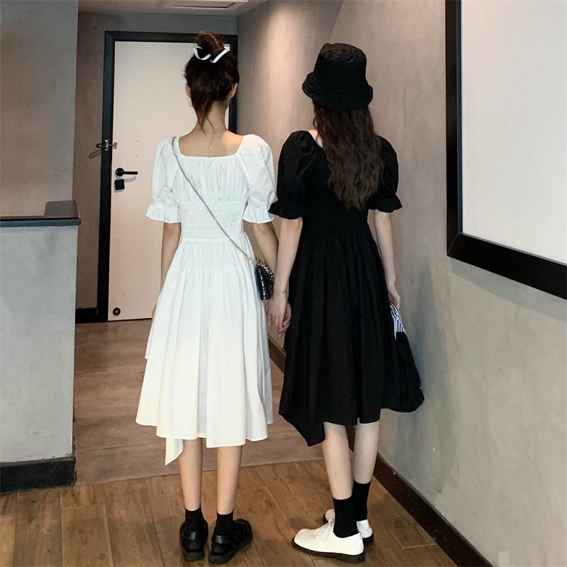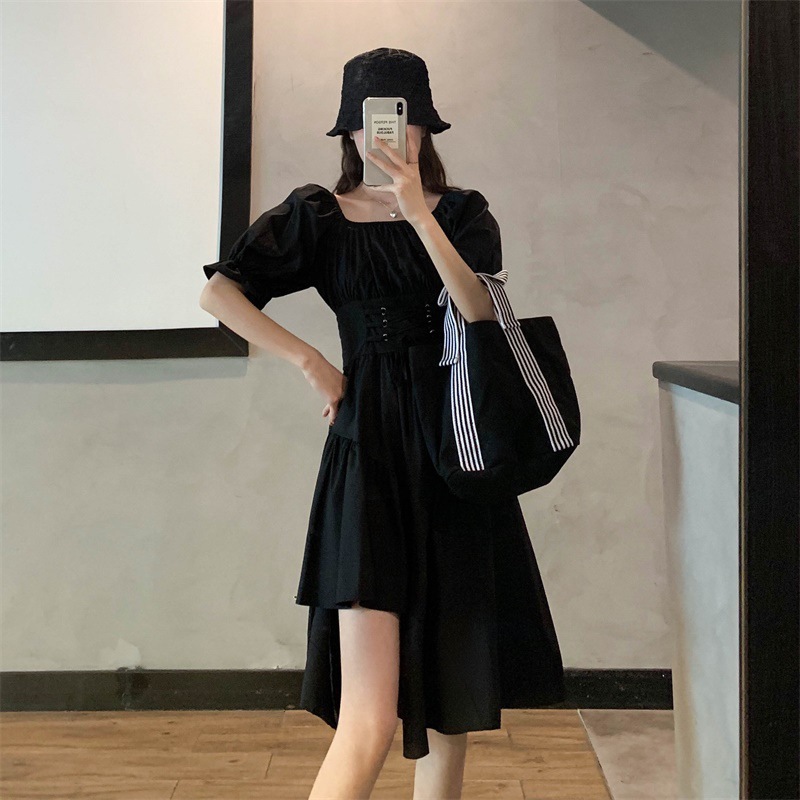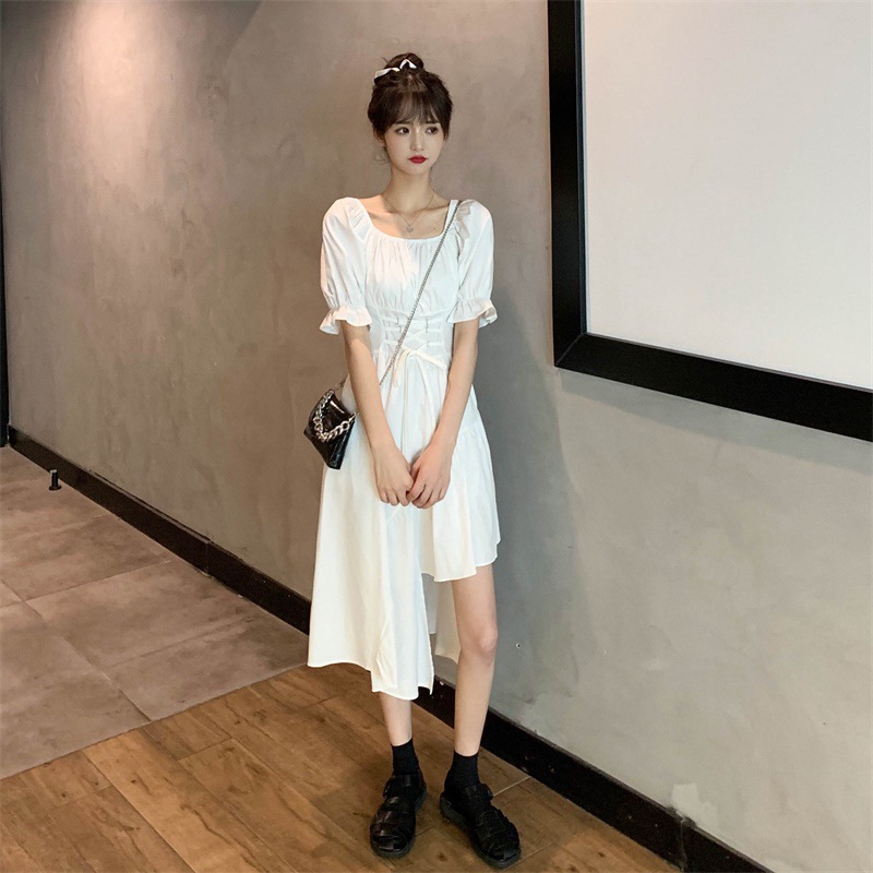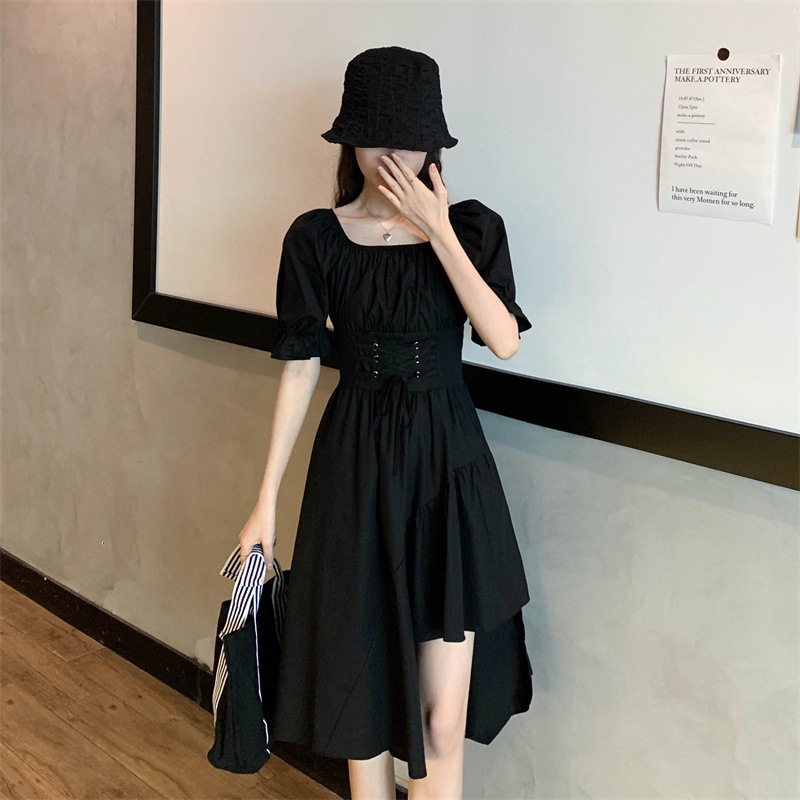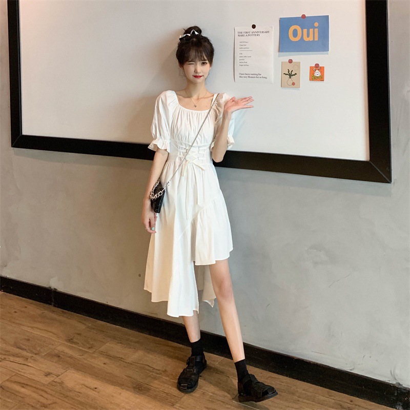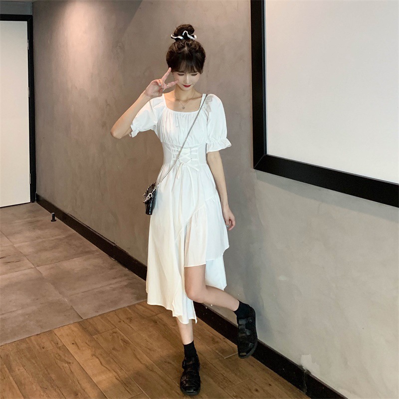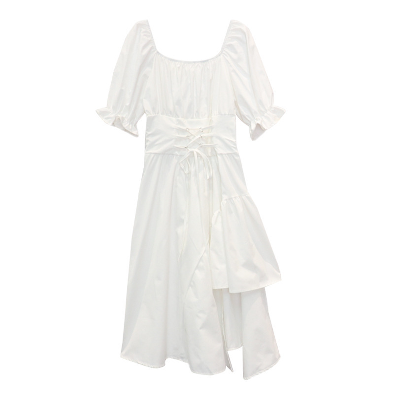 2022新款设计感不规则甜酷风裙子女装夏季收腰复古初恋短袖连衣裙
