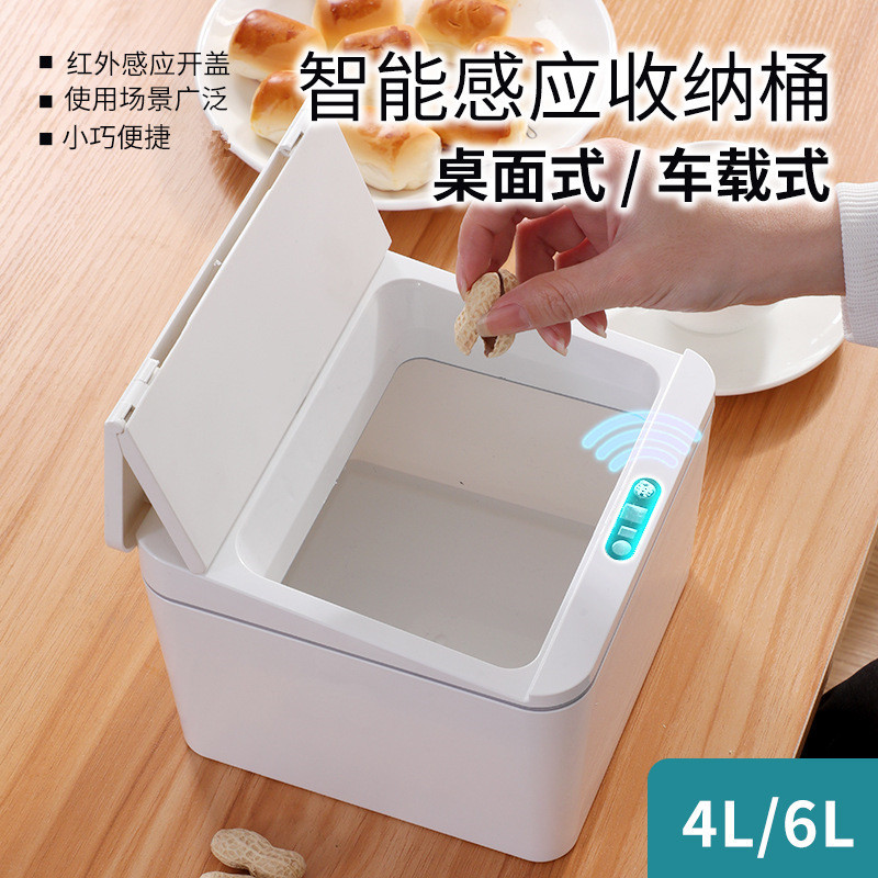 智能感应电动桌面车载垃圾桶收纳盒箱桌上宿舍办公室零食盒