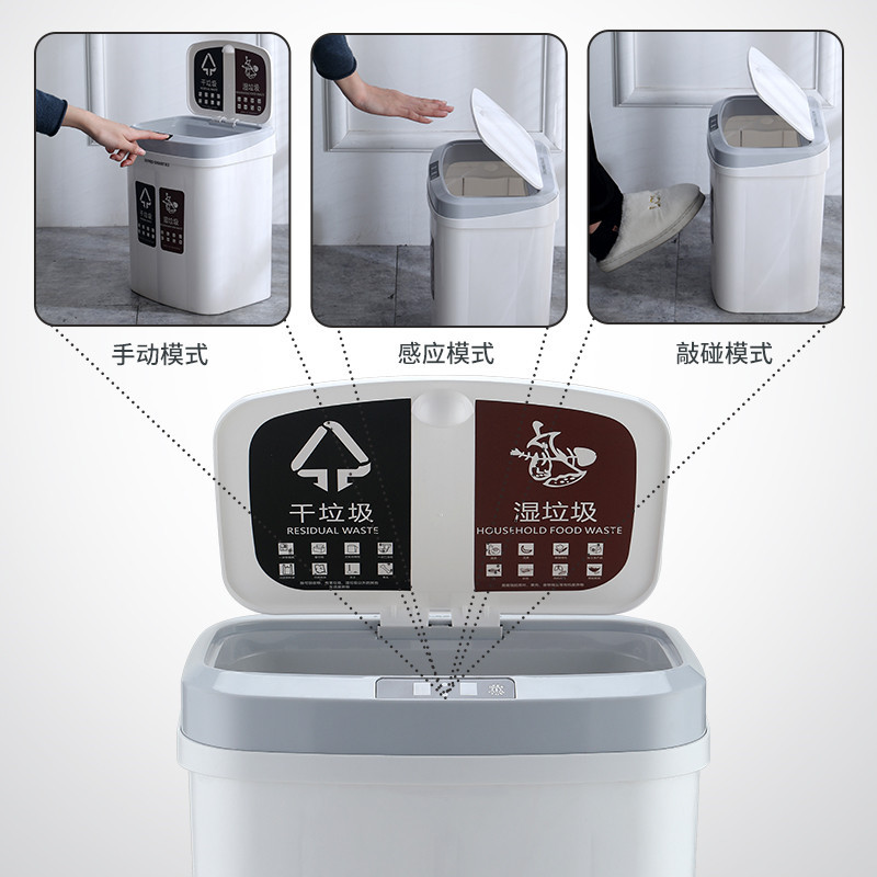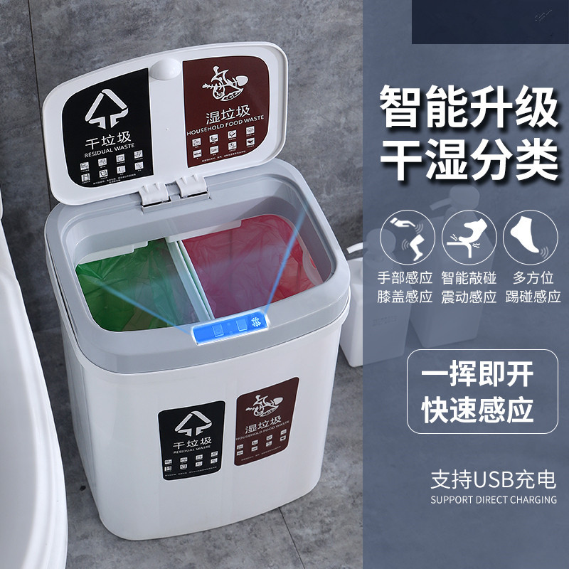 家用智能感应垃圾桶干湿分类无接触厨房卧室卫生间电动踢碰敲碰桶