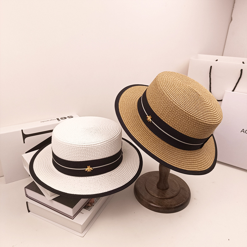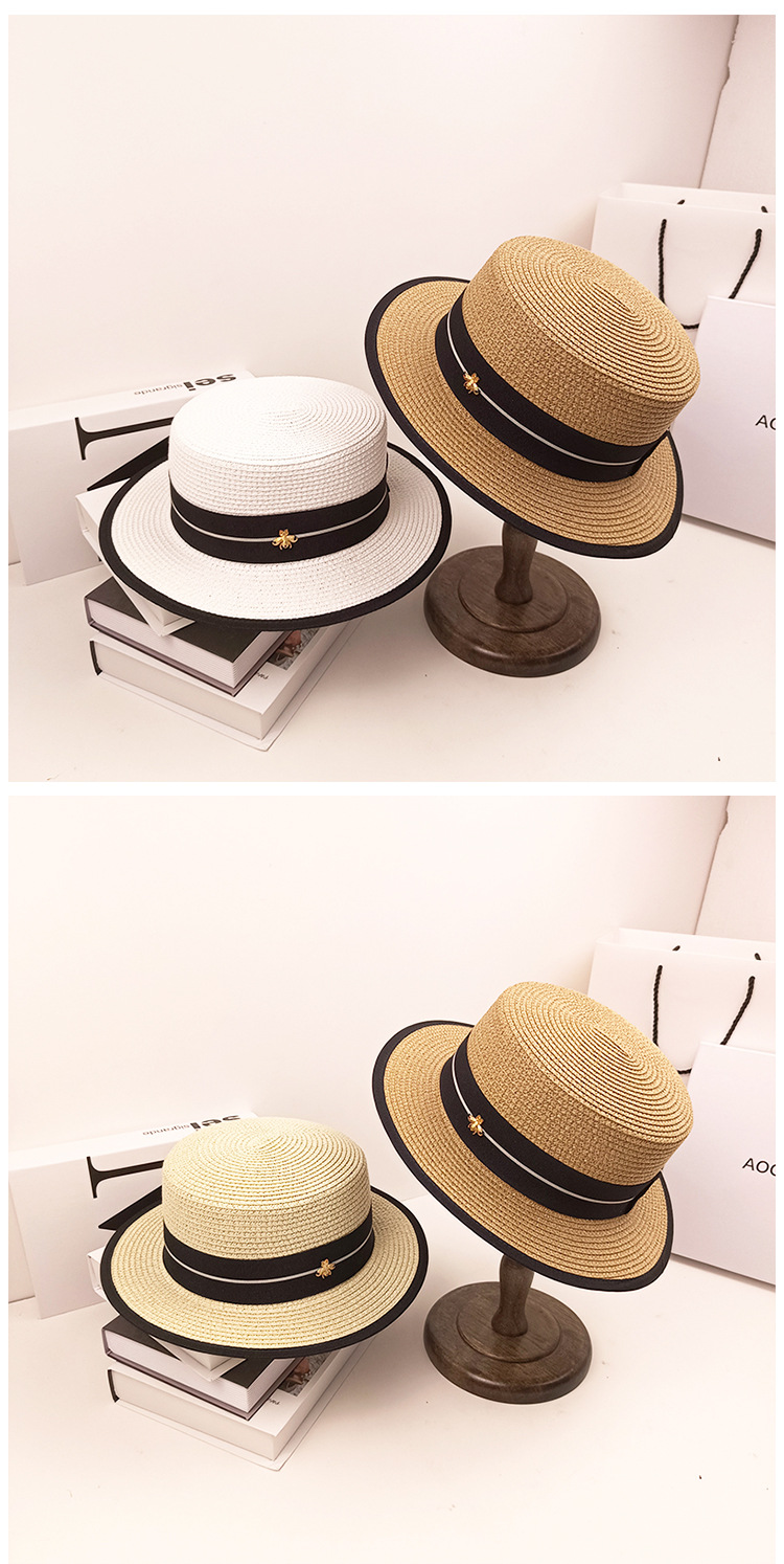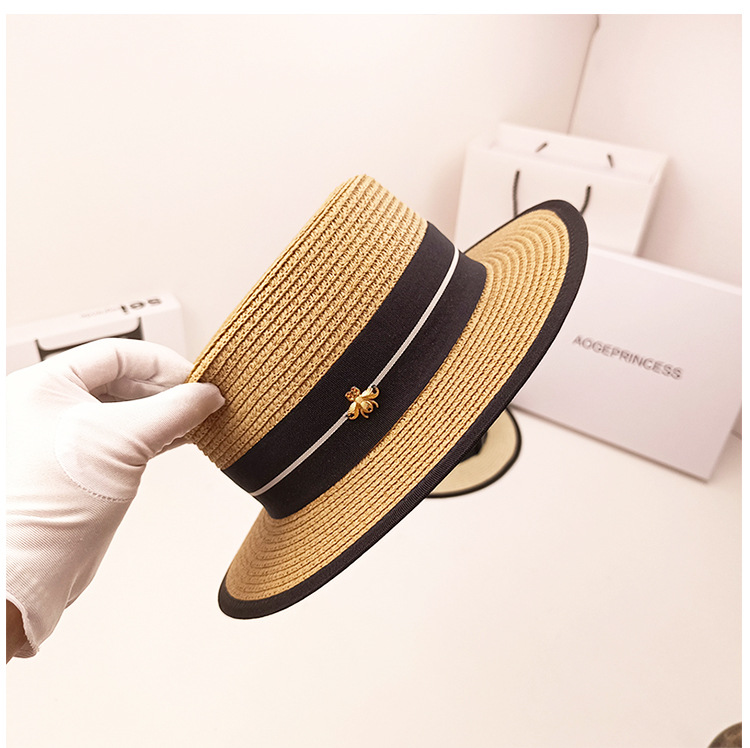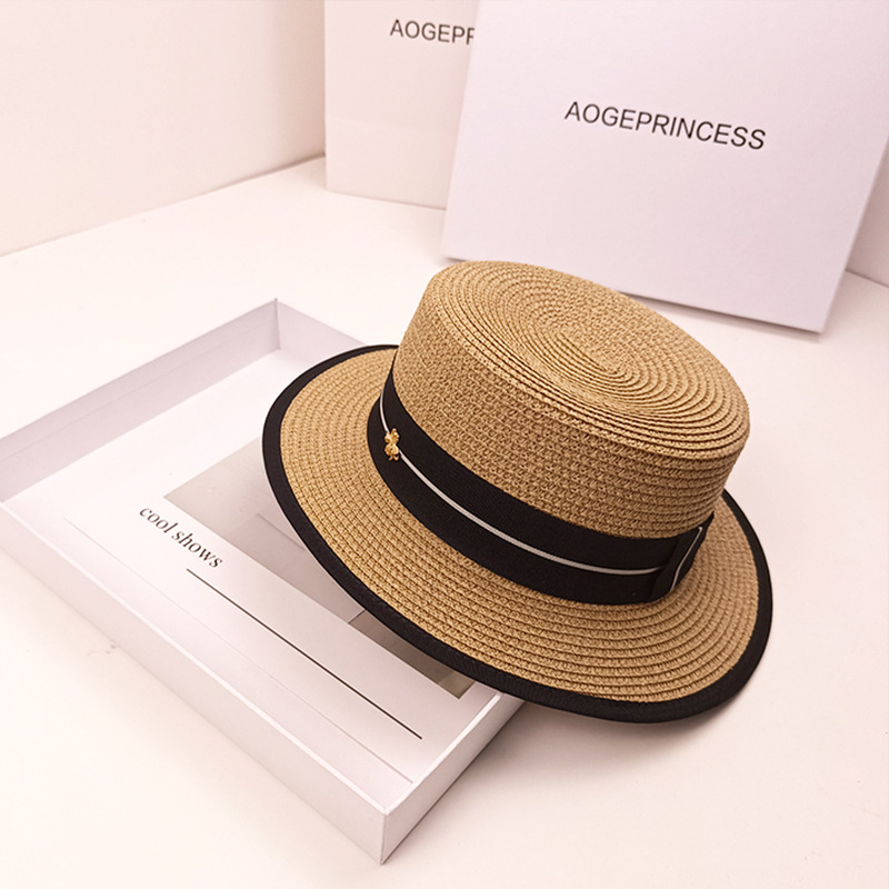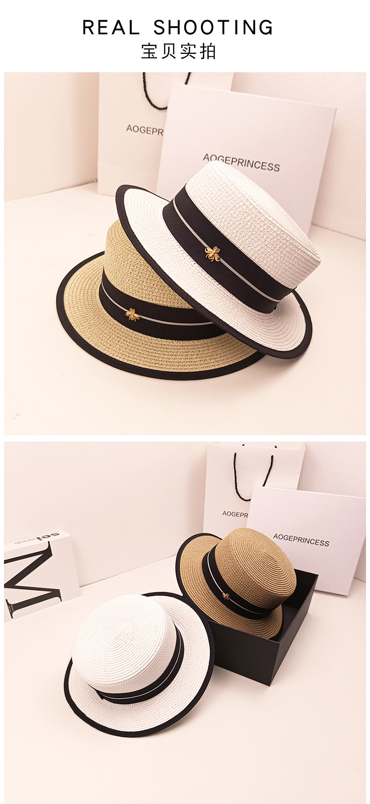 草帽女夏季沙滩海边度假草编帽太阳帽子防晒遮阳帽礼帽新款平顶帽