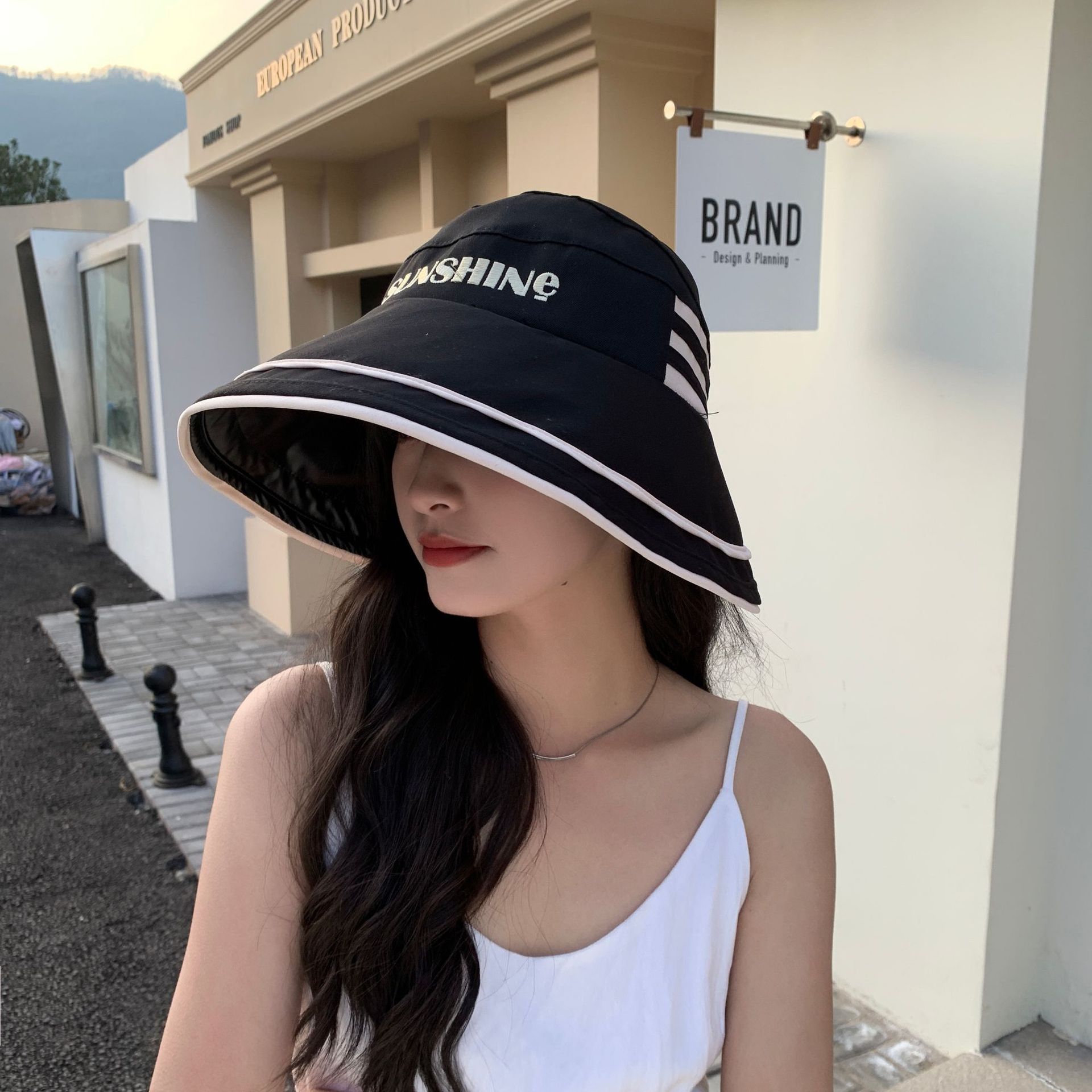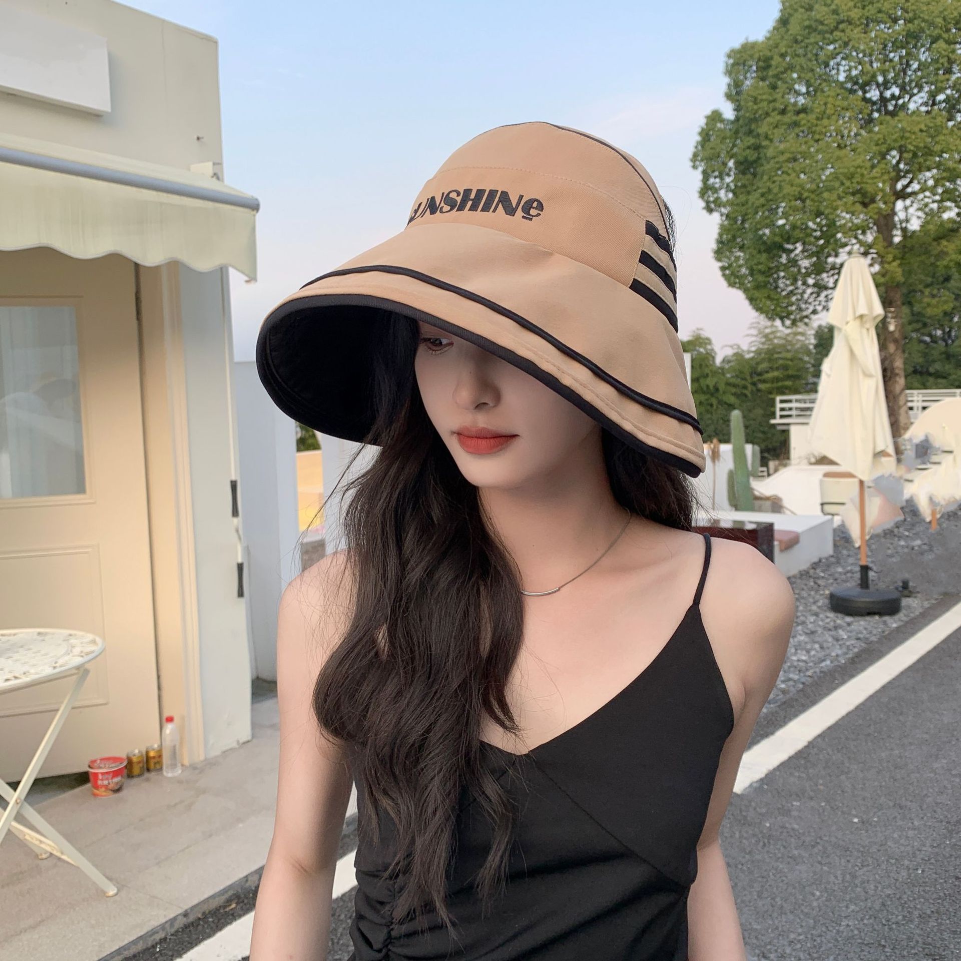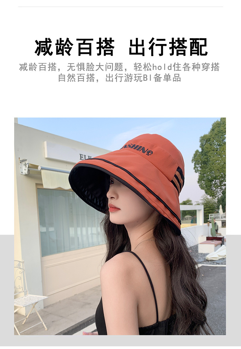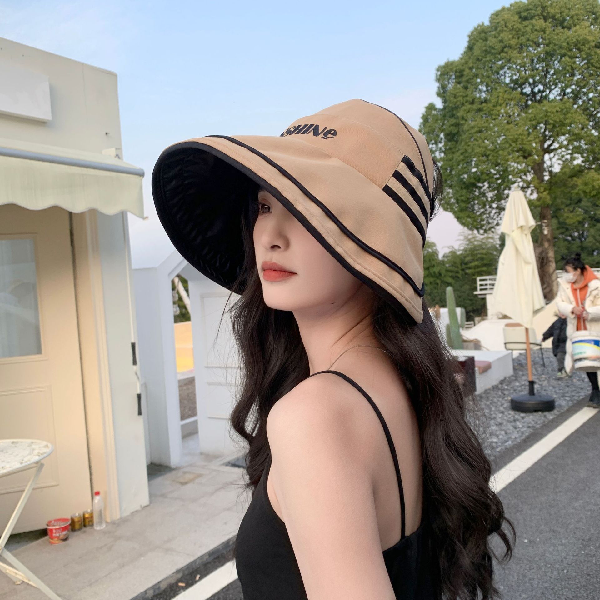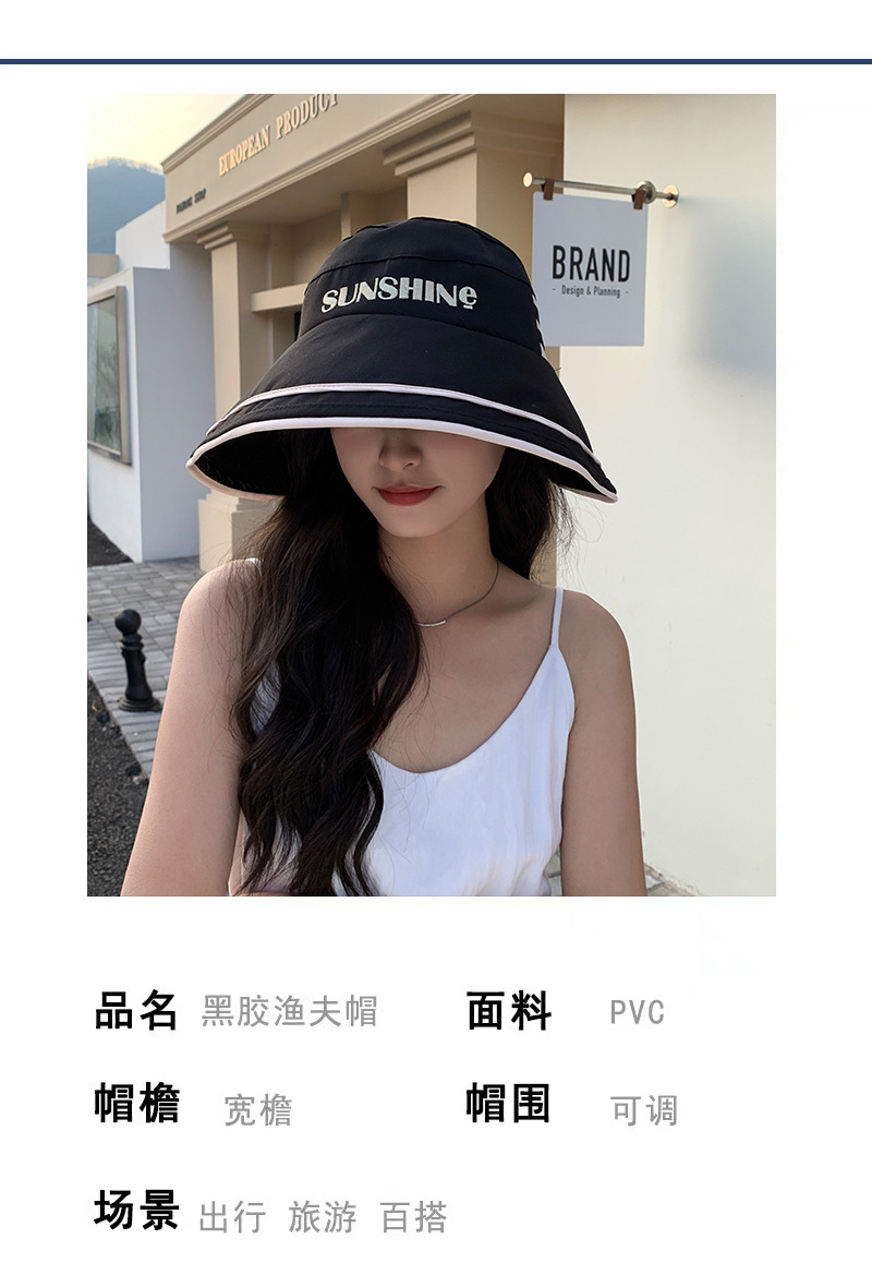 春夏新款黑胶大帽檐渔夫帽简约可折叠防紫外线空顶太阳帽显脸小女