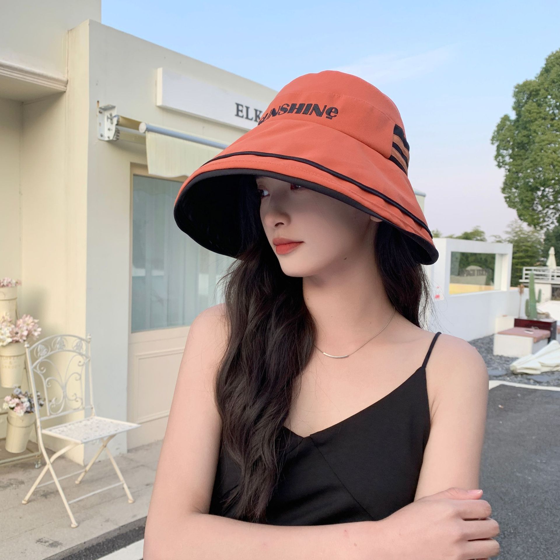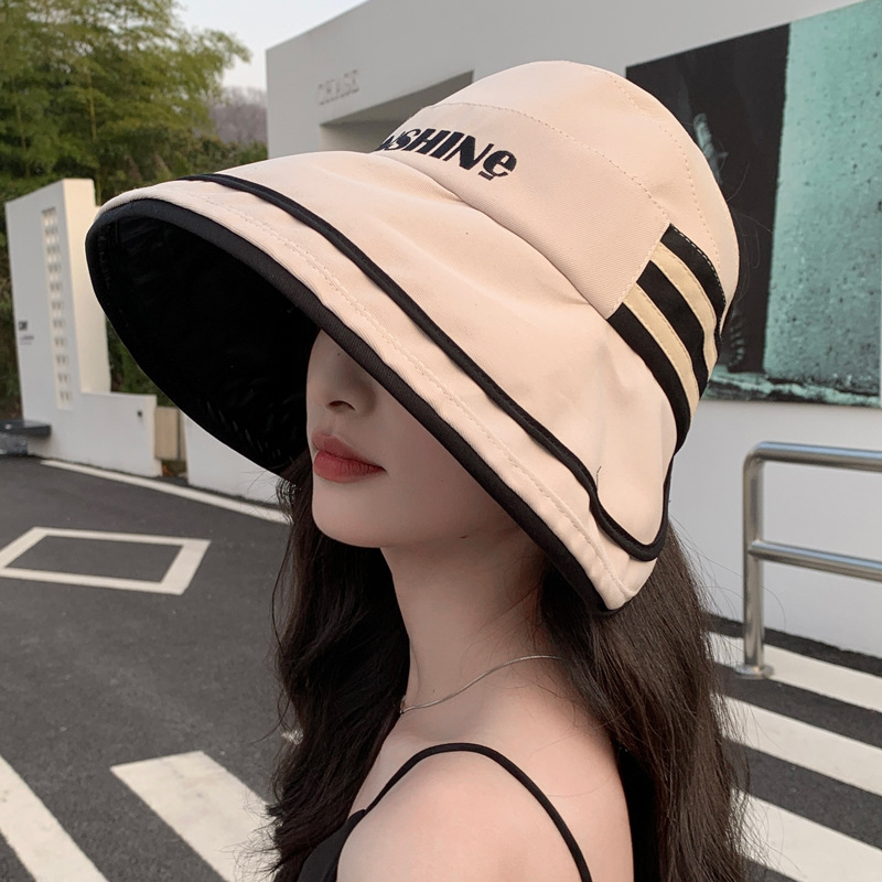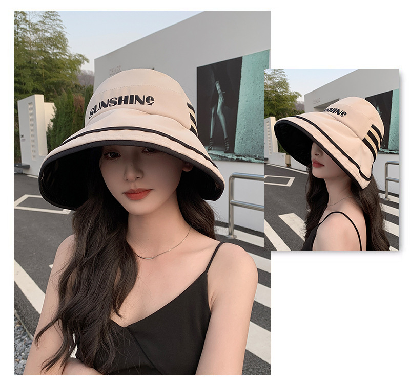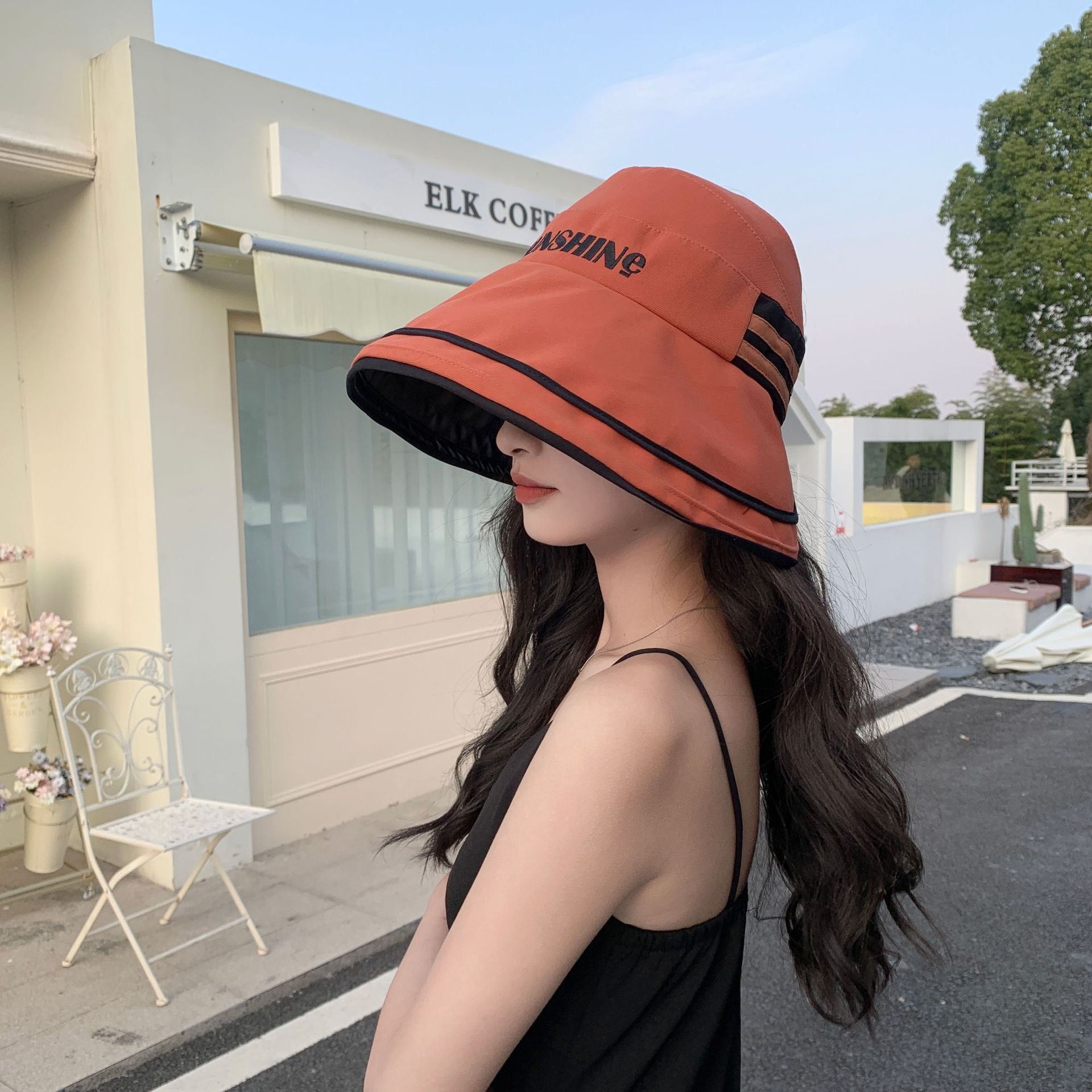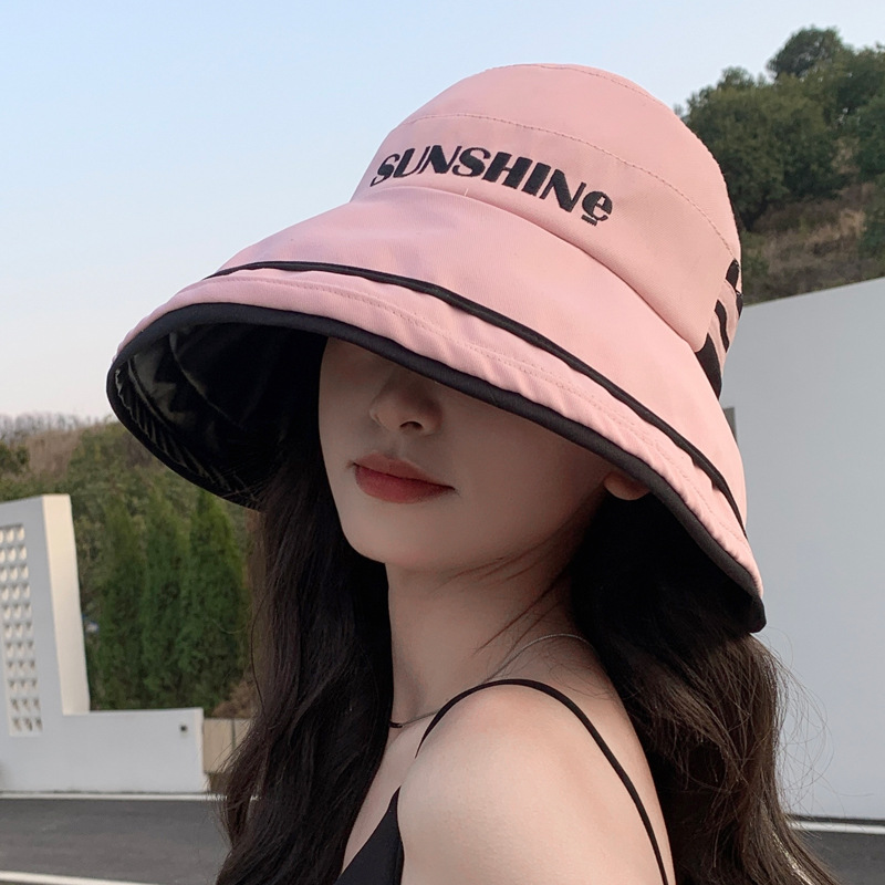 春夏新款黑胶大帽檐渔夫帽简约可折叠防紫外线空顶太阳帽显脸小女