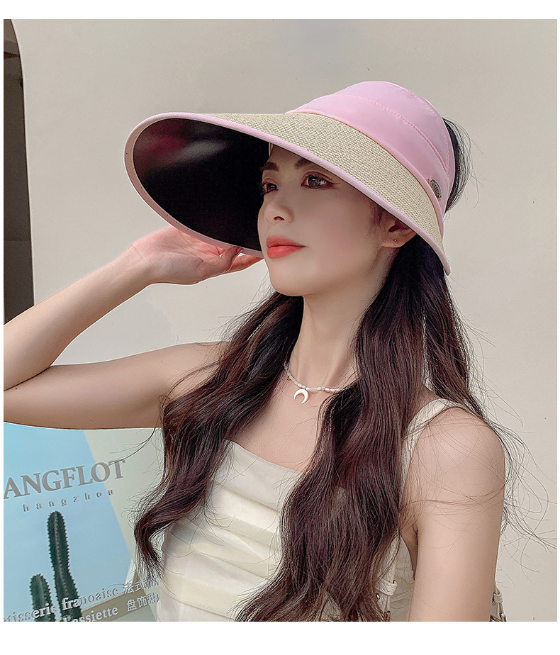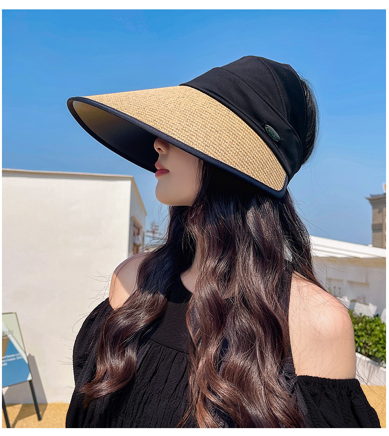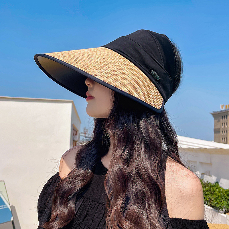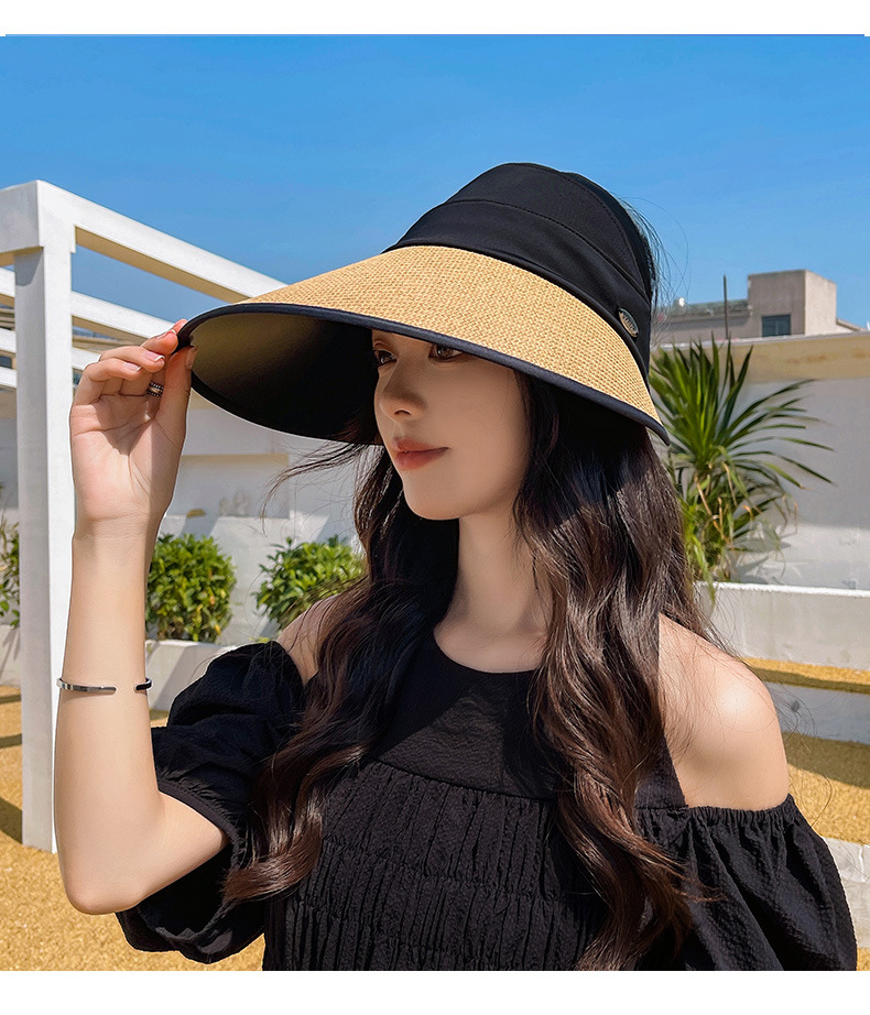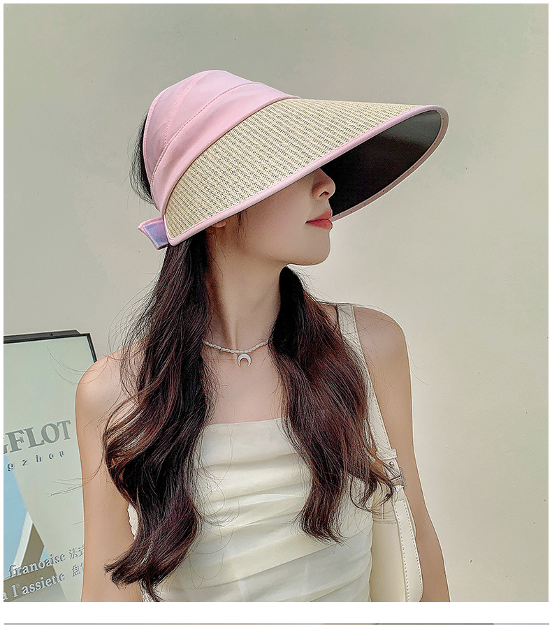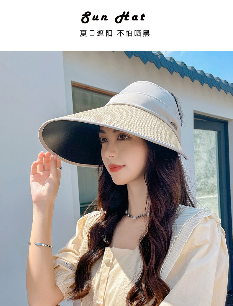 夏季UV防晒黑胶遮阳帽女户外骑车太阳帽大檐硬帽檐半空顶防晒帽子