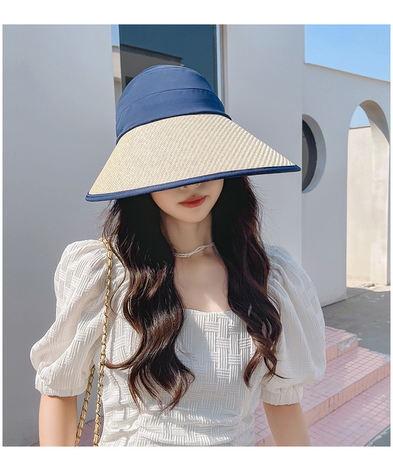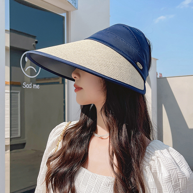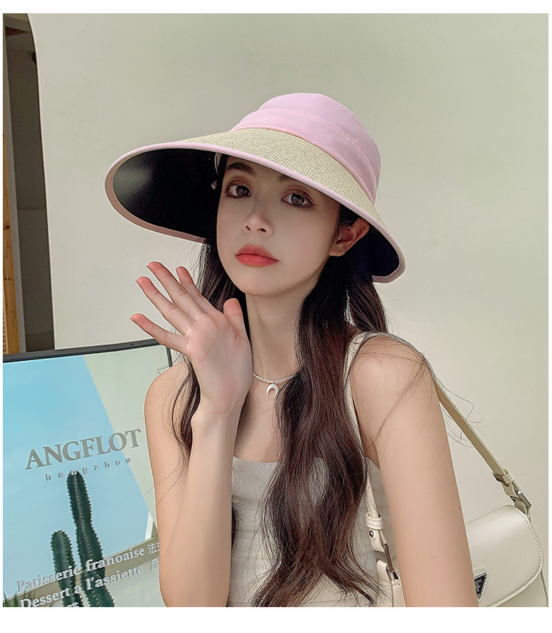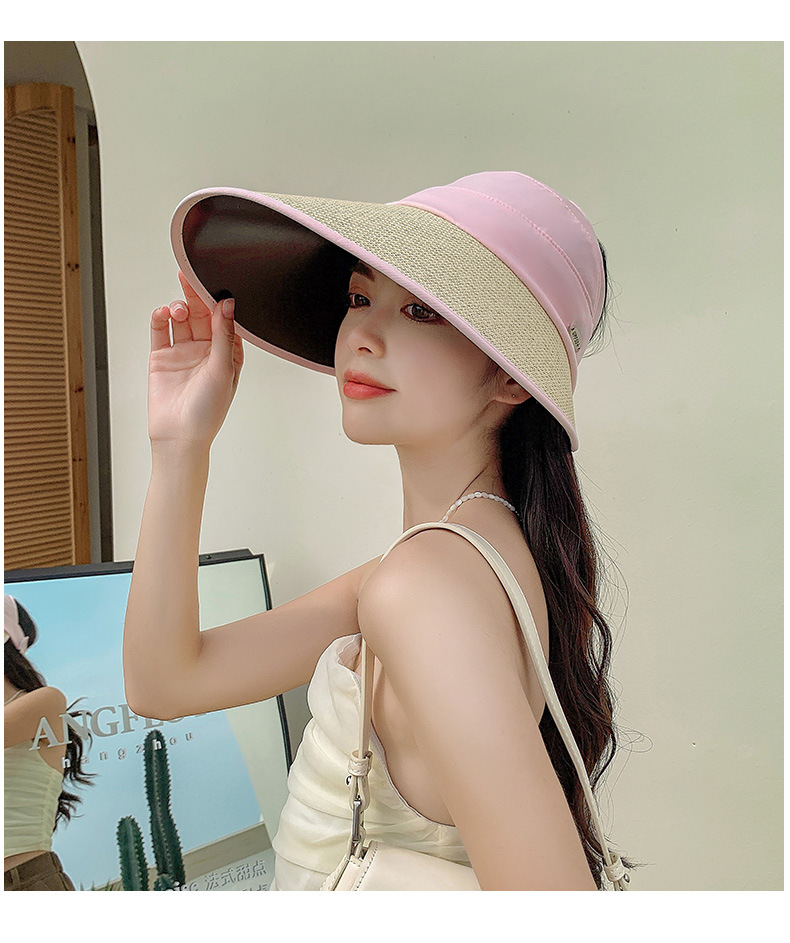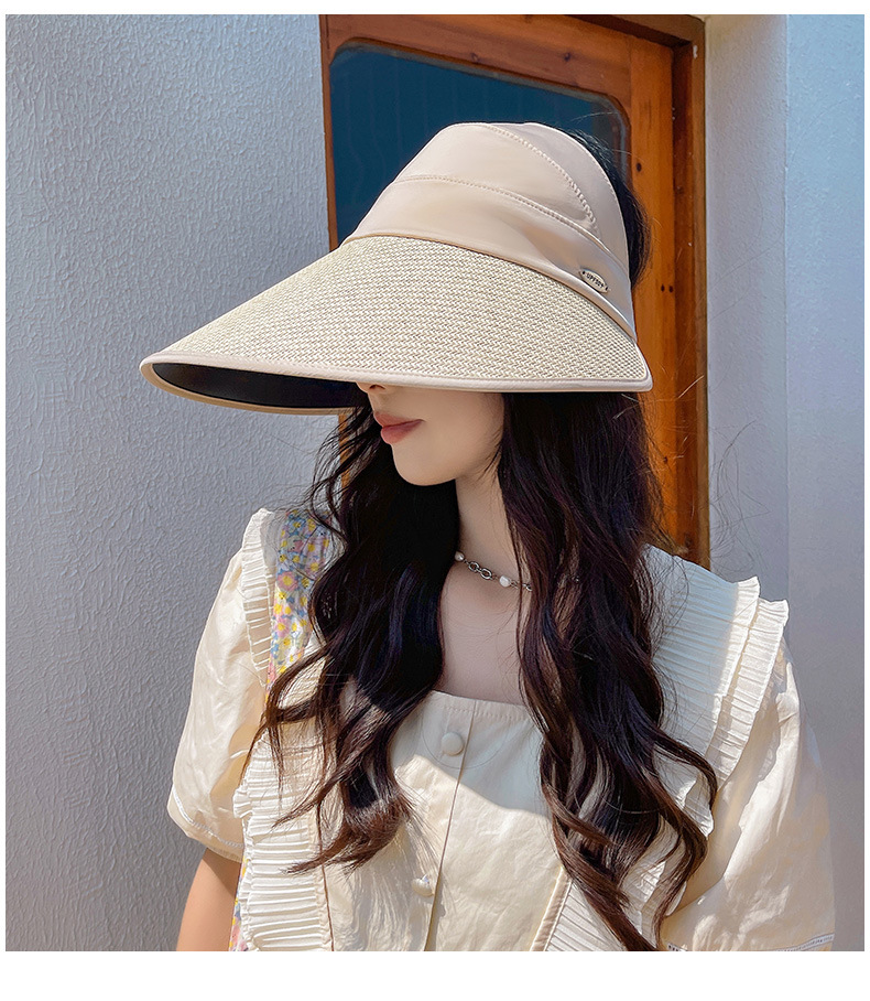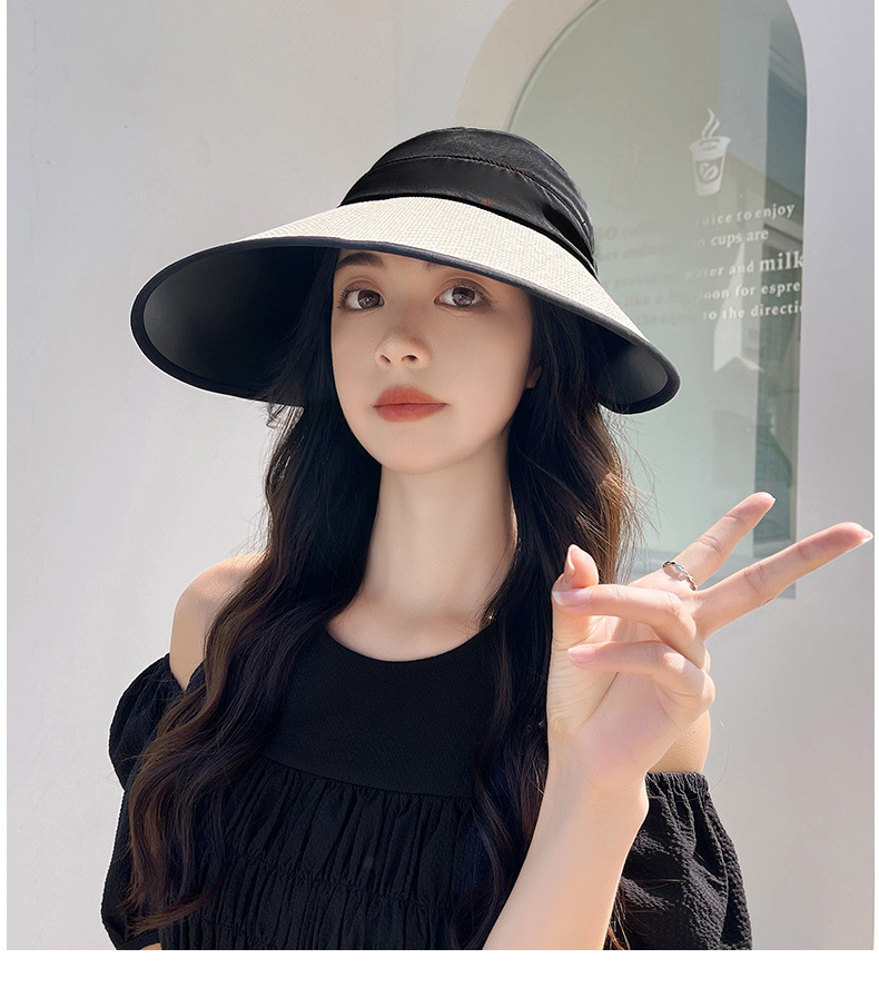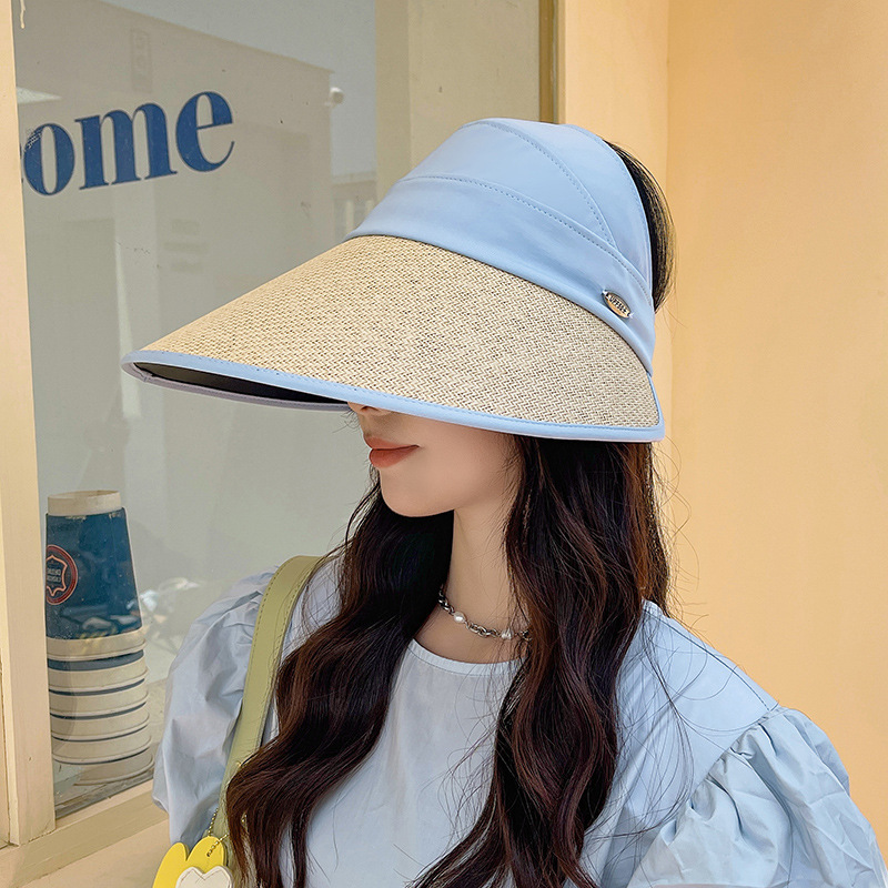 夏季UV防晒黑胶遮阳帽女户外骑车太阳帽大檐硬帽檐半空顶防晒帽子