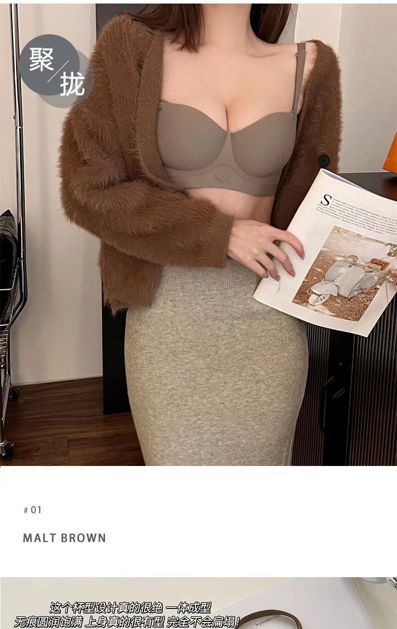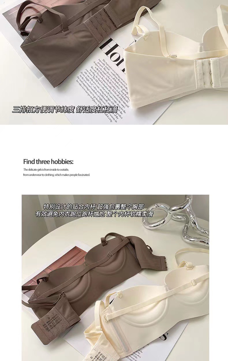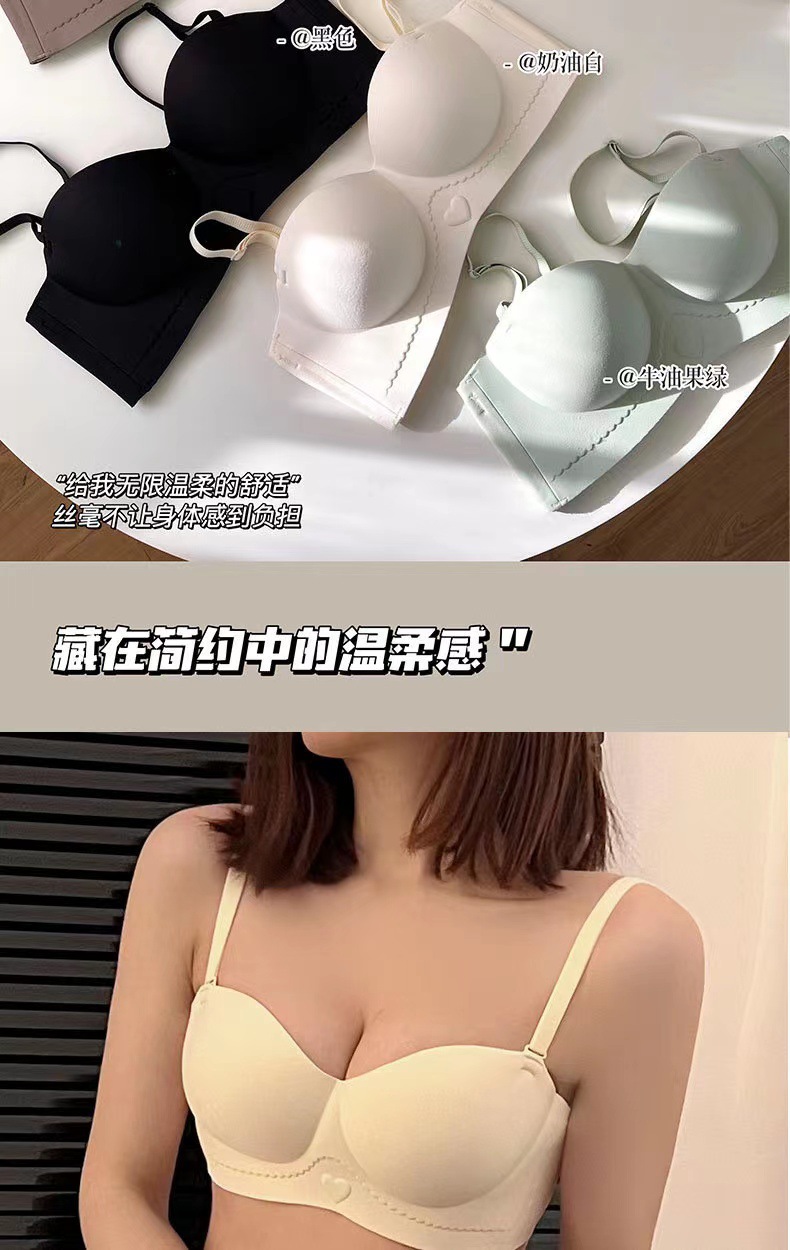 高质量半杯无痕内衣聚拢小胸一体固定杯无钢圈收副乳内衣女文胸