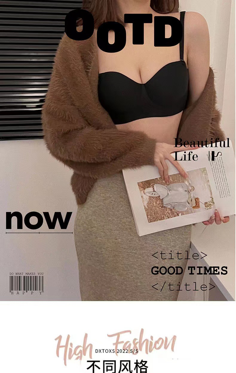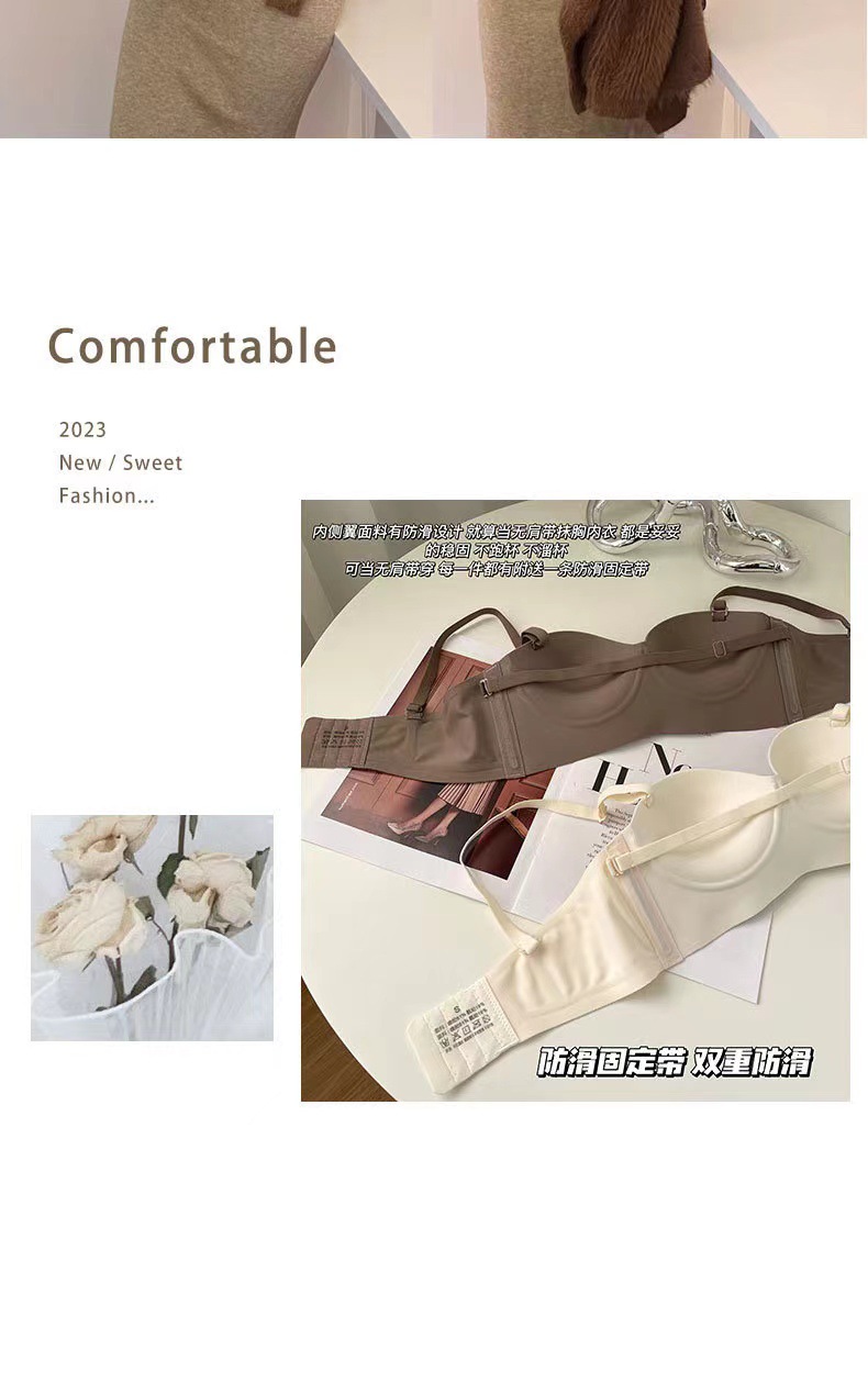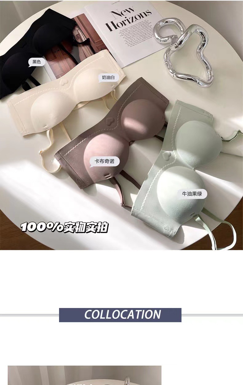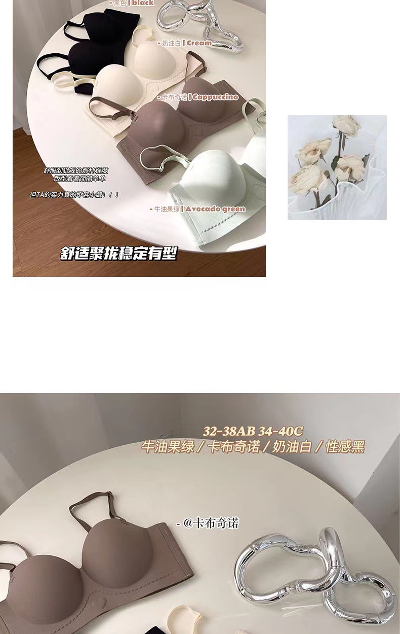高质量半杯无痕内衣聚拢小胸一体固定杯无钢圈收副乳内衣女文胸