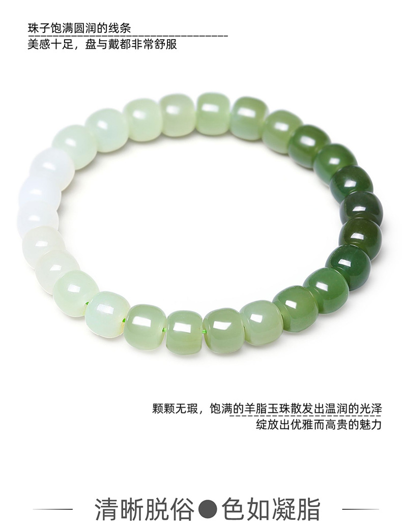 亚亨天然和田玉 国潮风母亲节和田玉渐变手串 母亲节送妈妈手链