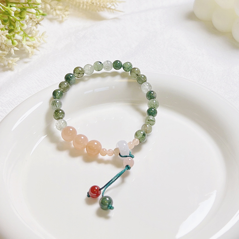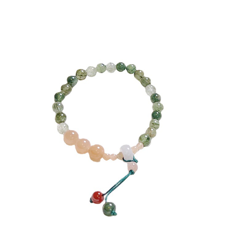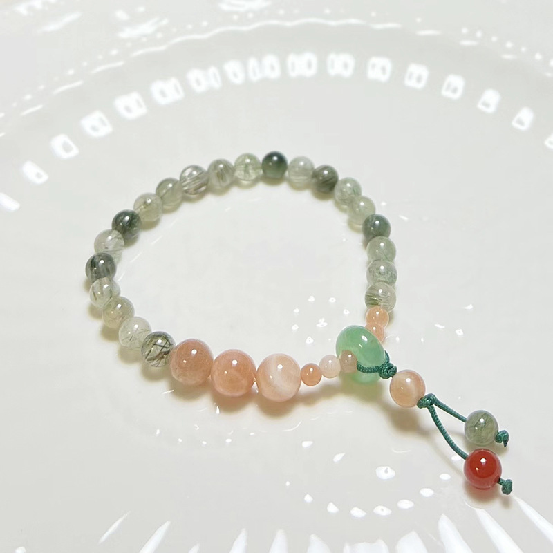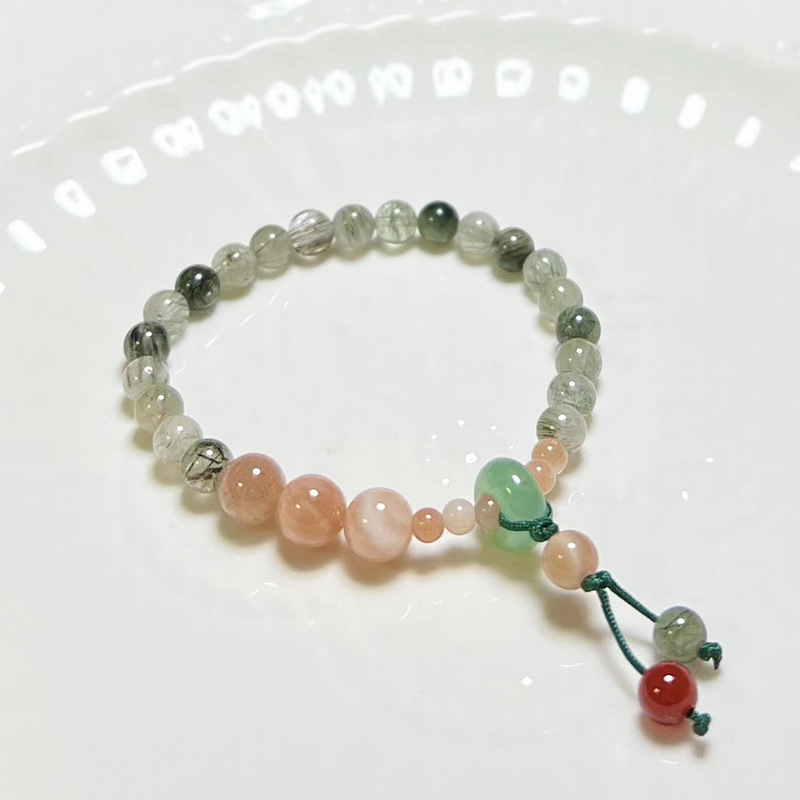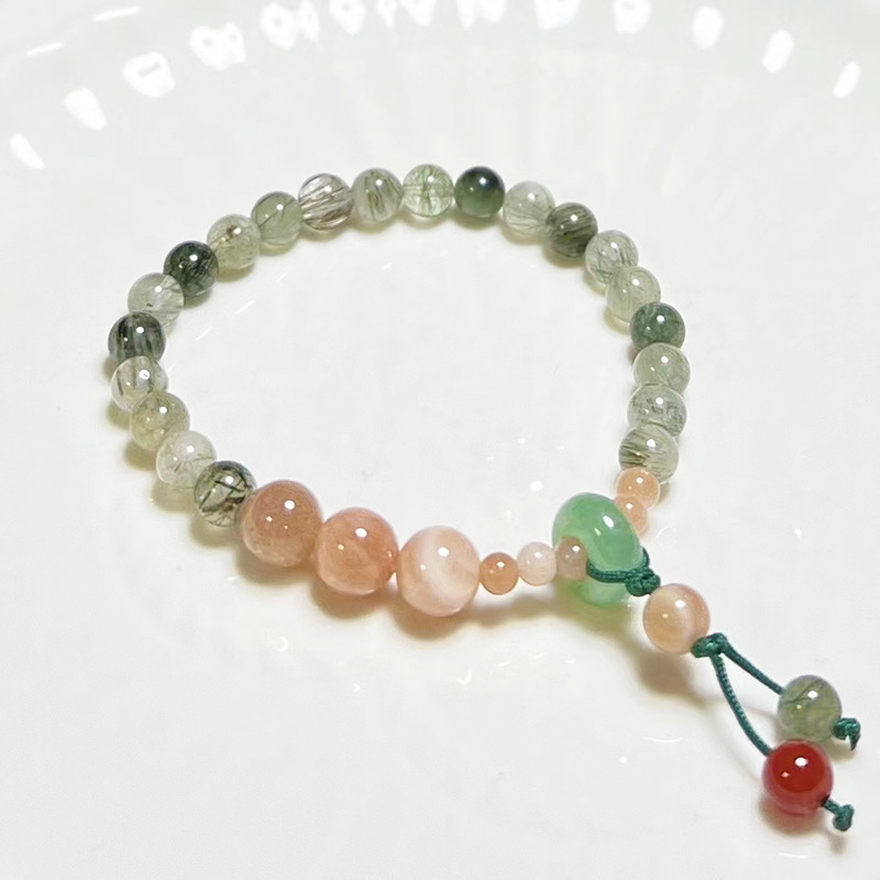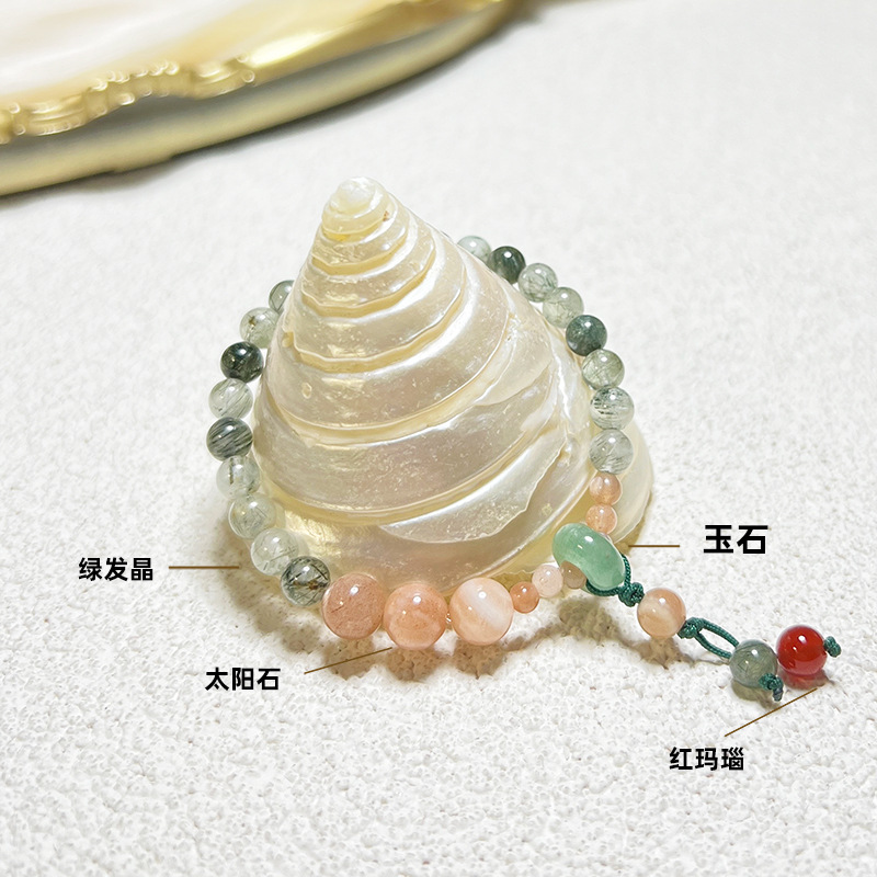2022新款绿发晶渐变手链女复古原创设计平安扣太阳石橙月