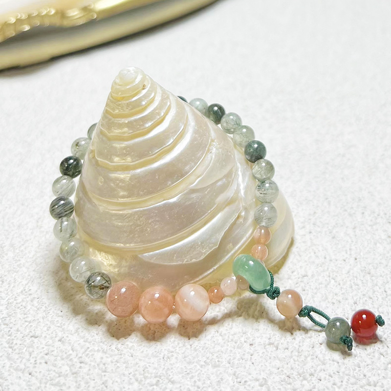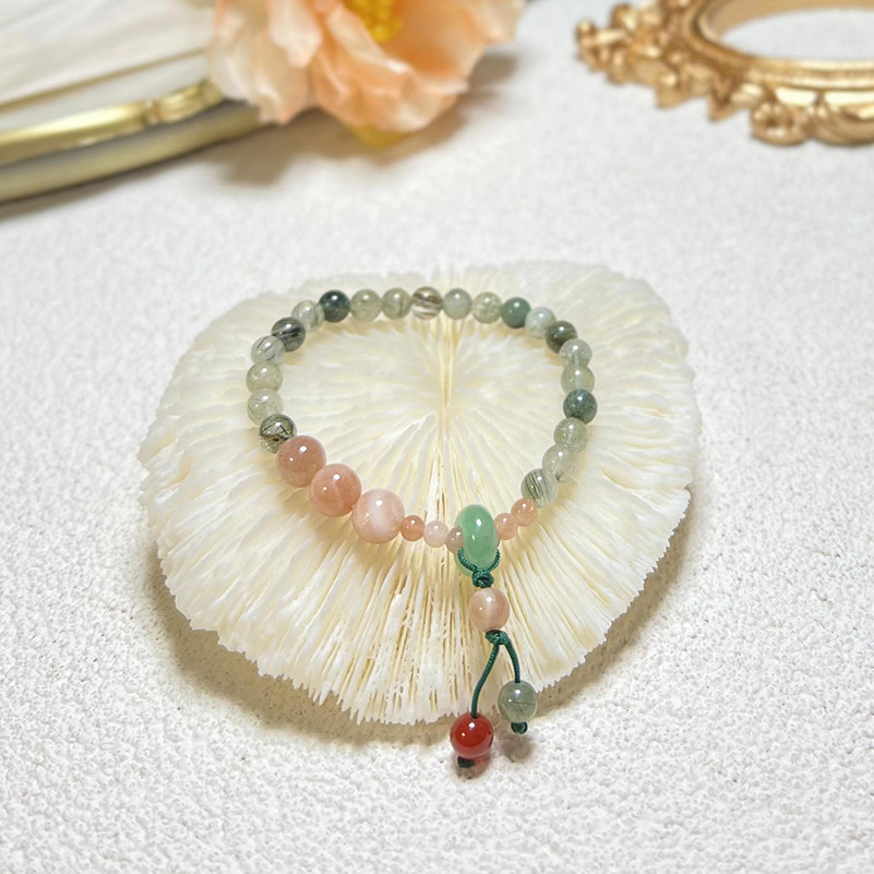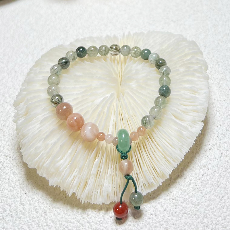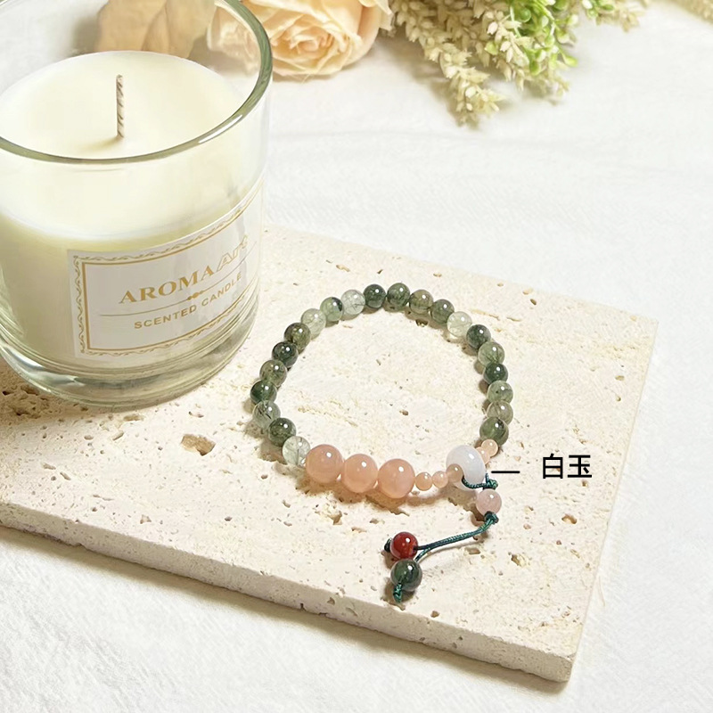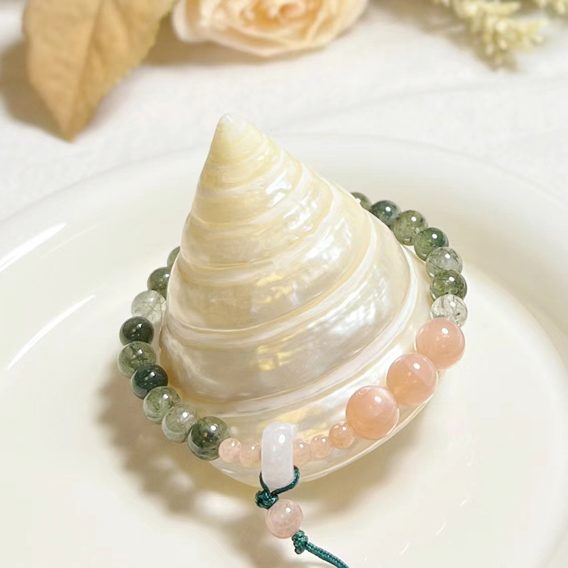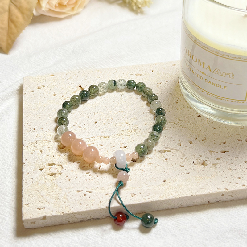 2022新款绿发晶渐变手链女复古原创设计平安扣太阳石橙月