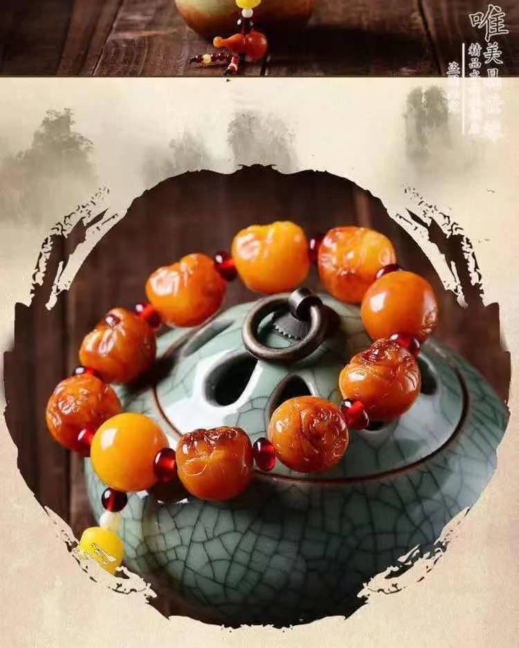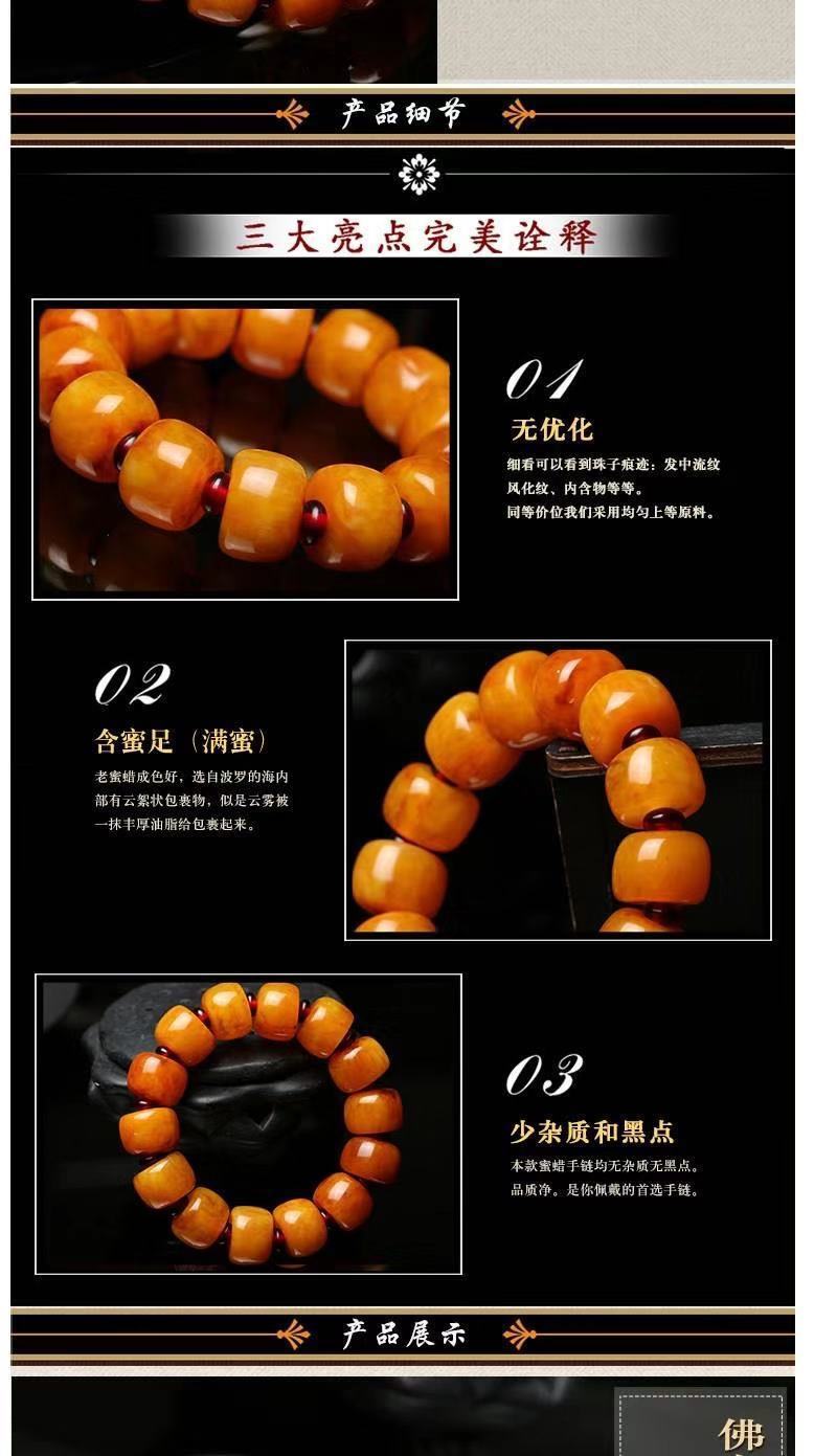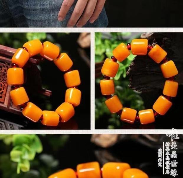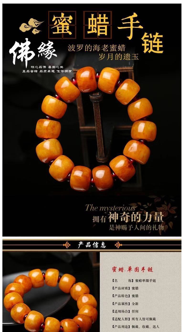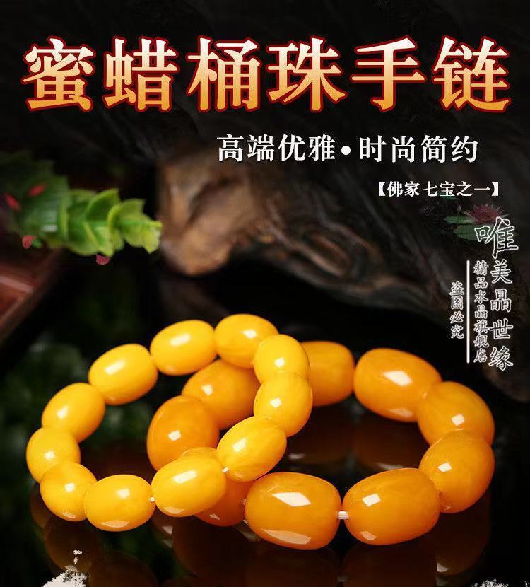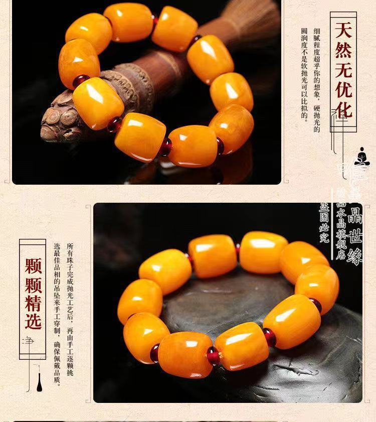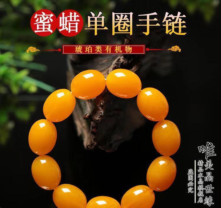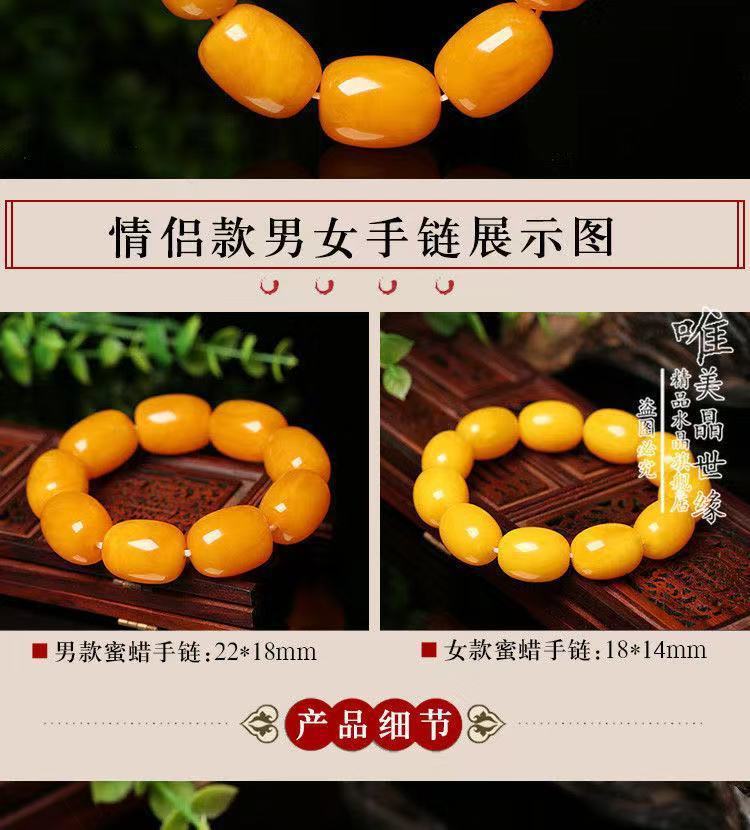 (带国检证书)蜜蜡手串琥珀鸡油黄手链男女款原石无优化批发厂