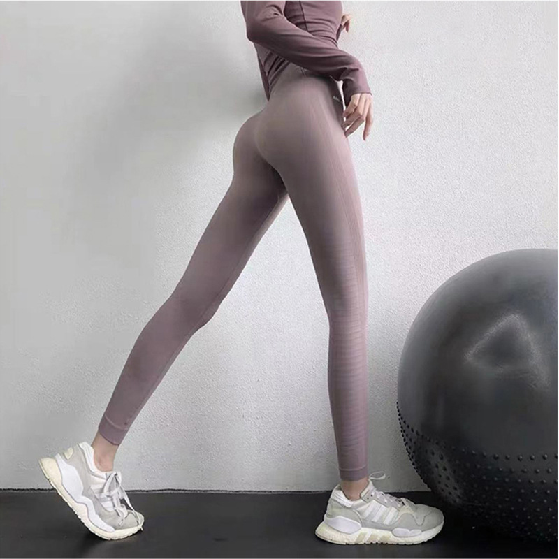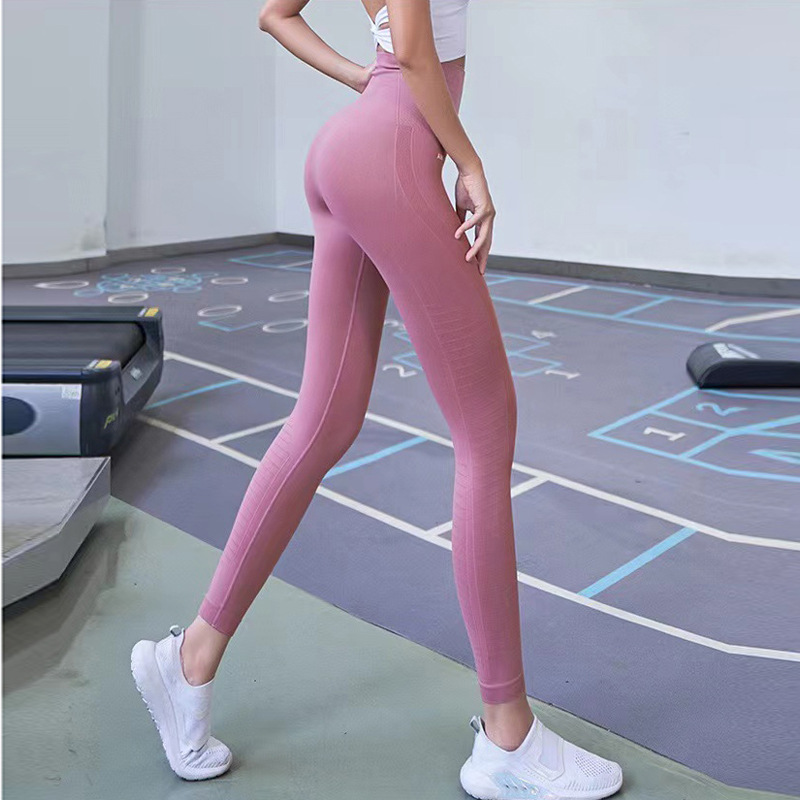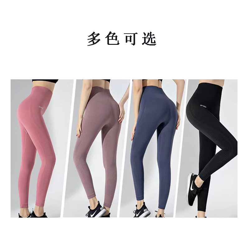 无缝高腰收腹健身裤女蜜桃臀弹力透气裸感无尴尬线速干紧身瑜伽裤