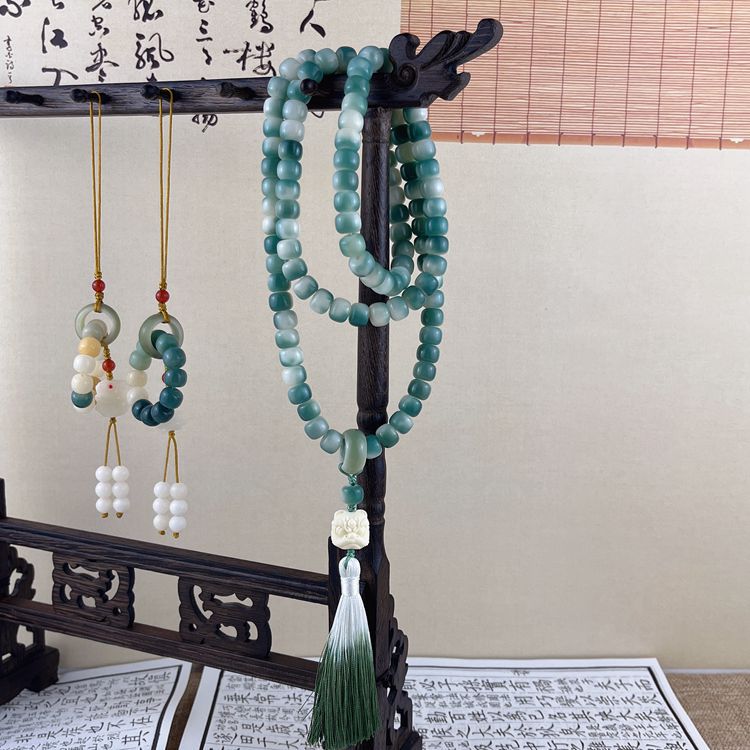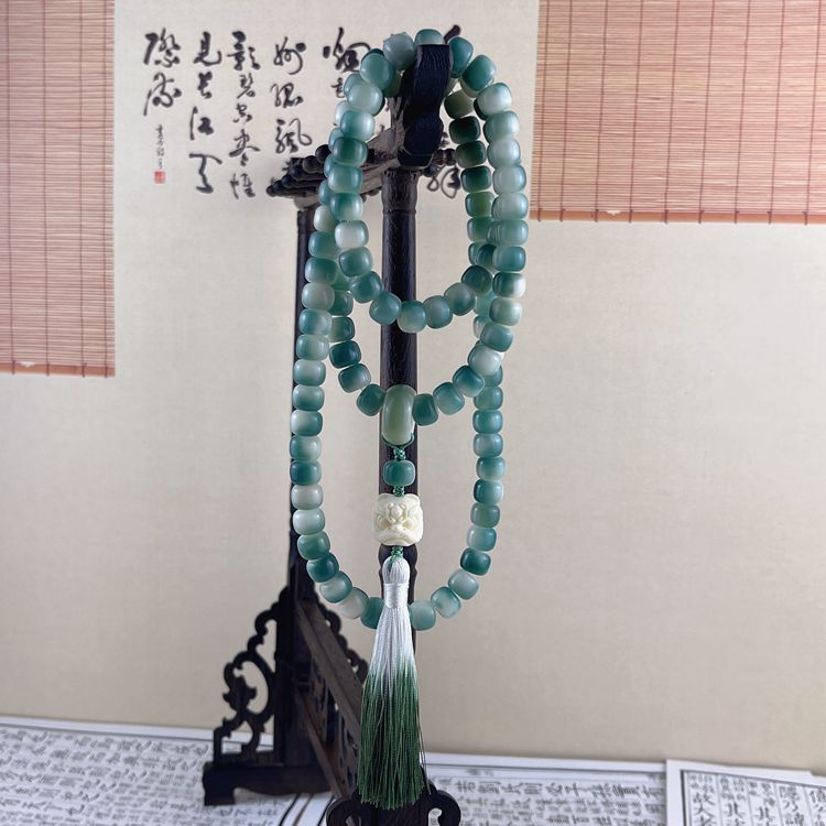 批发原创阴皮菩提根山水飘花渐变手串原生态半山半水菩提手持
