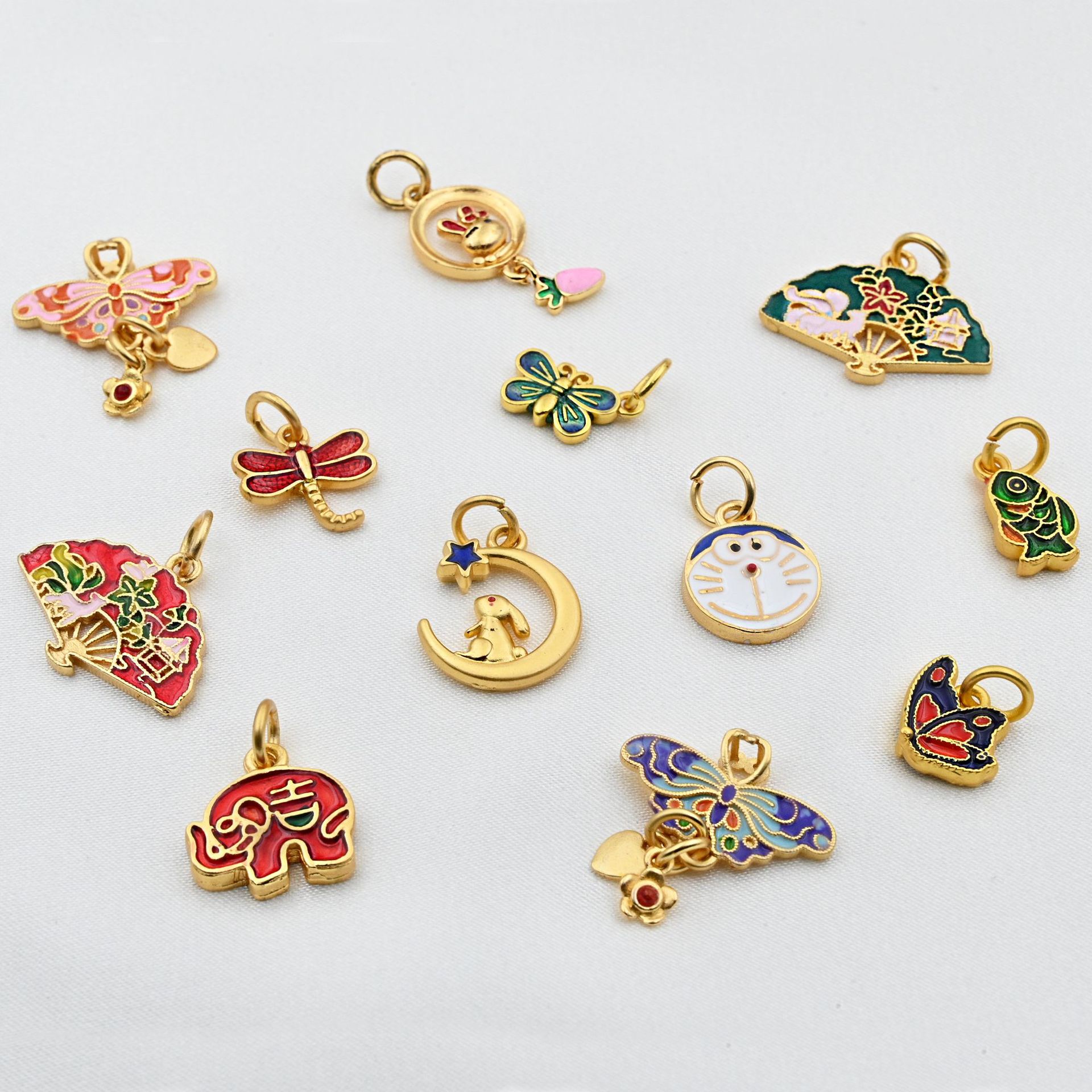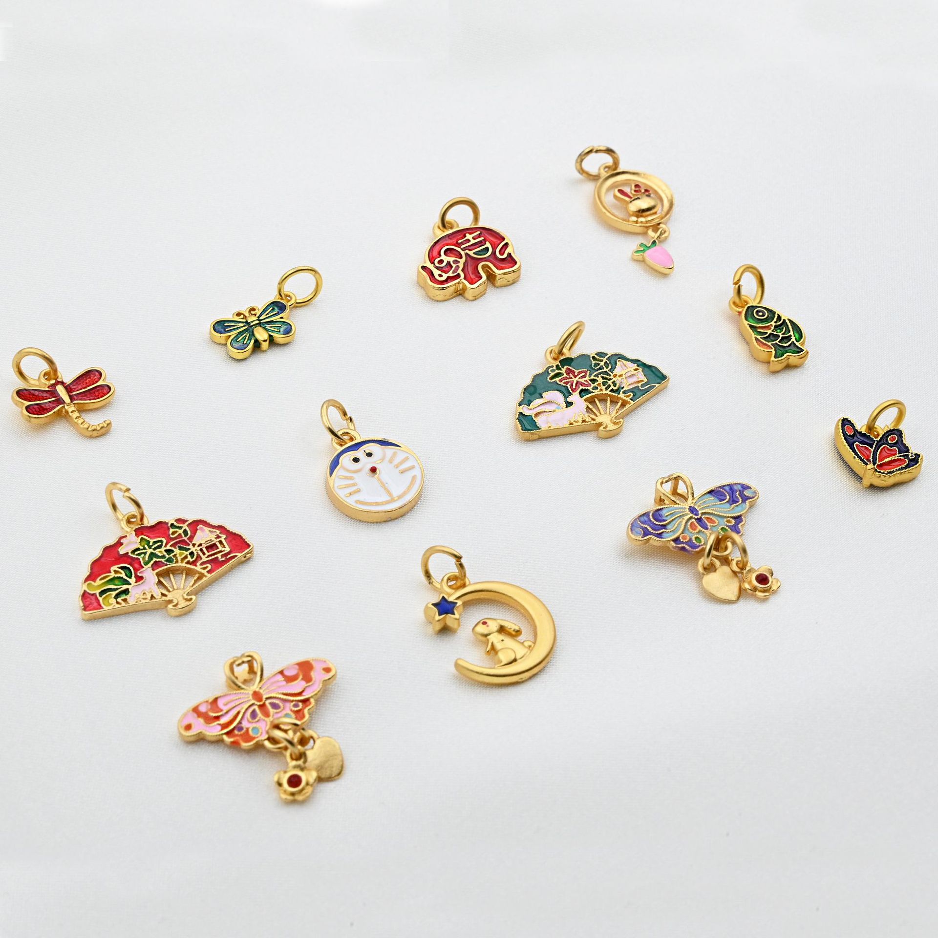 古法沙金烧蓝吊坠滴油珐琅蝴蝶动物diy项链手链饰品挂件配饰批发