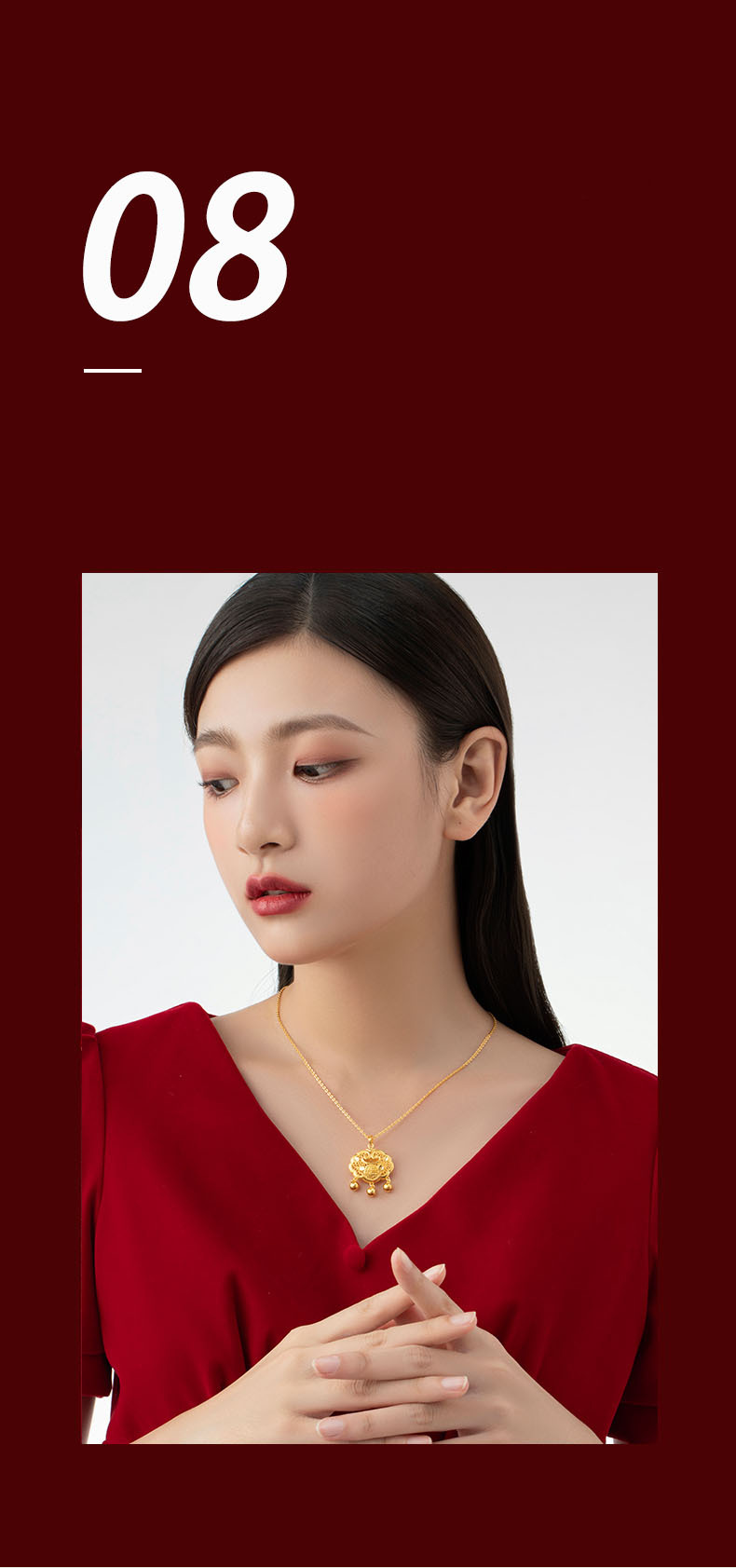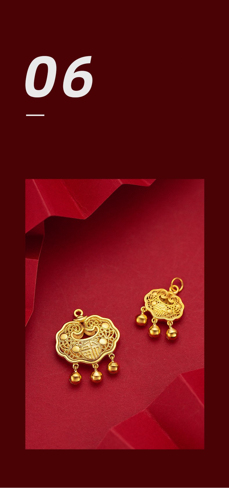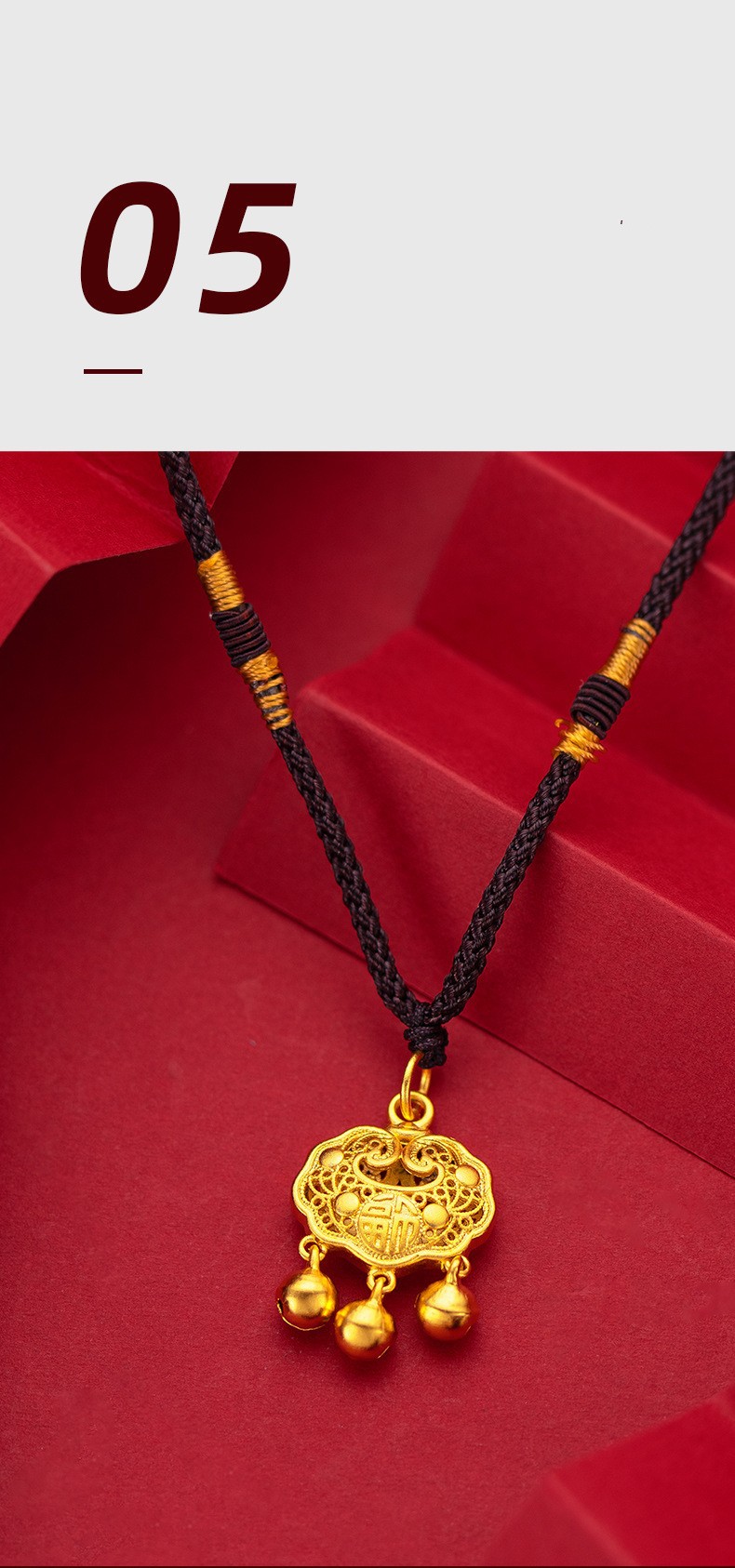 镀金项链福字长命锁平安锁轻奢复古中国风小众设计高级感沙金吊坠