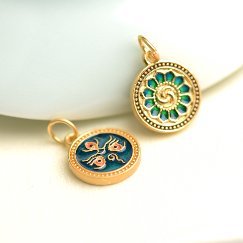 五路财神吊坠 铜胚镀金景泰蓝DIY饰品手链配件沙金古法金挂件