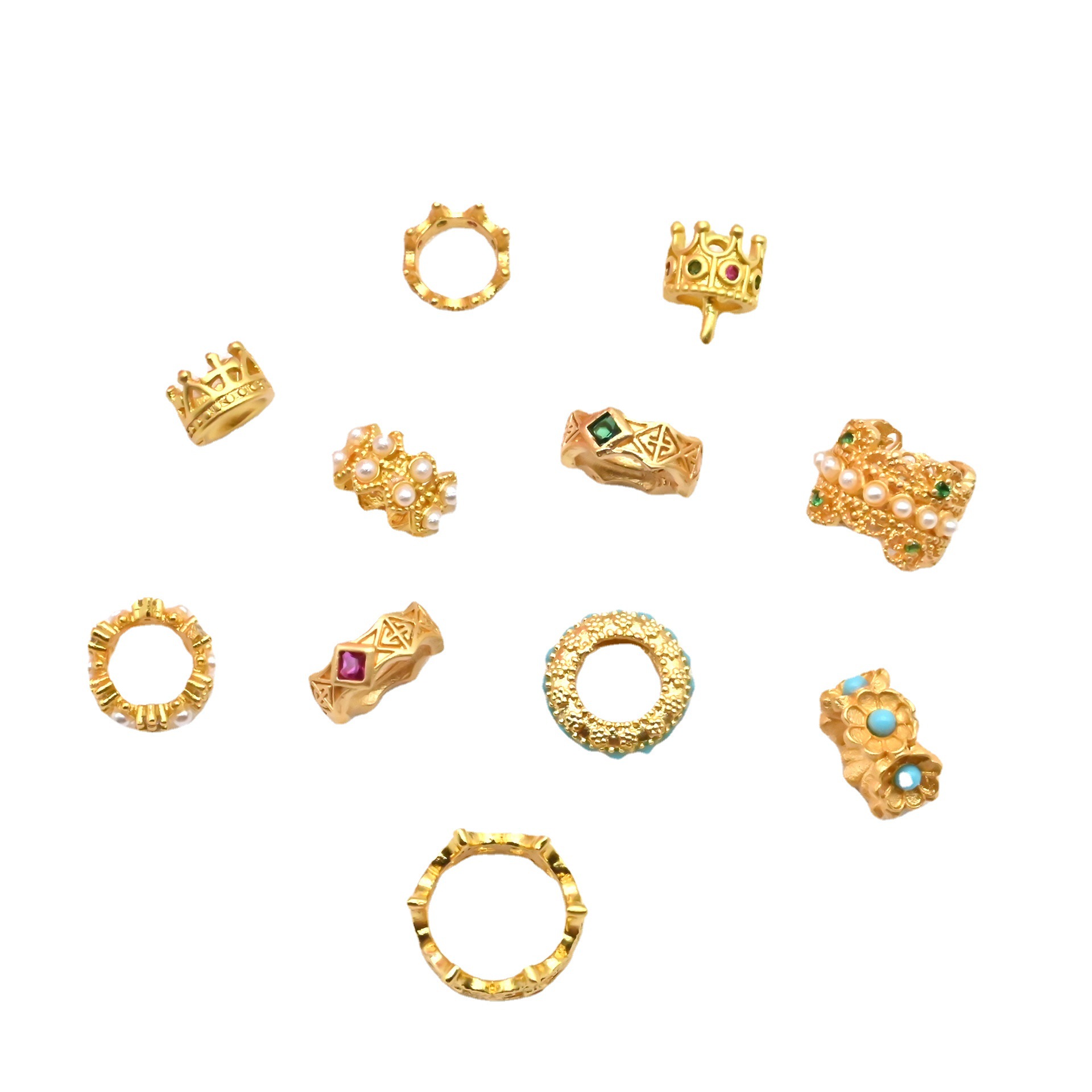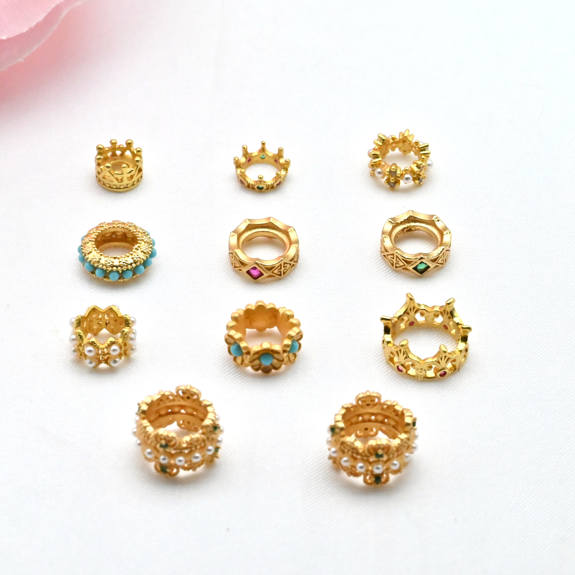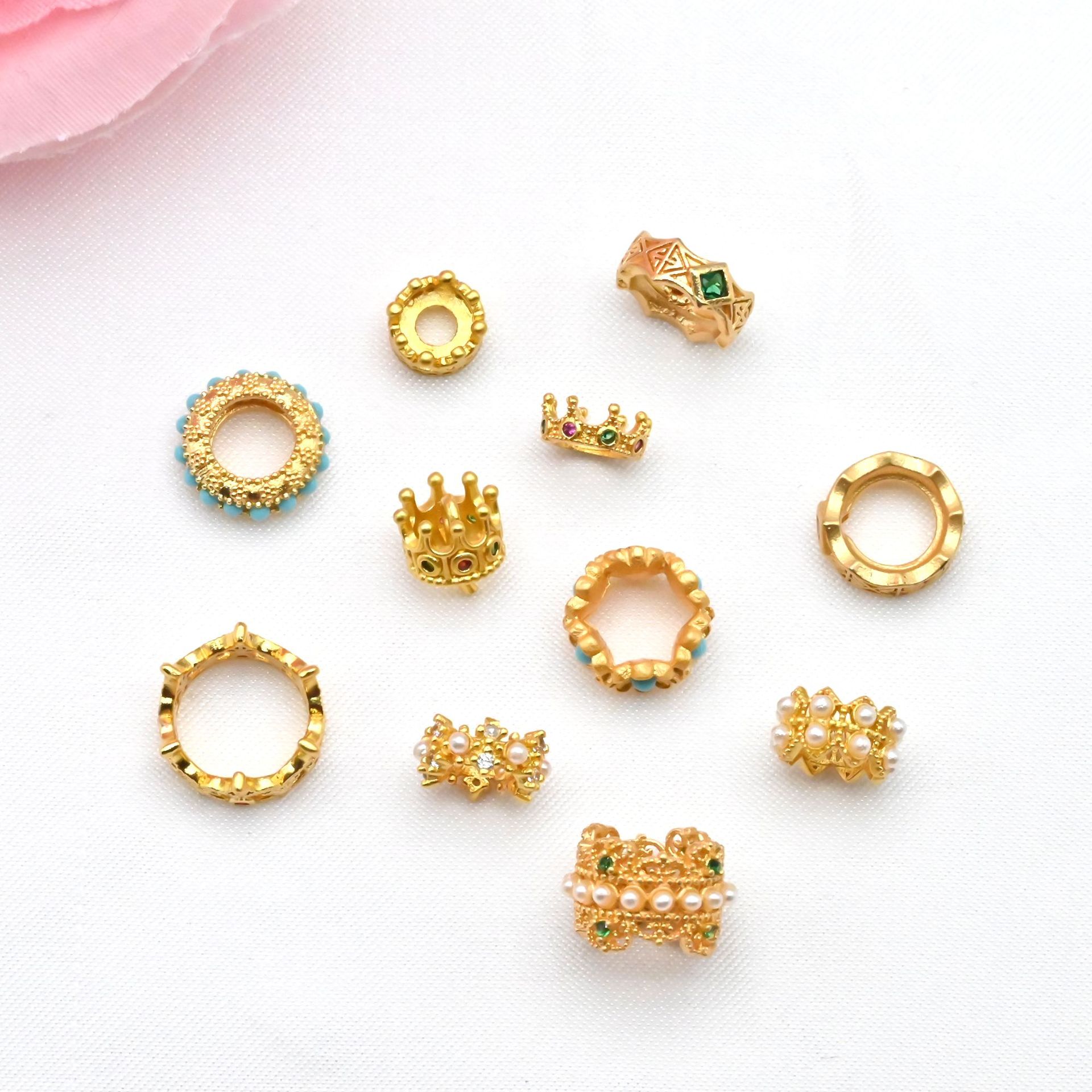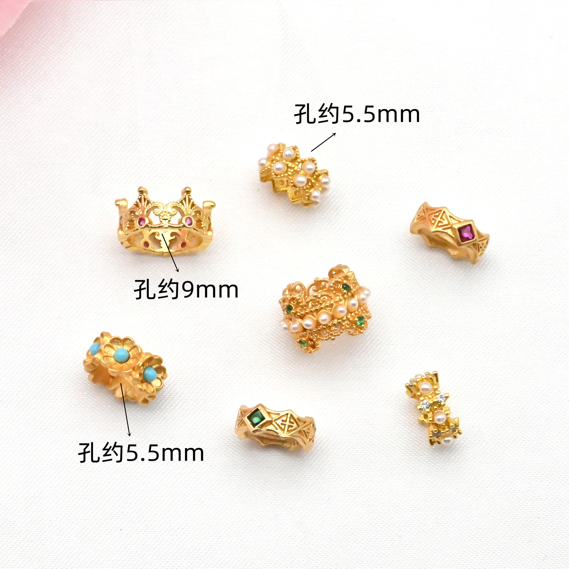 强保色沙金diy配件皇冠隔珠仿珍珠镶嵌绿松跑环圈配饰古法金饰品
