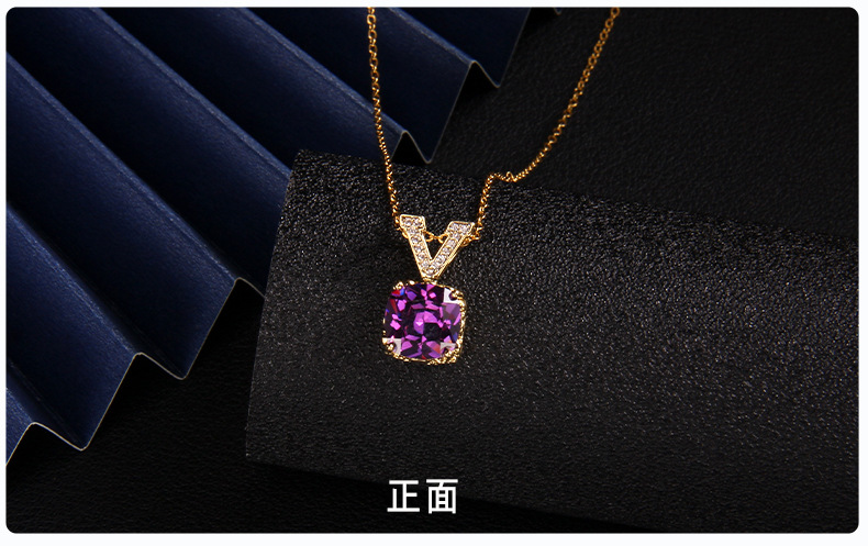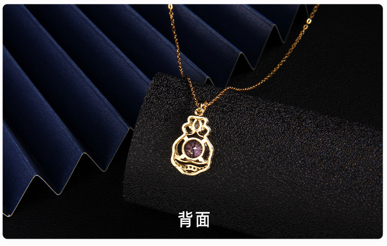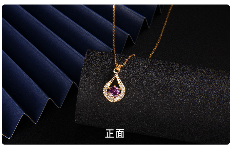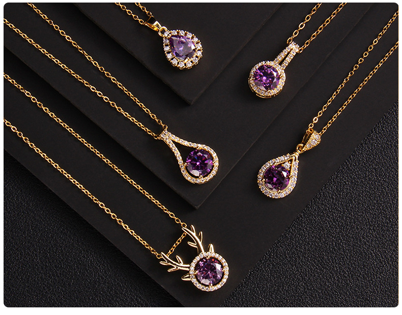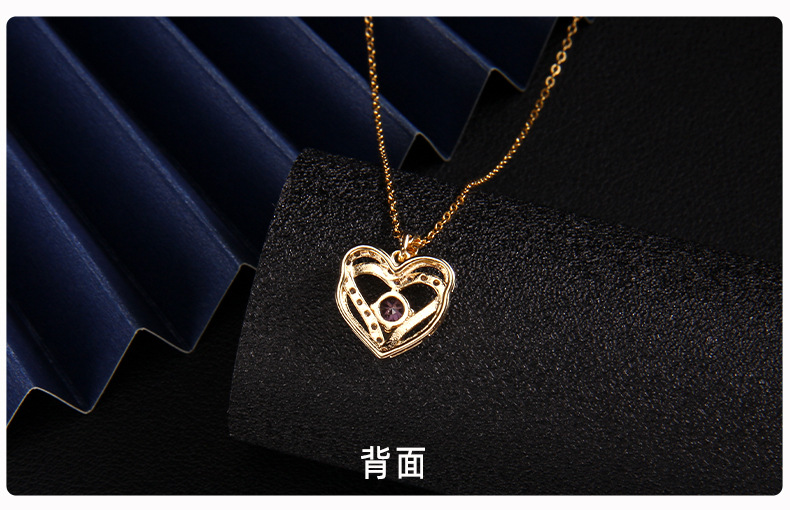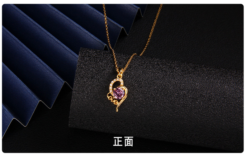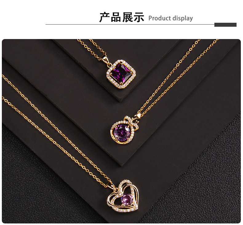 抖音新款紫色锆石项链女小众设计ins风 百搭爱心紫气东来吊坠饰品