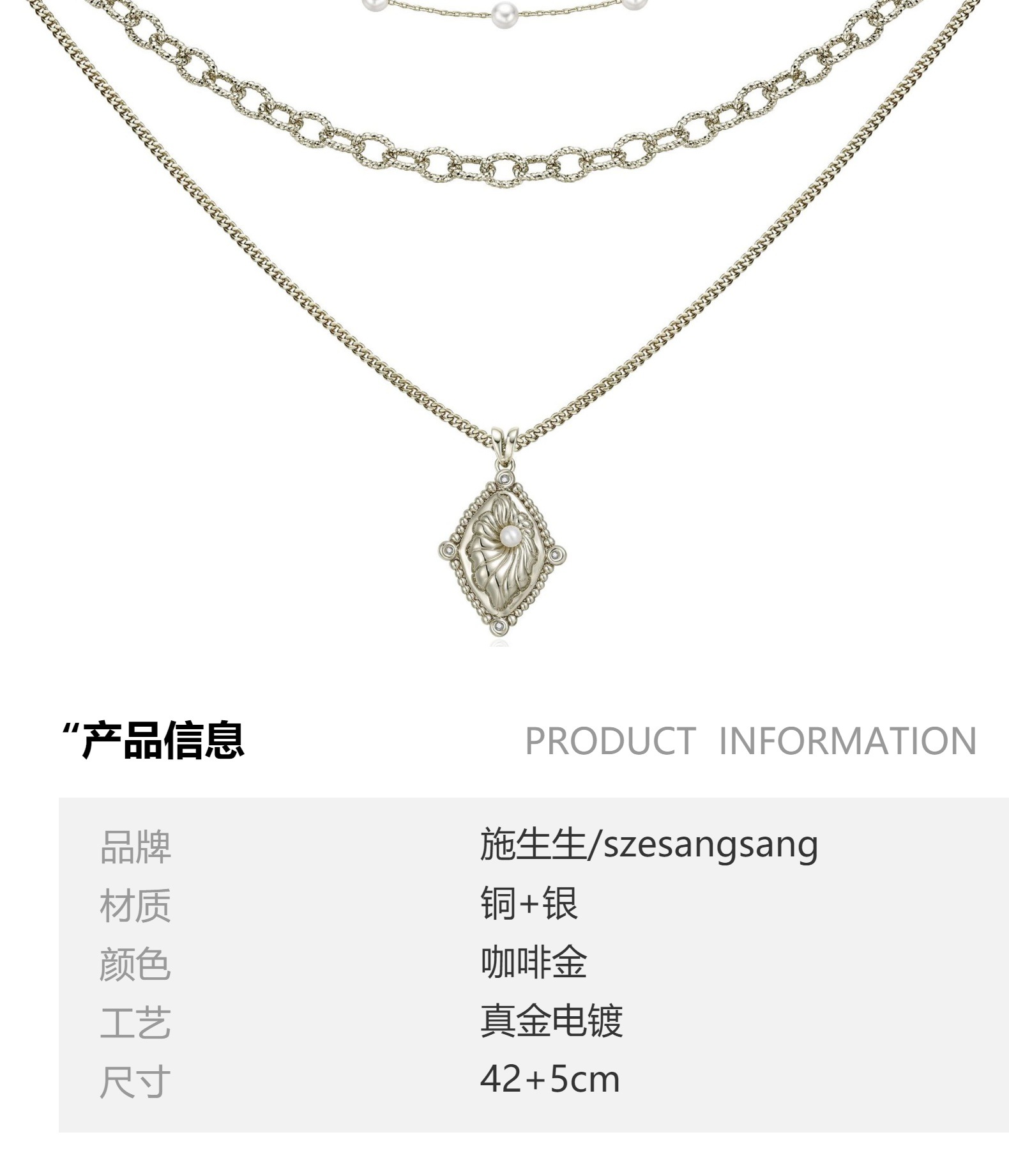 希腊设计师波塞冬系列 珍珠纹理项链三件套铜镀咖啡金复古高级感