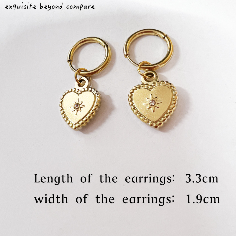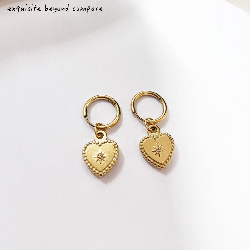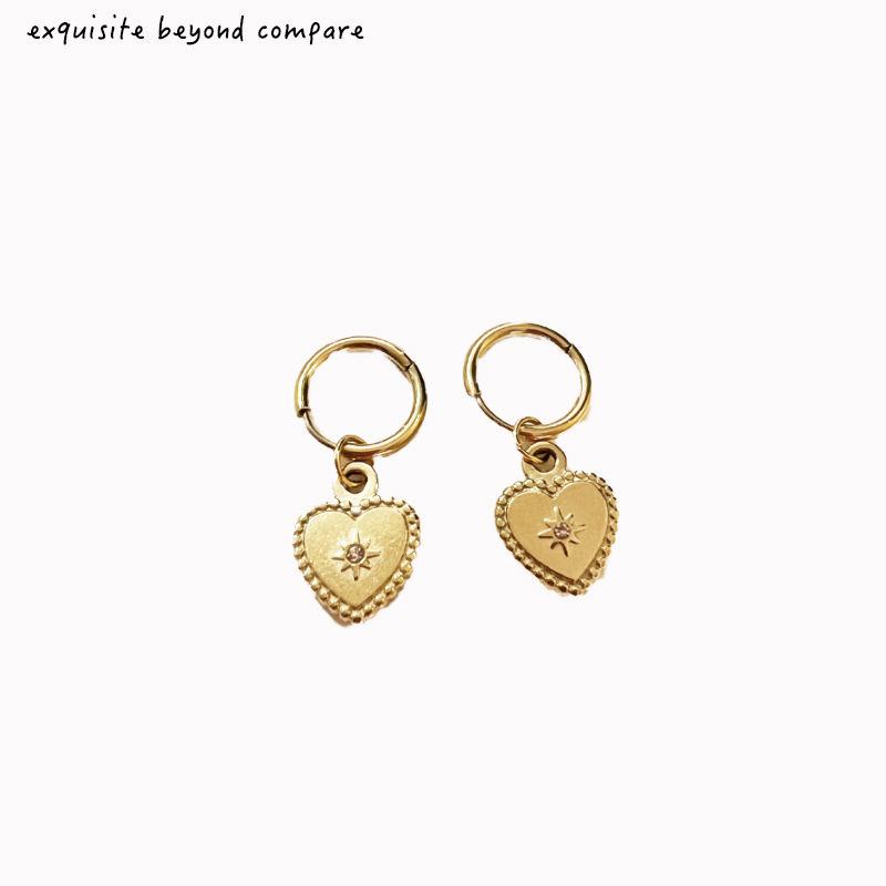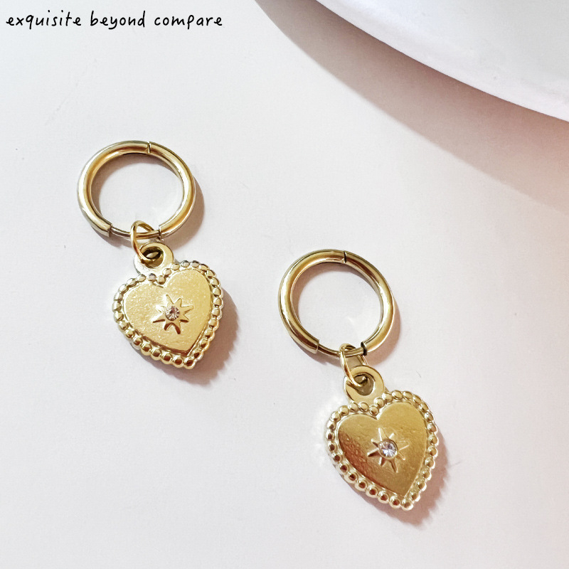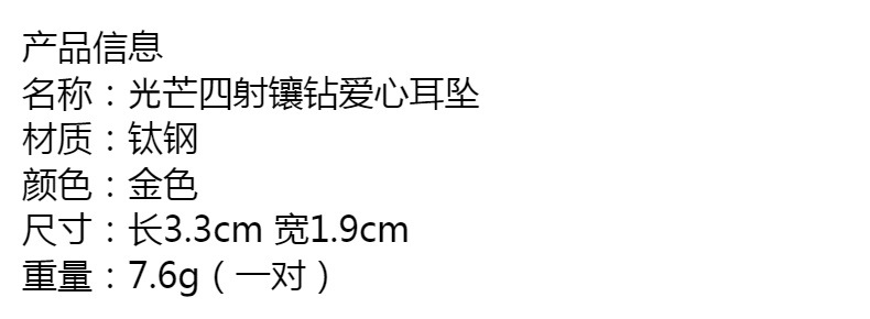 跨境新款钛钢耳饰光芒四射爱心镶钻耳环法式复古时尚金色女士耳坠