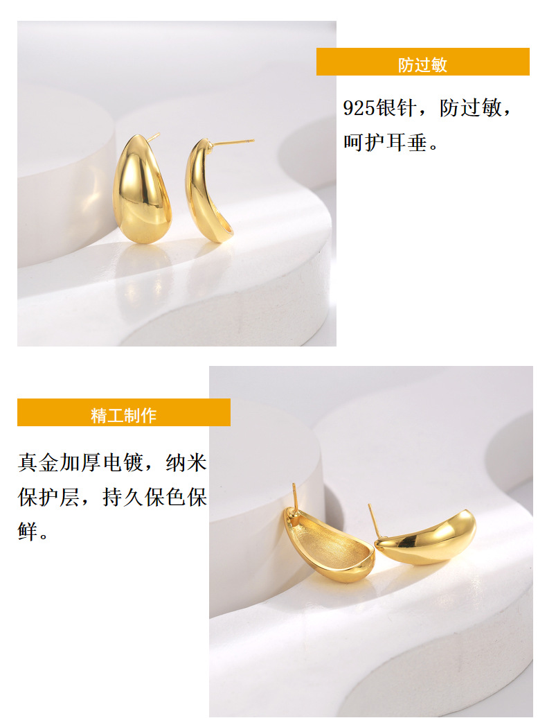 水滴状金色耳环欧美时尚法式新款女vintage耳饰中古饰品一件代发