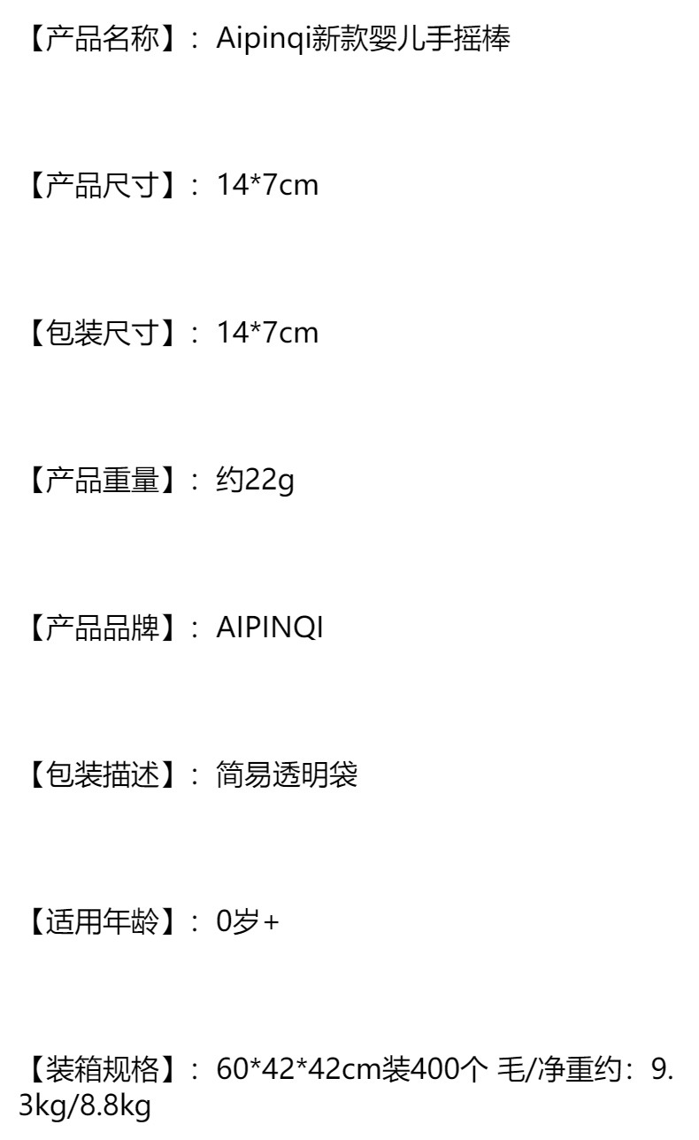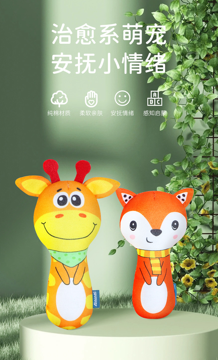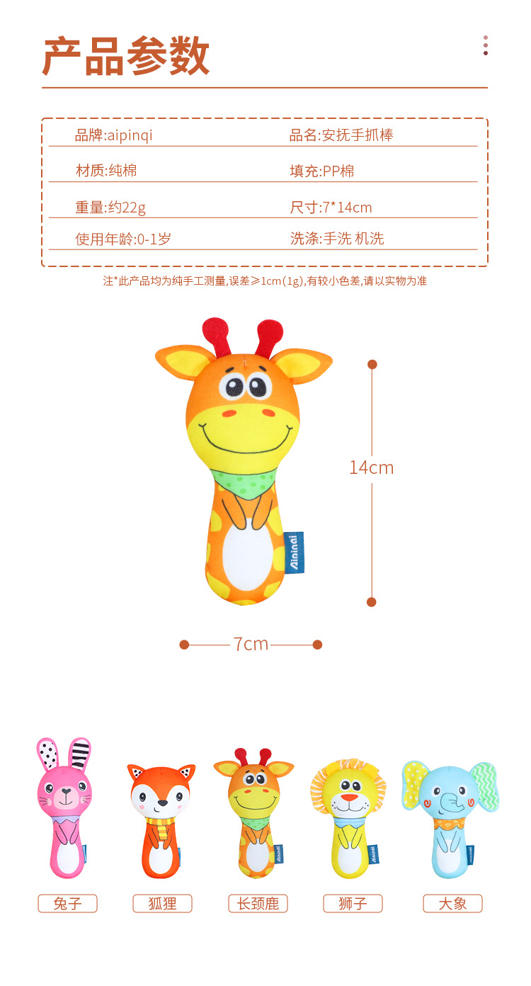 Aipinqi新款婴儿手摇棒新生儿手抓棒带摇铃bb器手抓玩具宝宝毛绒