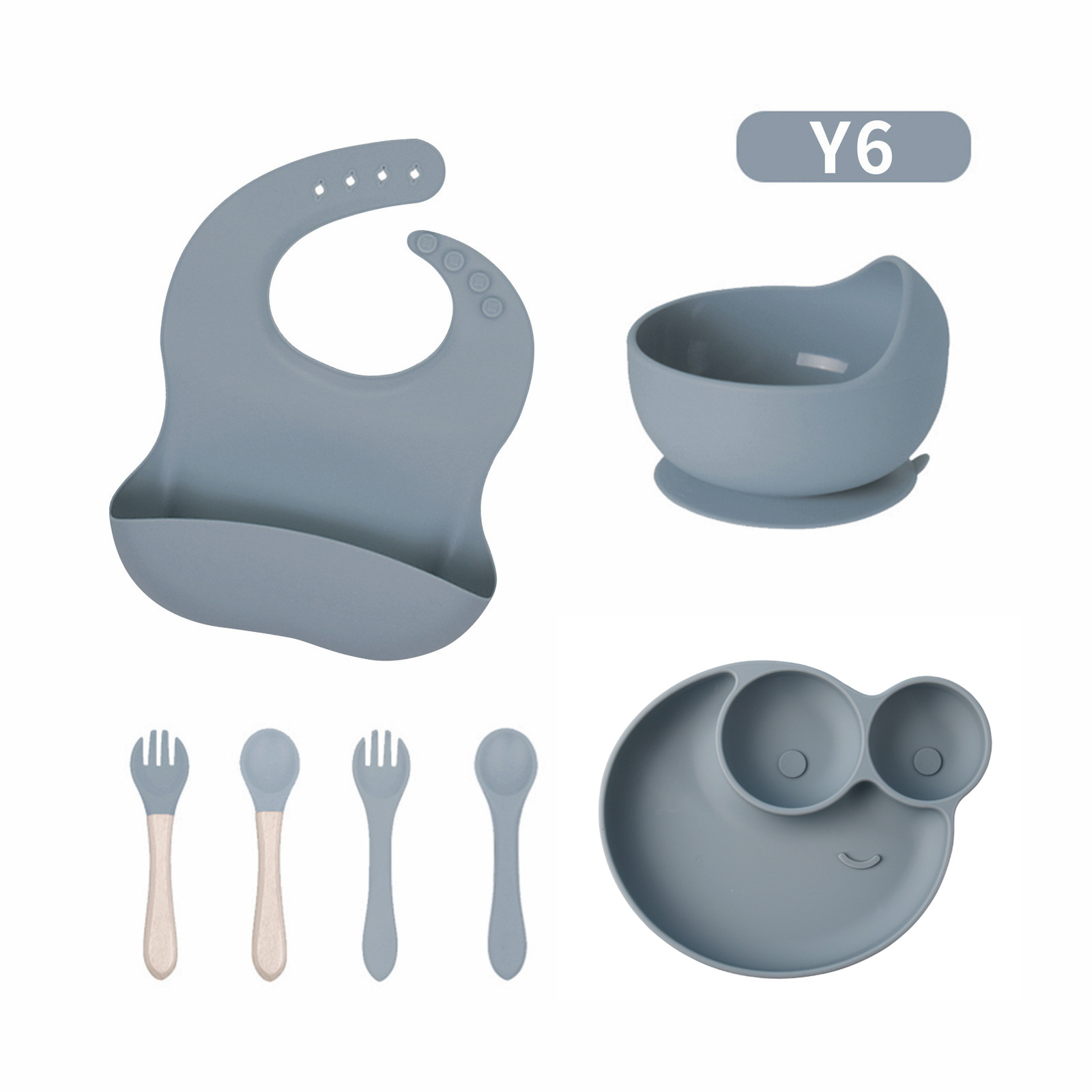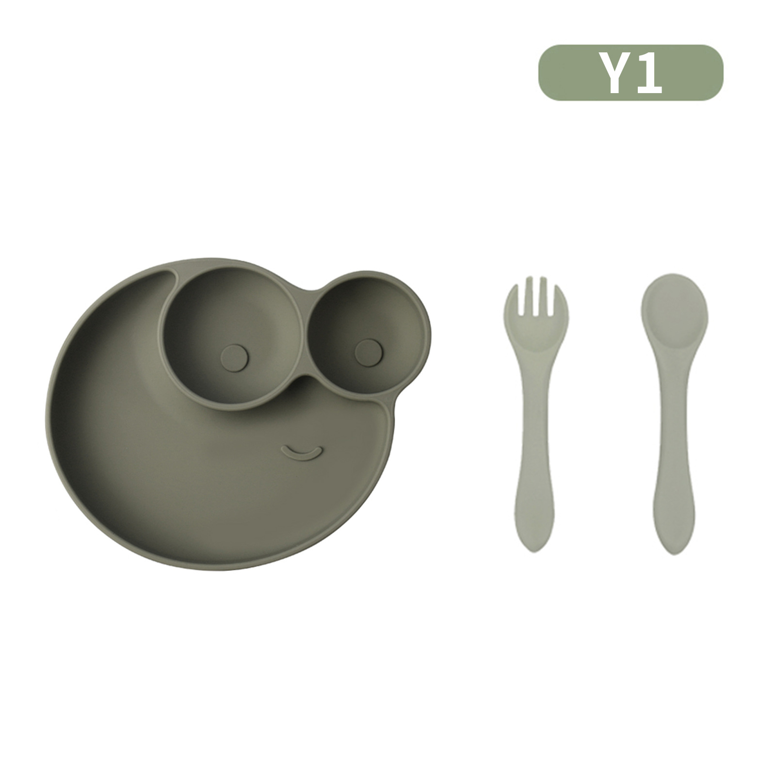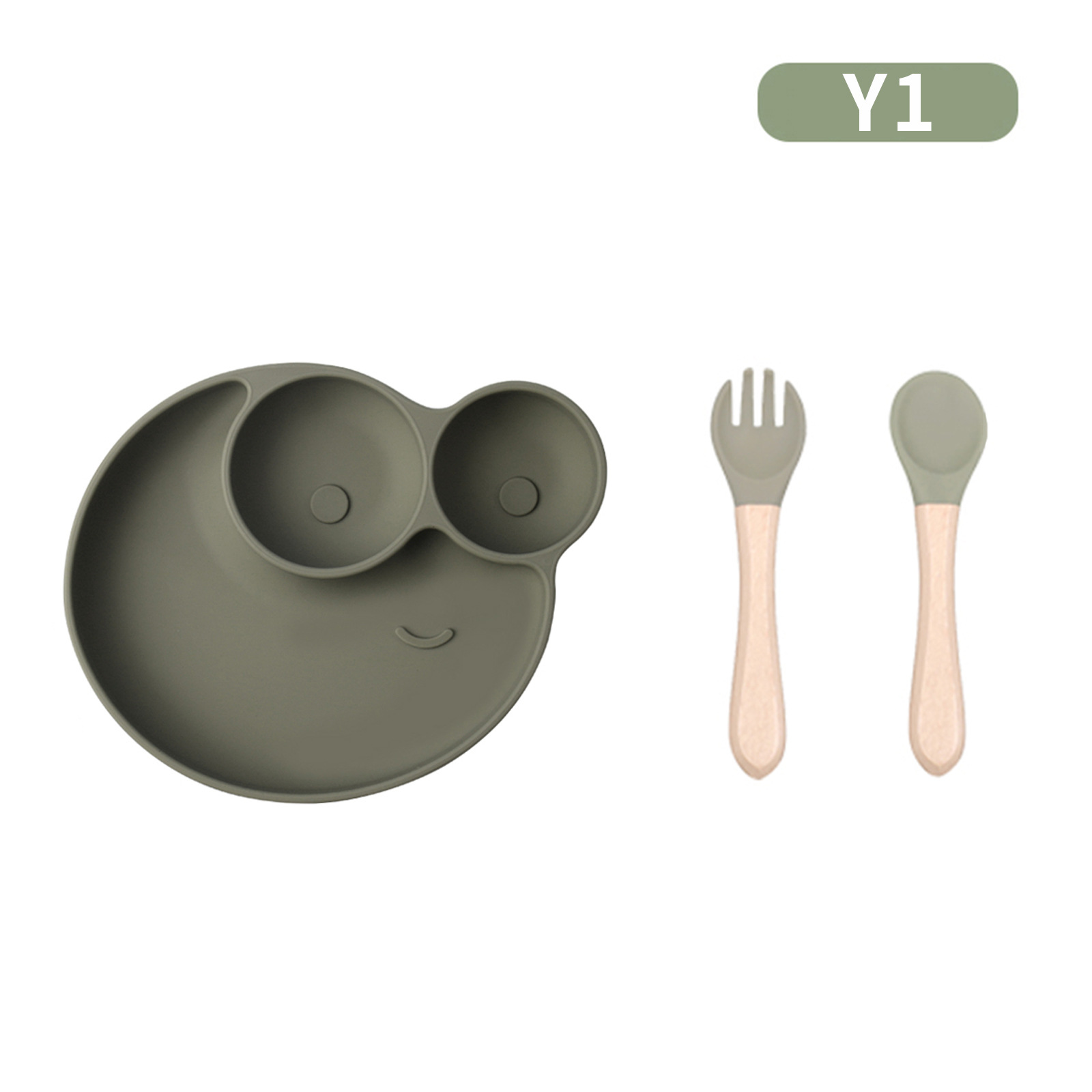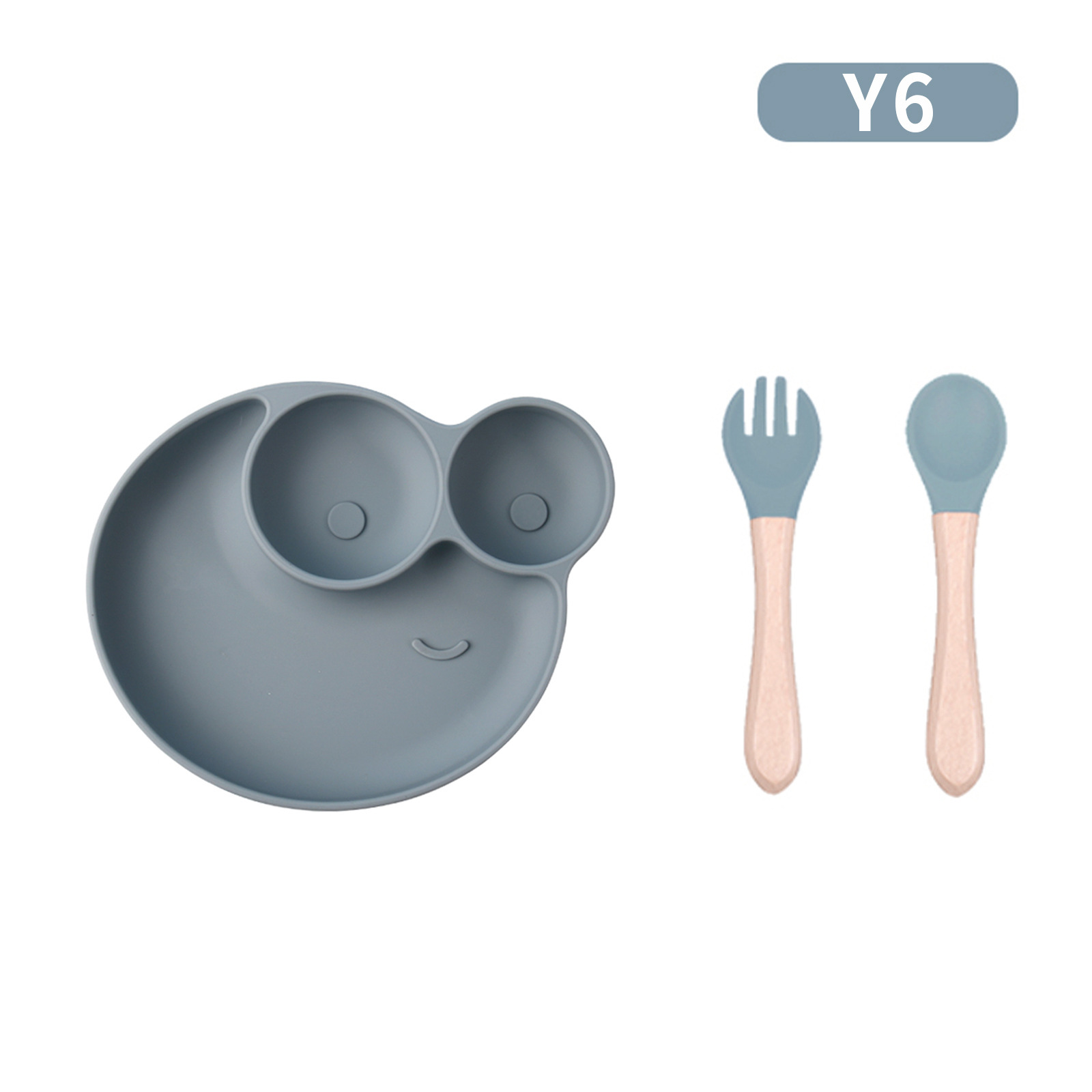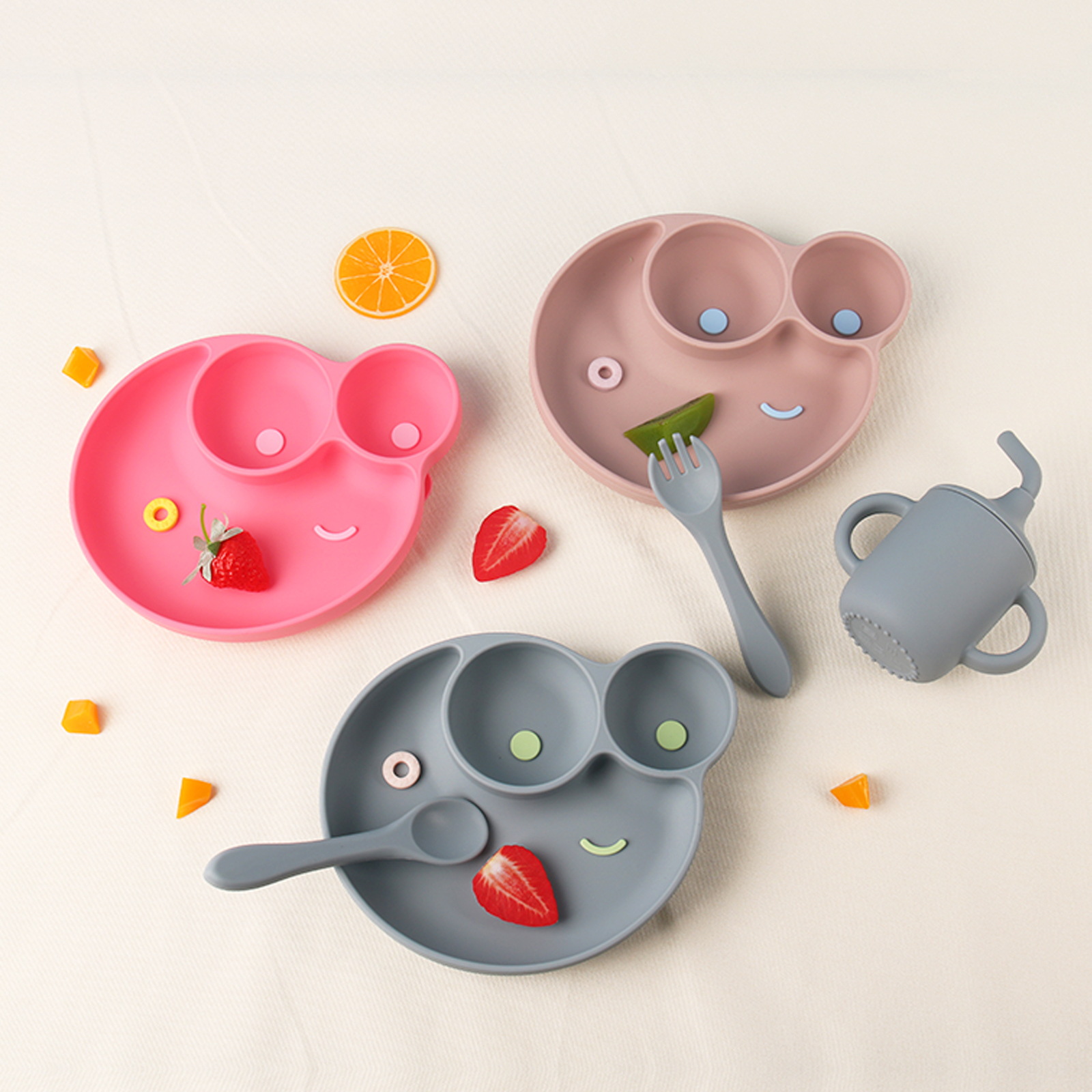 日用 儿童餐具套装组合3件套硅胶盘 喂养餐具 勺叉 水杯 餐盘碗
