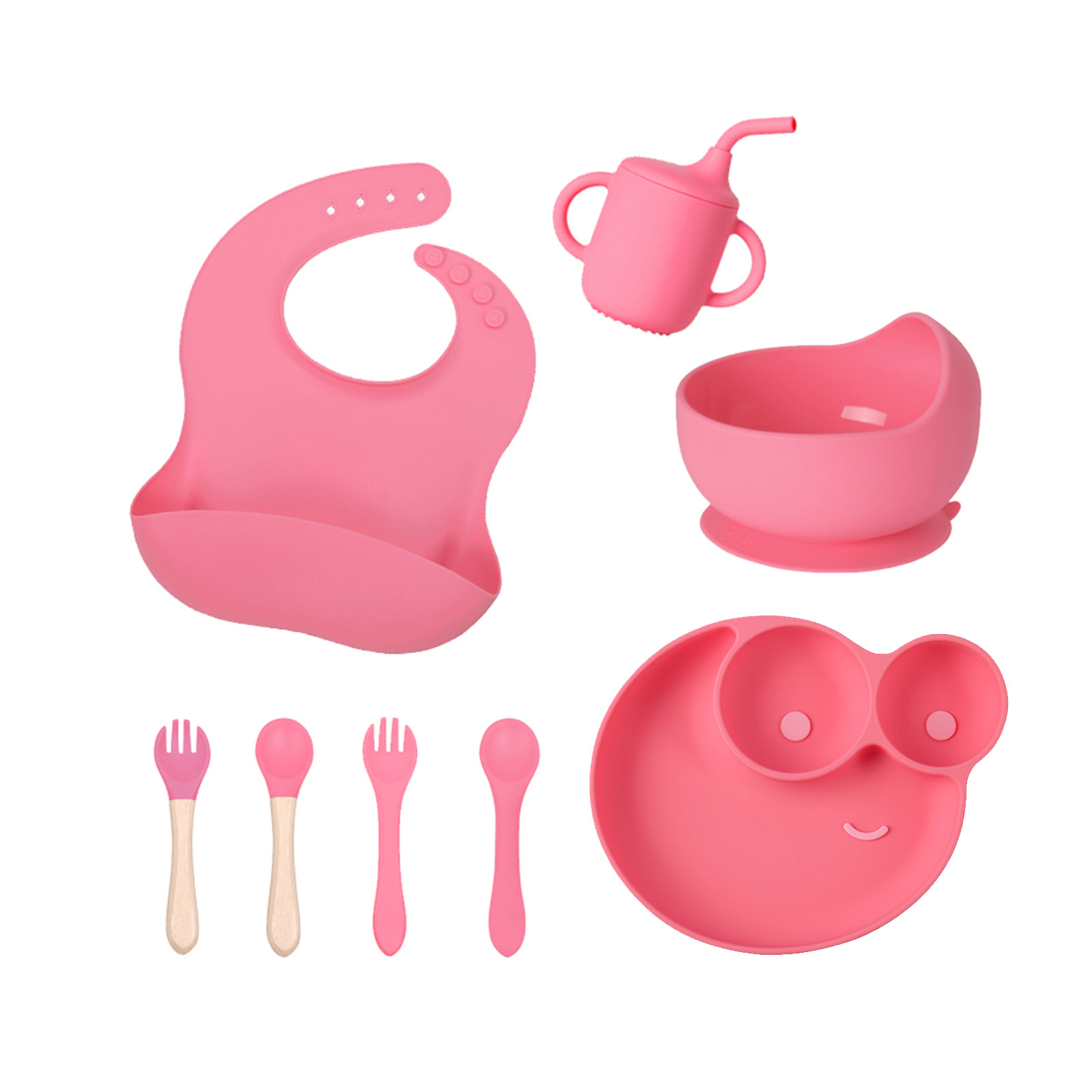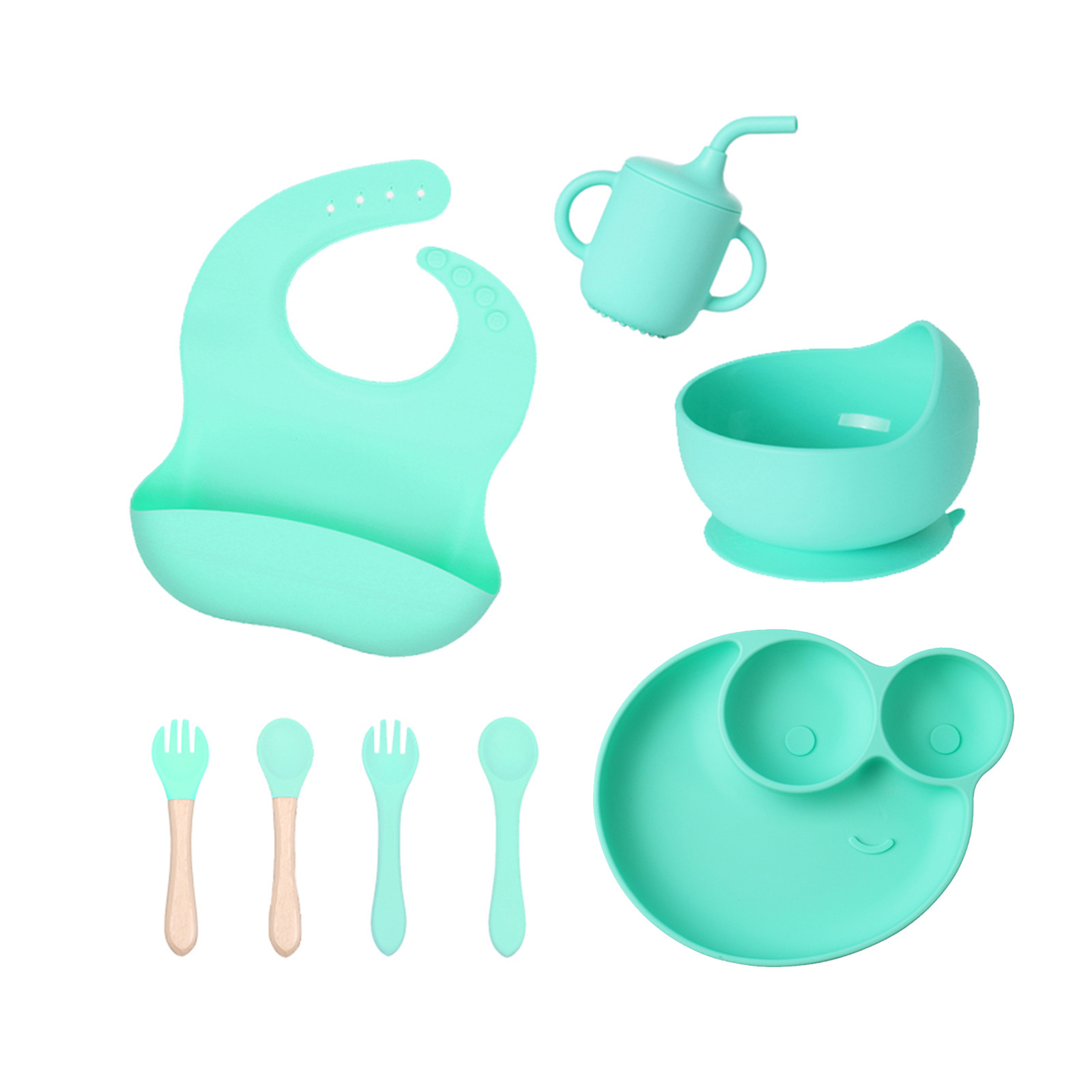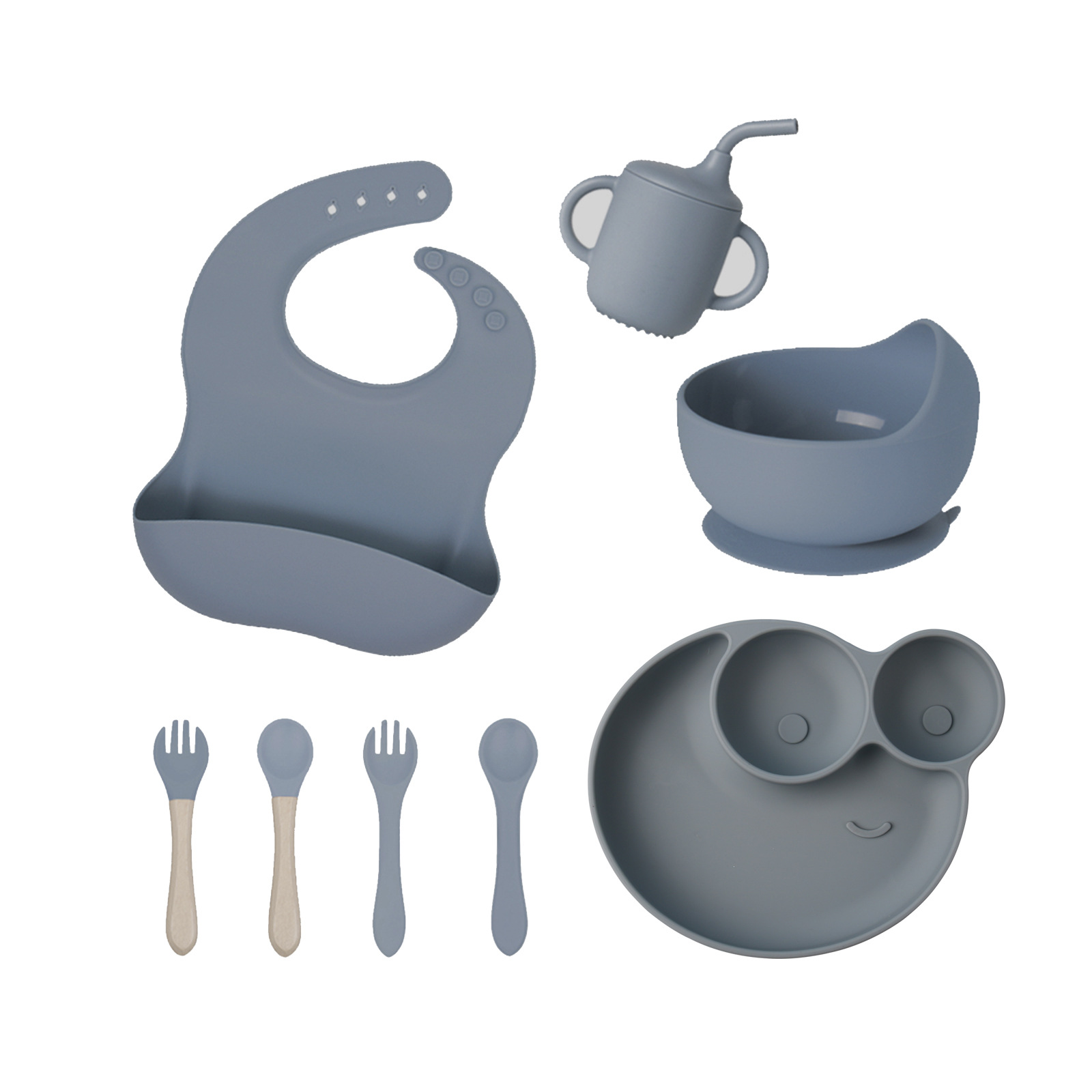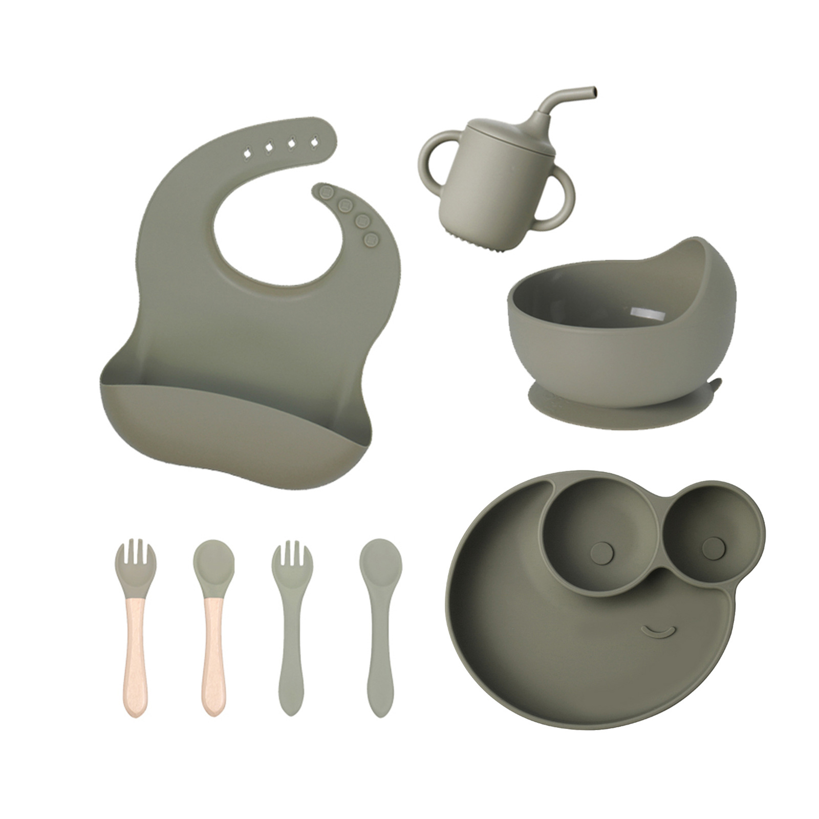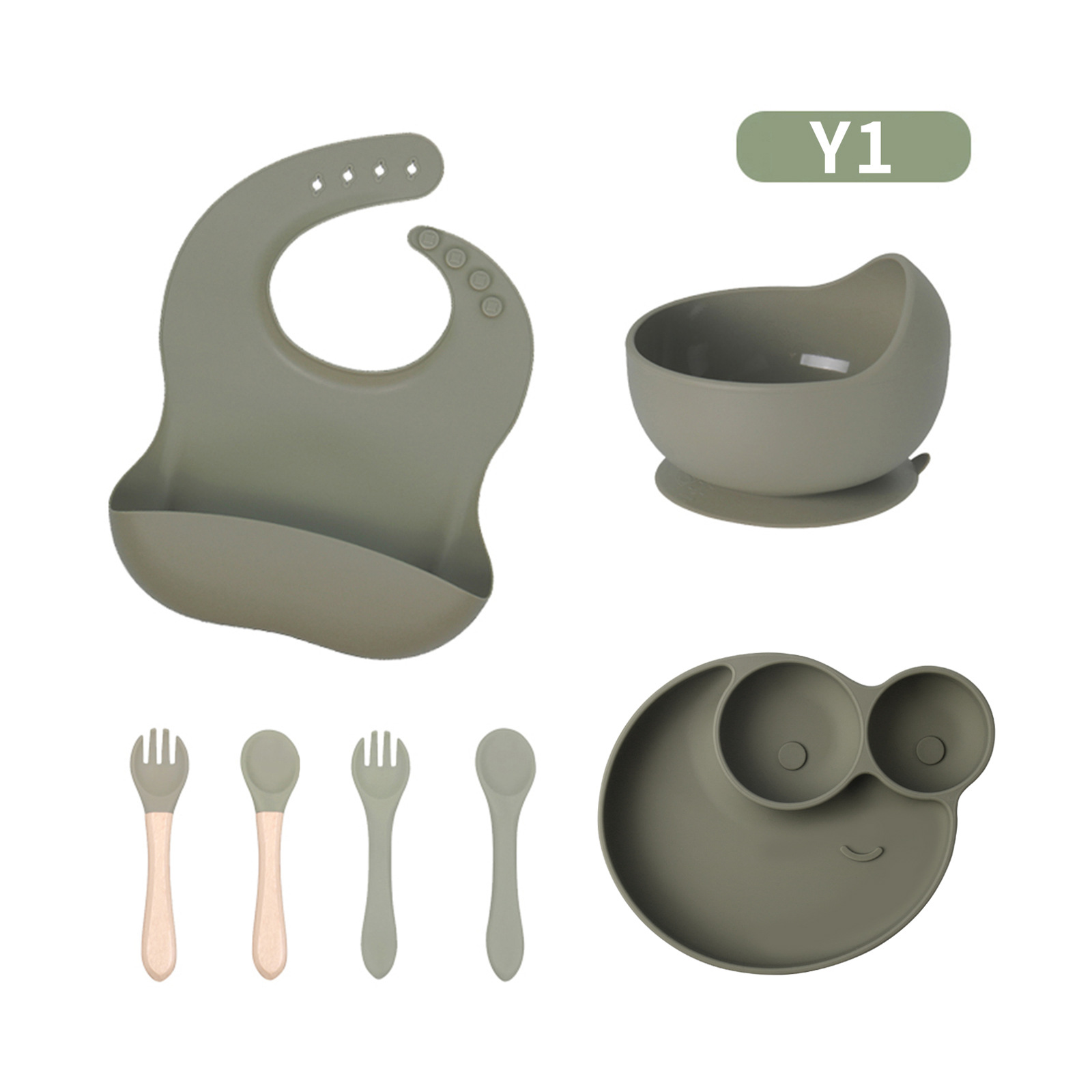 日用 儿童餐具套装组合3件套硅胶盘 喂养餐具 勺叉 水杯 餐盘碗