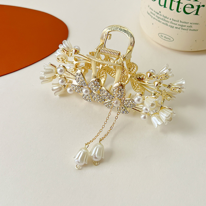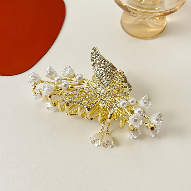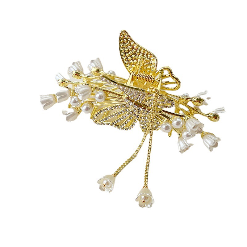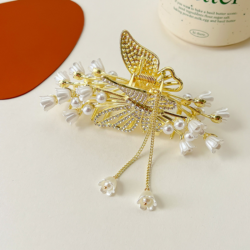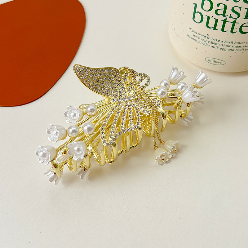 水钻珍珠铃兰花流苏蝴蝶鲨鱼夹大号夹子盘发抓夹女