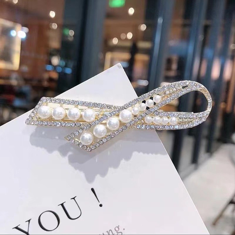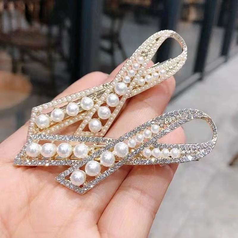 网红小香风合金珍珠水钻侧边夹发夹镶钻日韩系女发饰批发