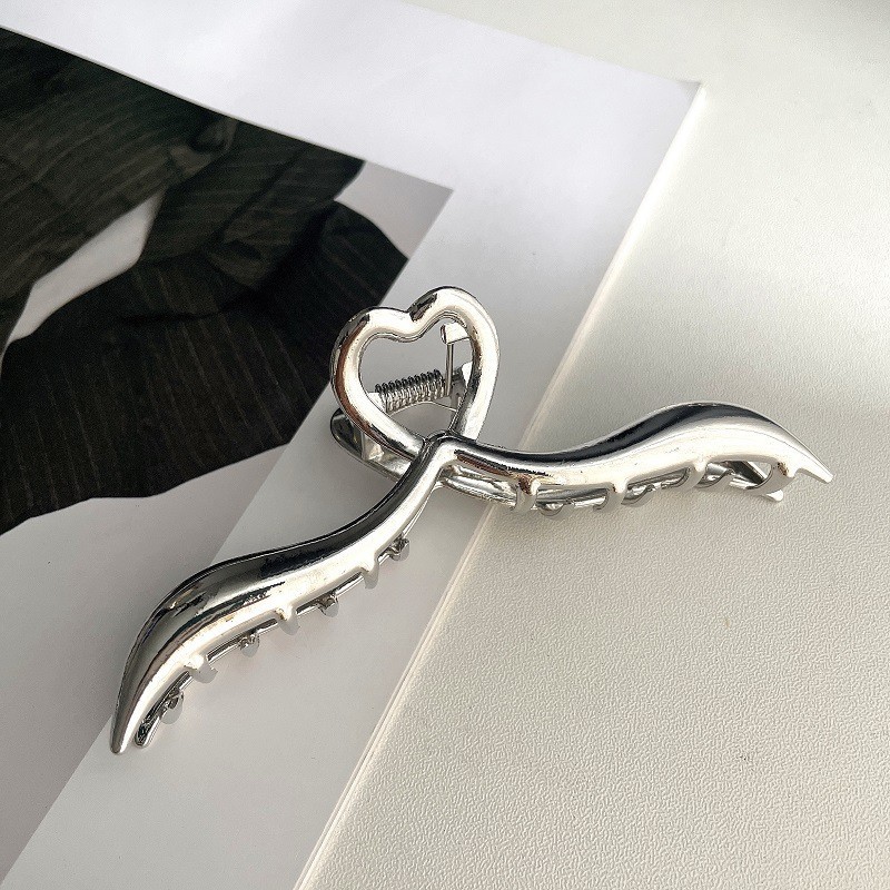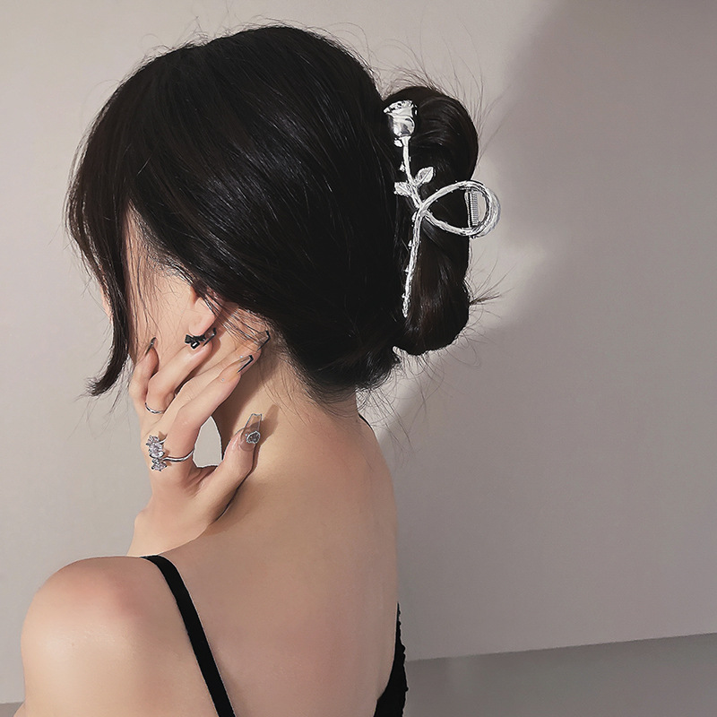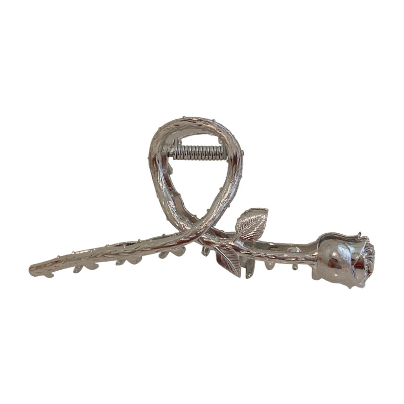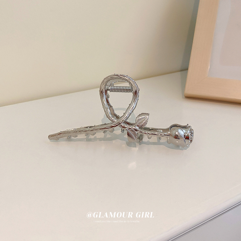 银色金属玫瑰花朵发夹光面抓夹冷淡风个性发饰头饰