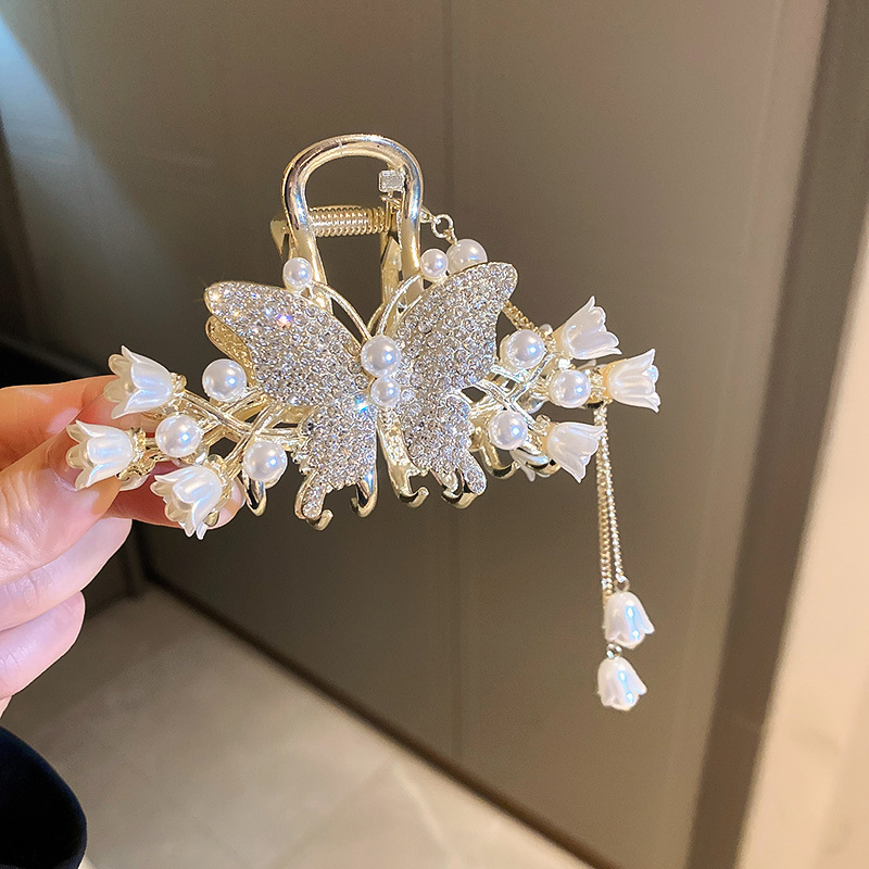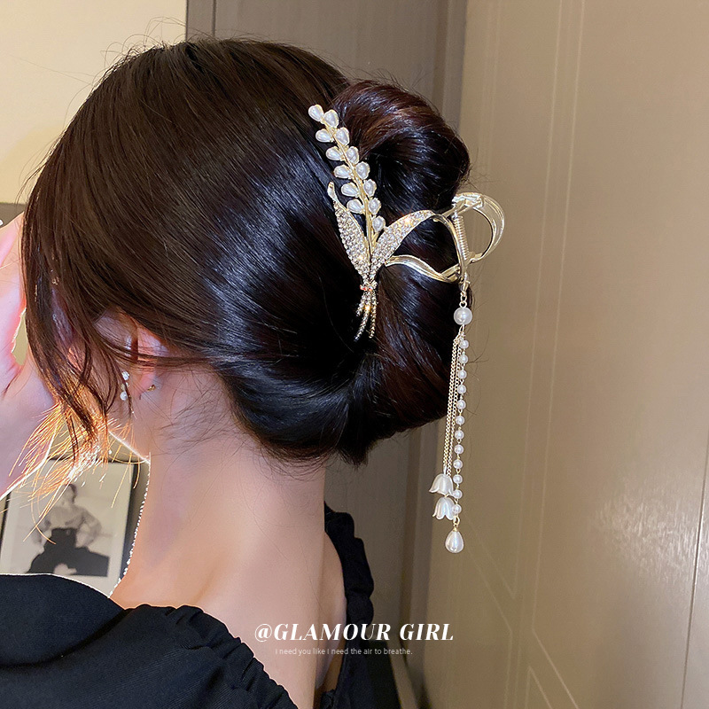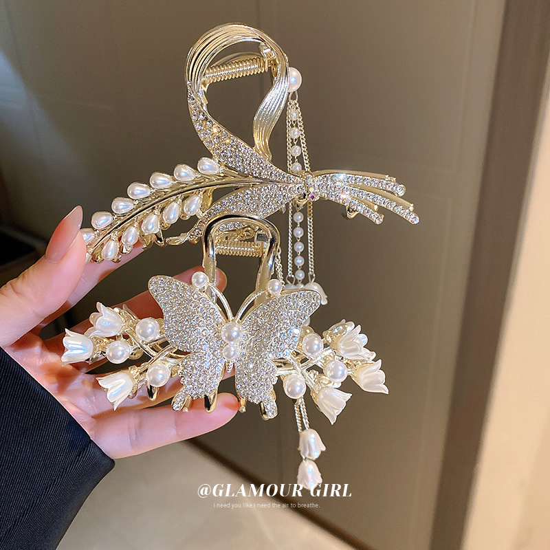 珍珠镶钻麦穗蝴蝶铃兰流苏发夹日韩轻奢抓夹时尚发饰女