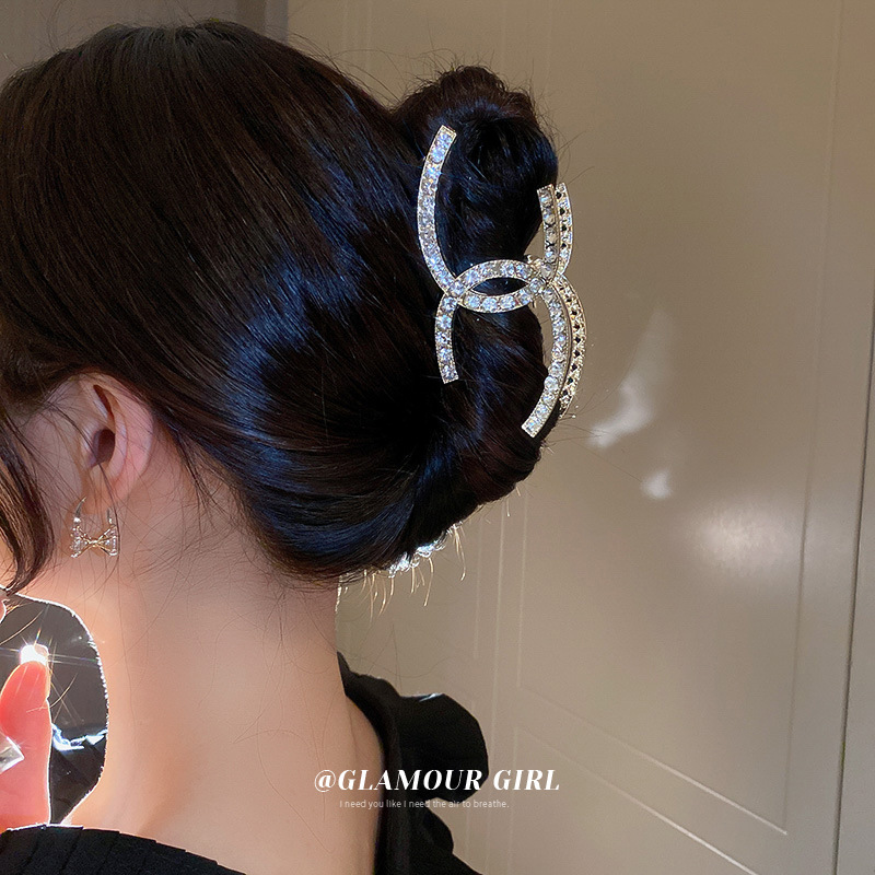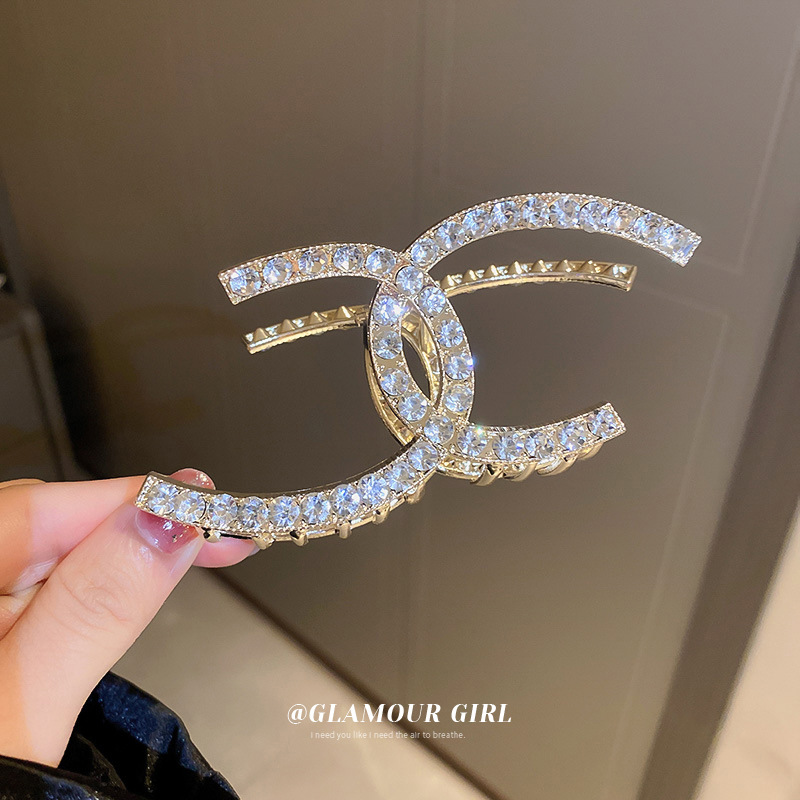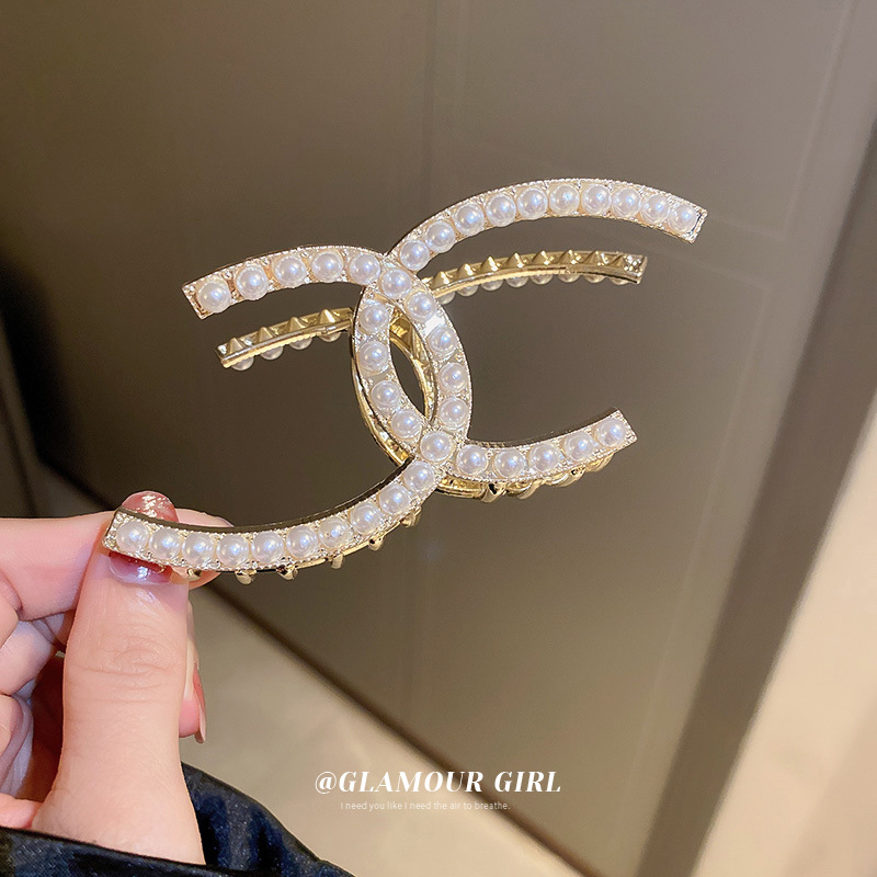 抖音同款镶钻珍珠字母抓夹韩国盘发鲨鱼夹轻奢发饰批发