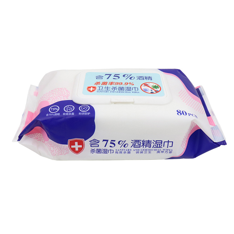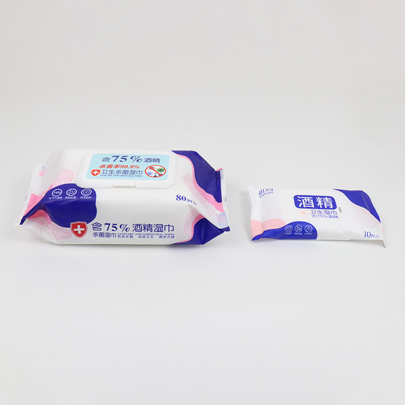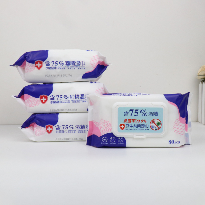 批发纸品湿巾含75%酒精消毒湿巾80抽10抽一次性湿巾纸家用便携装