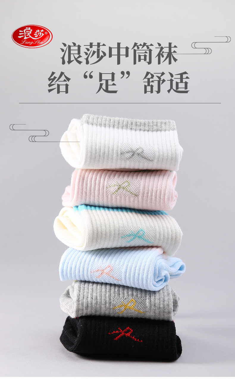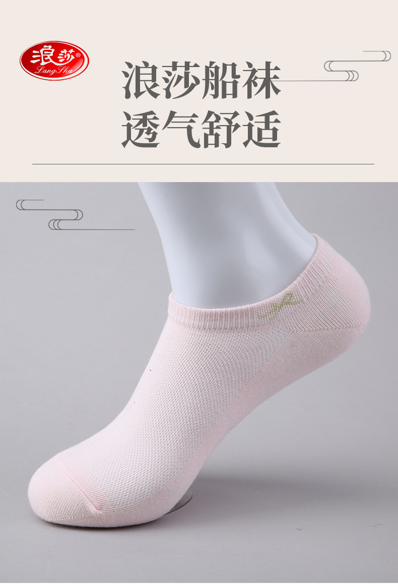 浪莎袜子女短袜棉袜春夏薄款女袜潮流运动中筒透气防臭夏季女船袜
