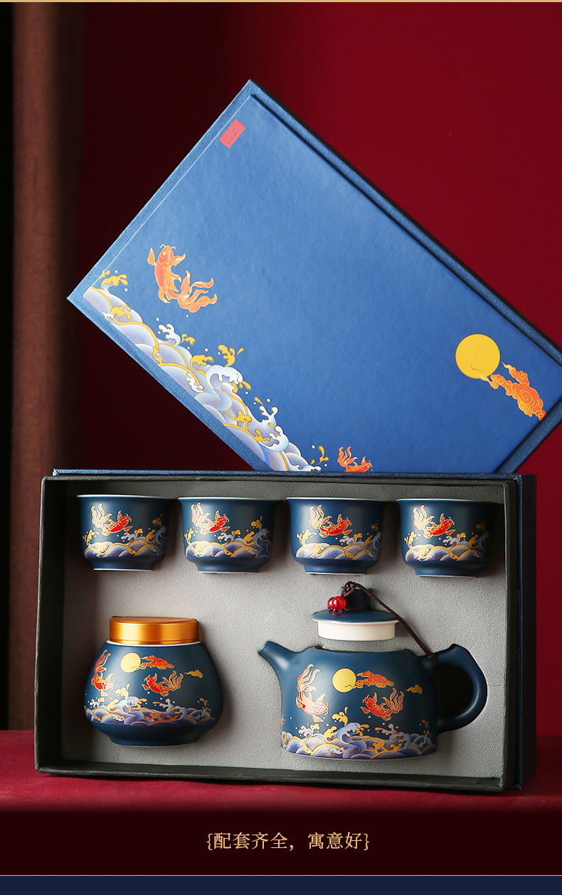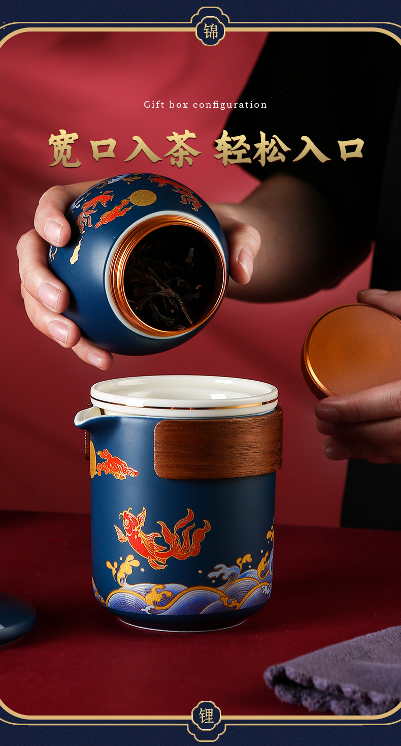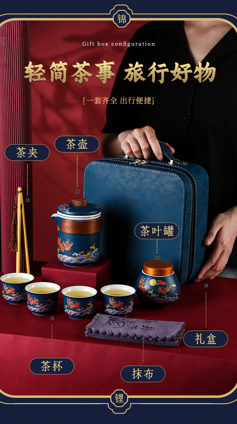 国潮风锦鲤旅行茶具商务活动礼品套装高档礼品送客户伴手礼印logo
