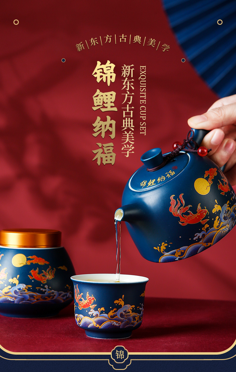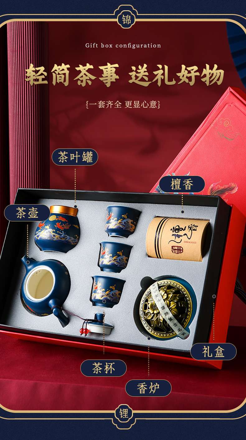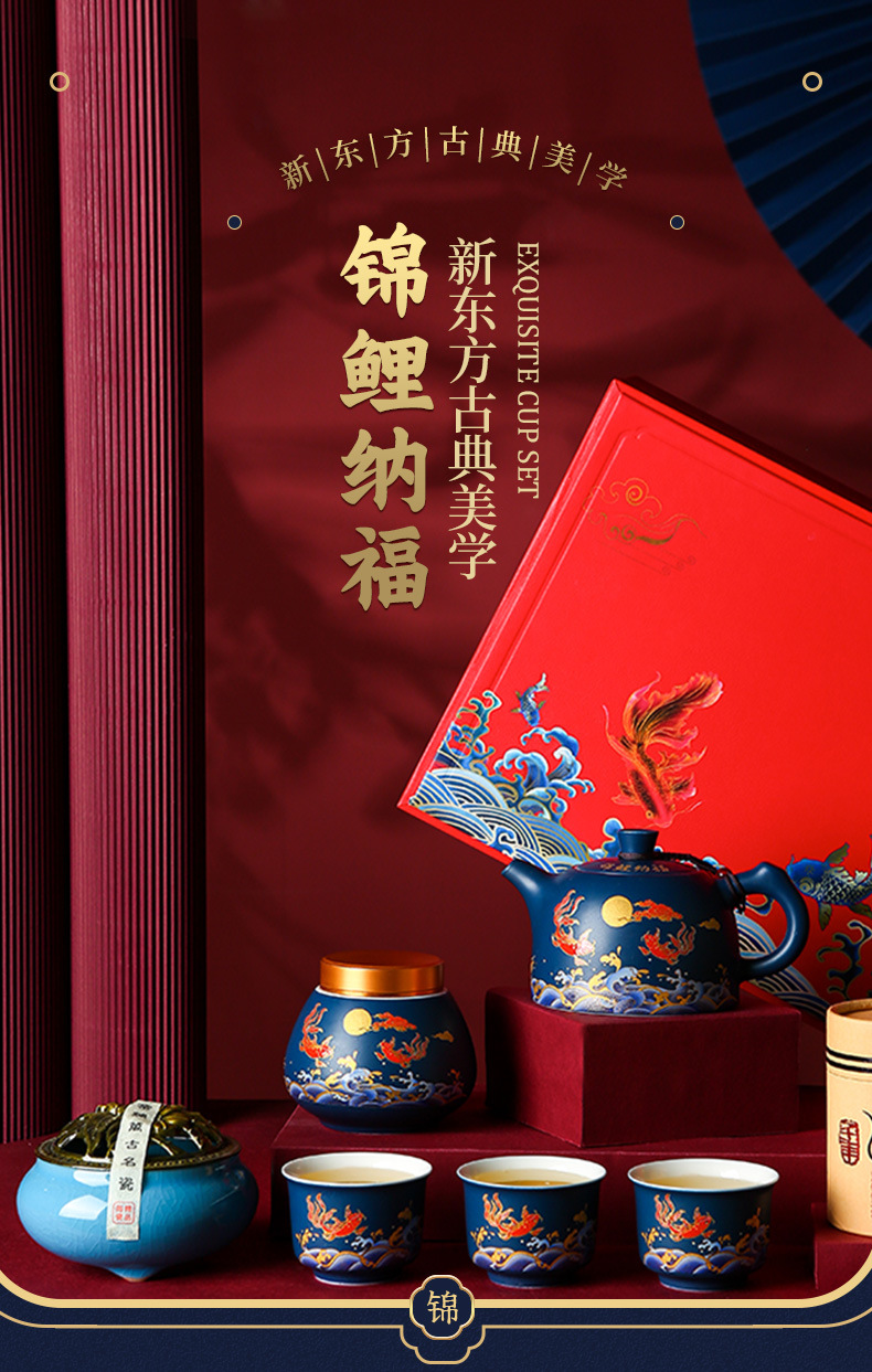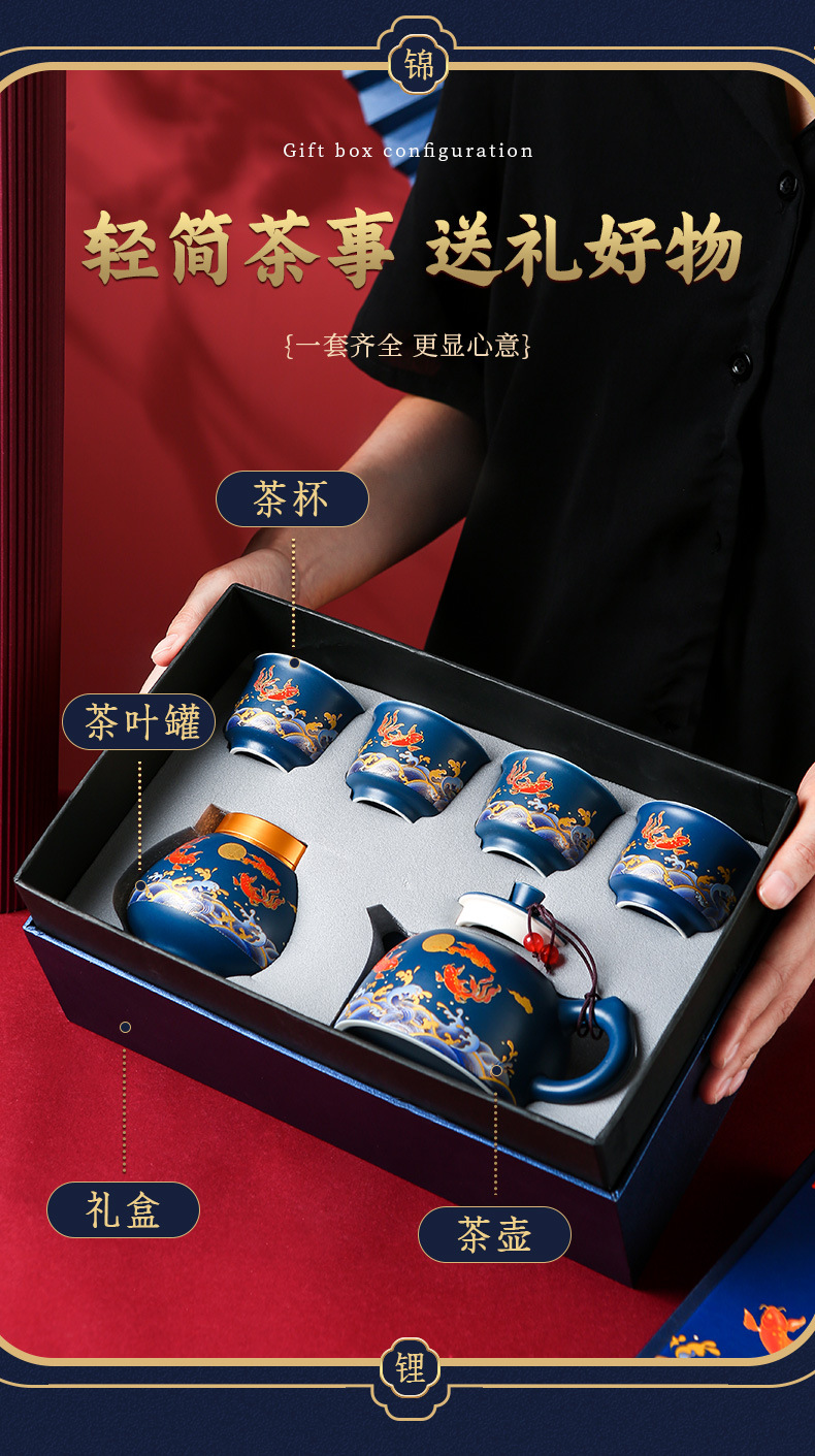 国潮风锦鲤旅行茶具商务活动礼品套装高档礼品送客户伴手礼印logo