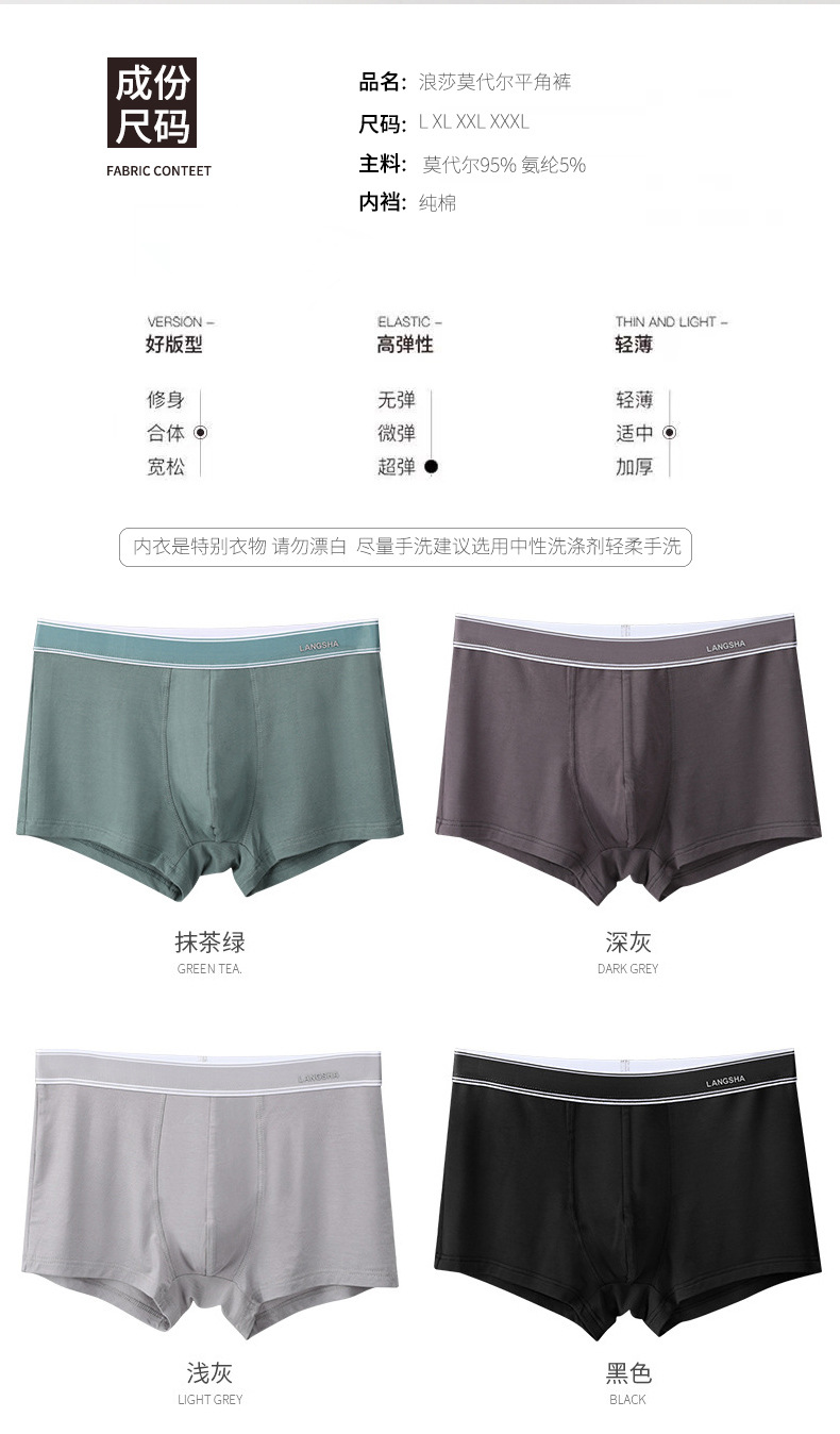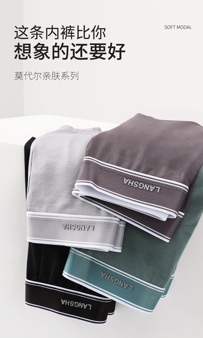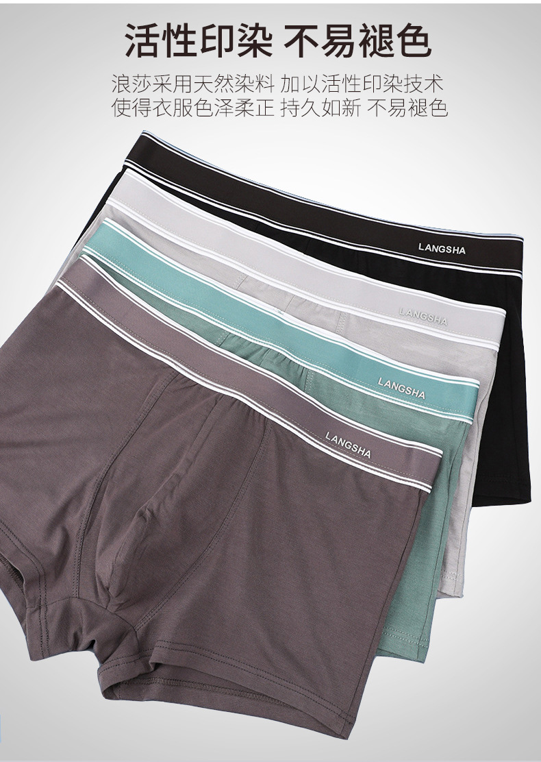 浪莎男士内裤莫代尔夏季薄款男生四角裤运动透气男式青少年平角裤