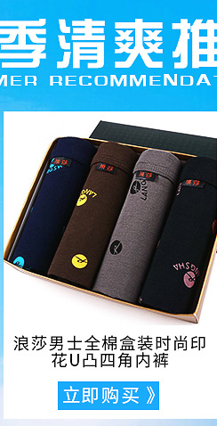 浪莎内裤男士纯棉印花短裤礼盒平角裤四角裤衩全棉透气短裤头批发