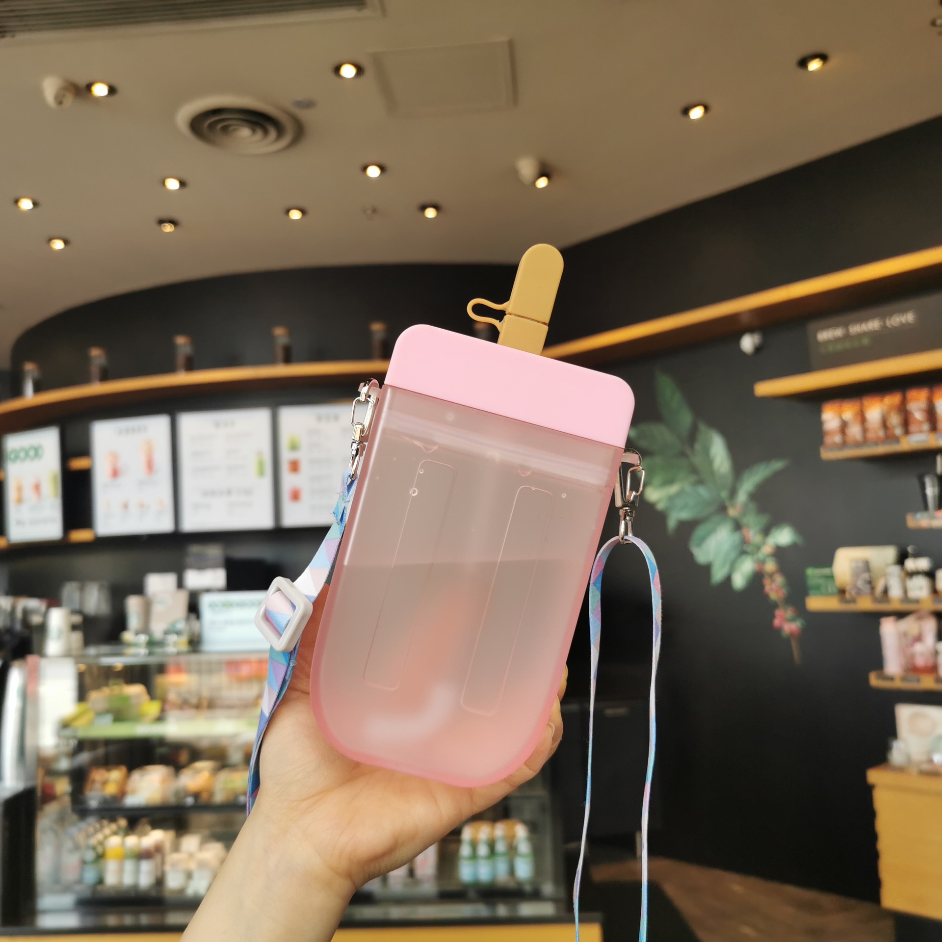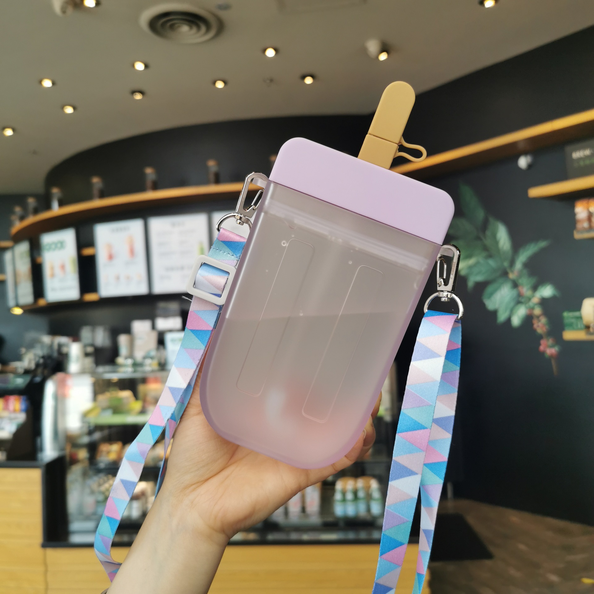 创意简约时尚可爱背带吸管塑料杯冰棍防漏防摔青少年学生成人水杯