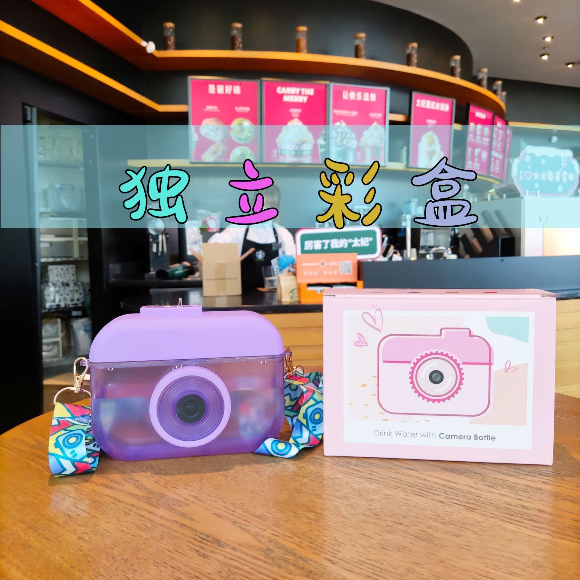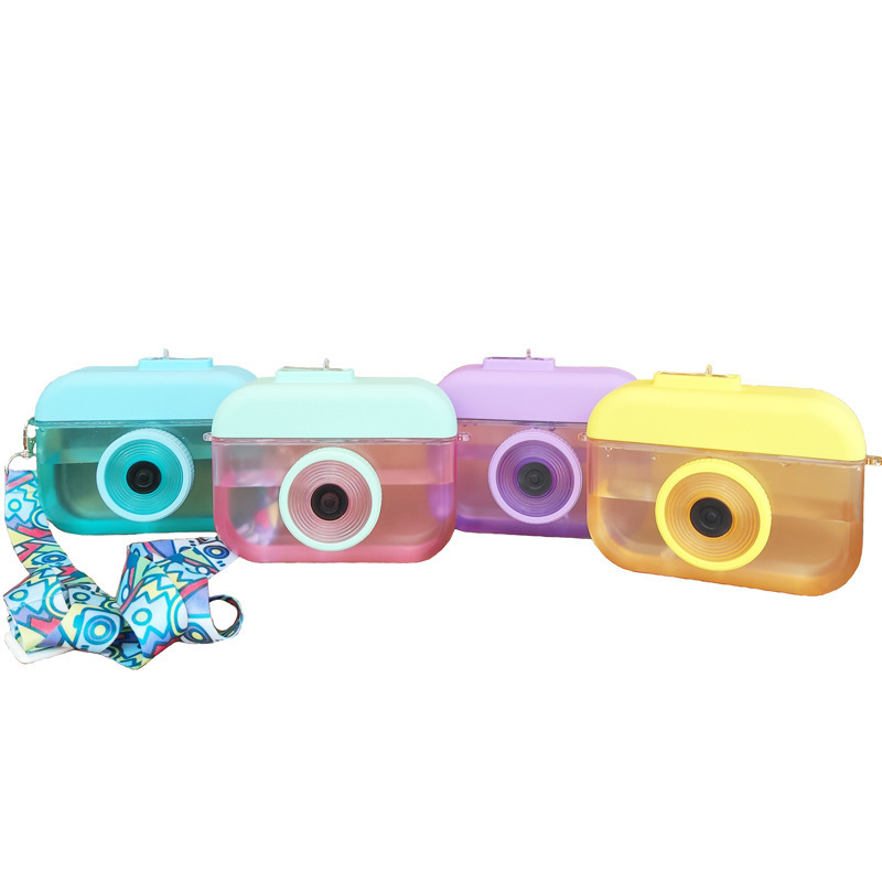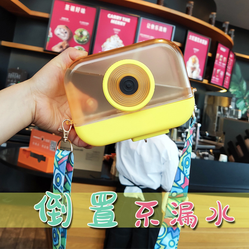 创意相机吸管塑料杯背带果汁杯户外可爱防漏水杯女学生杯子代发