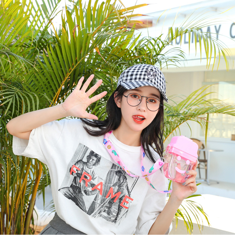 批发雅非奇创意卡通笑脸儿童雪糕塑料杯健身运动吸嘴背带塑料杯
