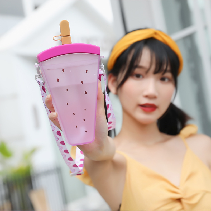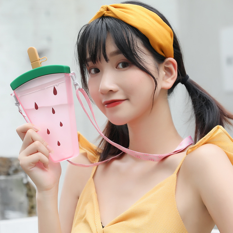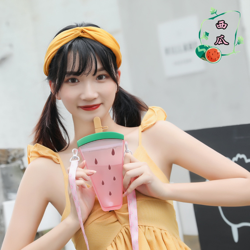 夏季卡通韩版创意水杯硅胶吸管西瓜背带冷饮塑料水杯学生女小学生