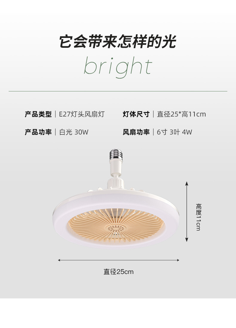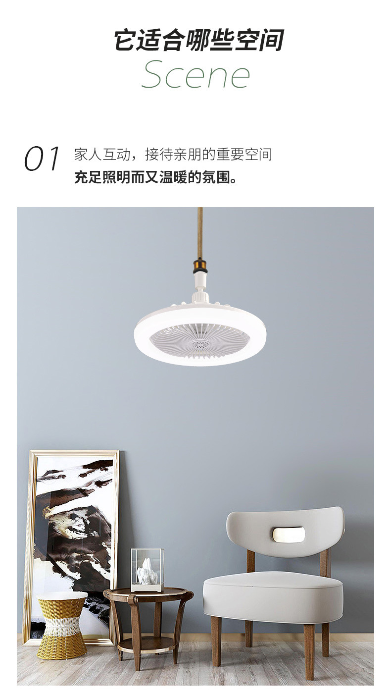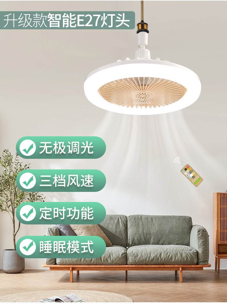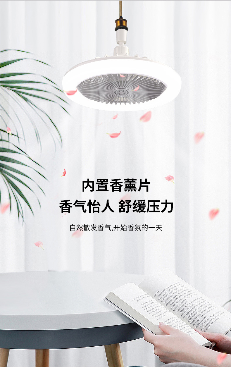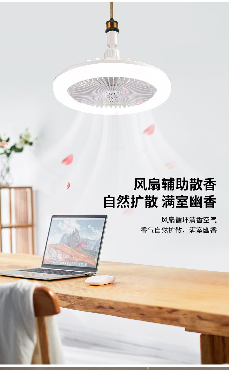 跨境LED卧室香薰风扇灯E27遥控书房客厅灯万向灯头款宿舍吊扇灯