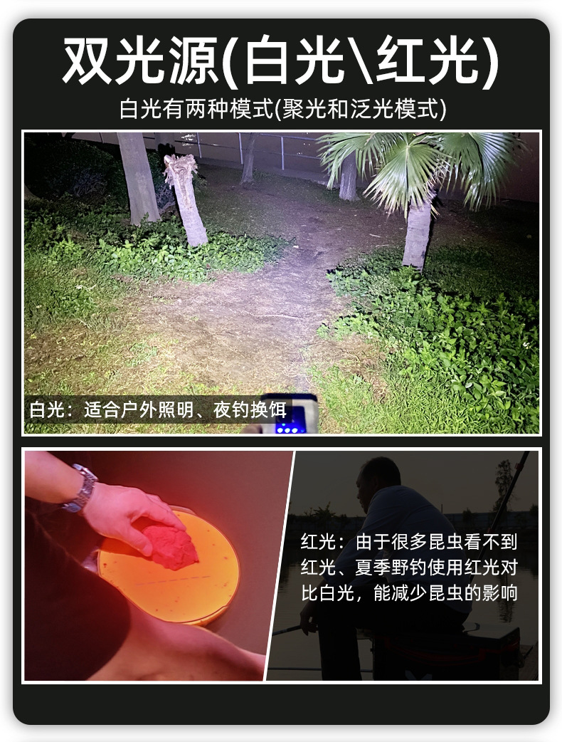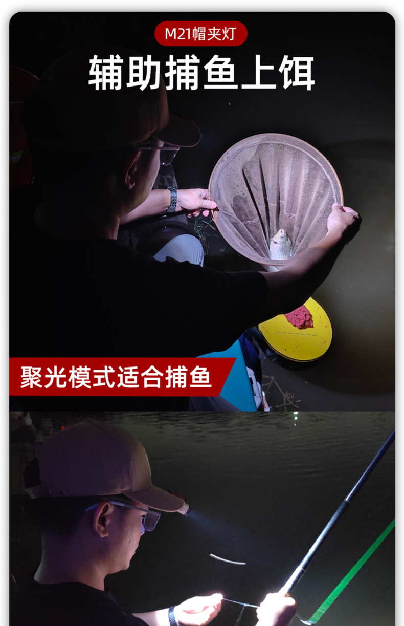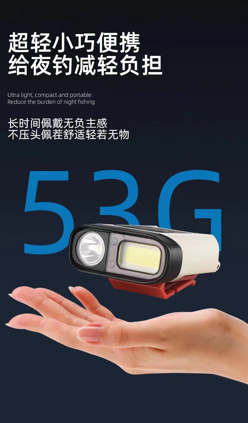 跨境亚马逊双光源钓鱼头灯感应帽夹灯户外多功能自行车灯USB充电