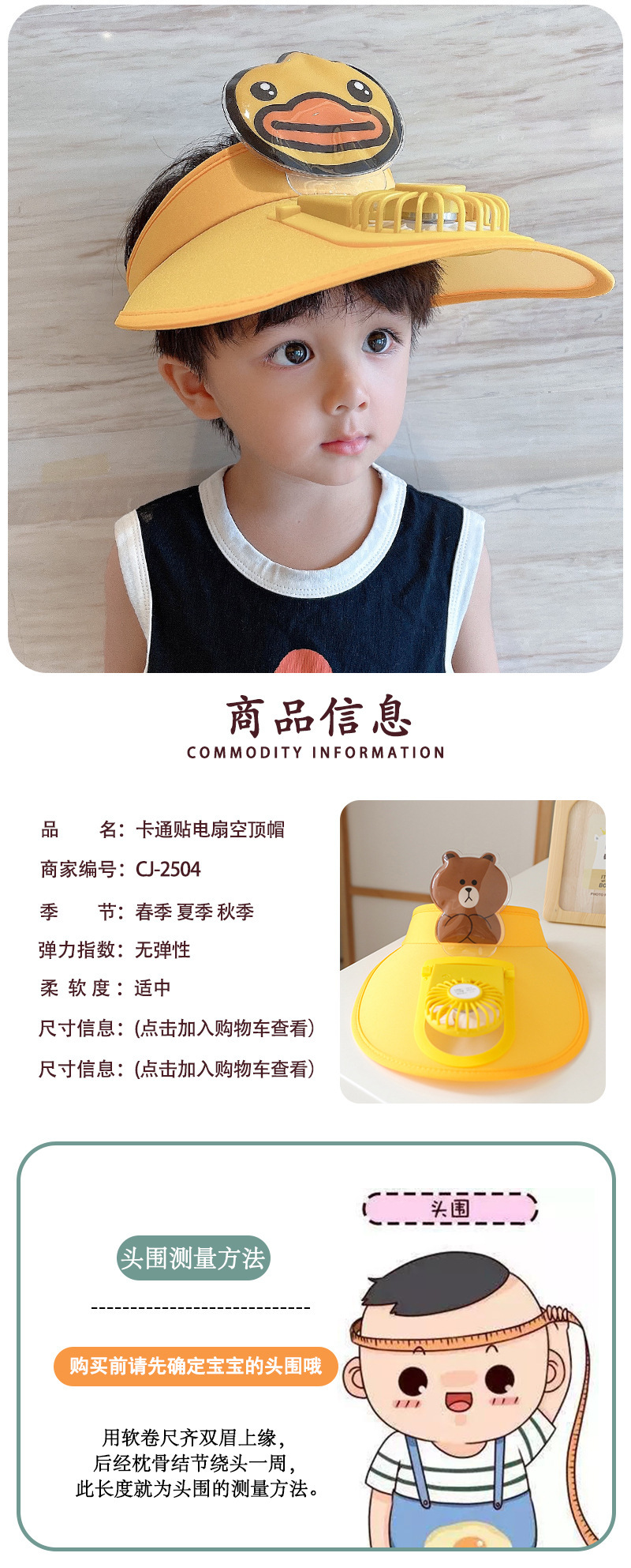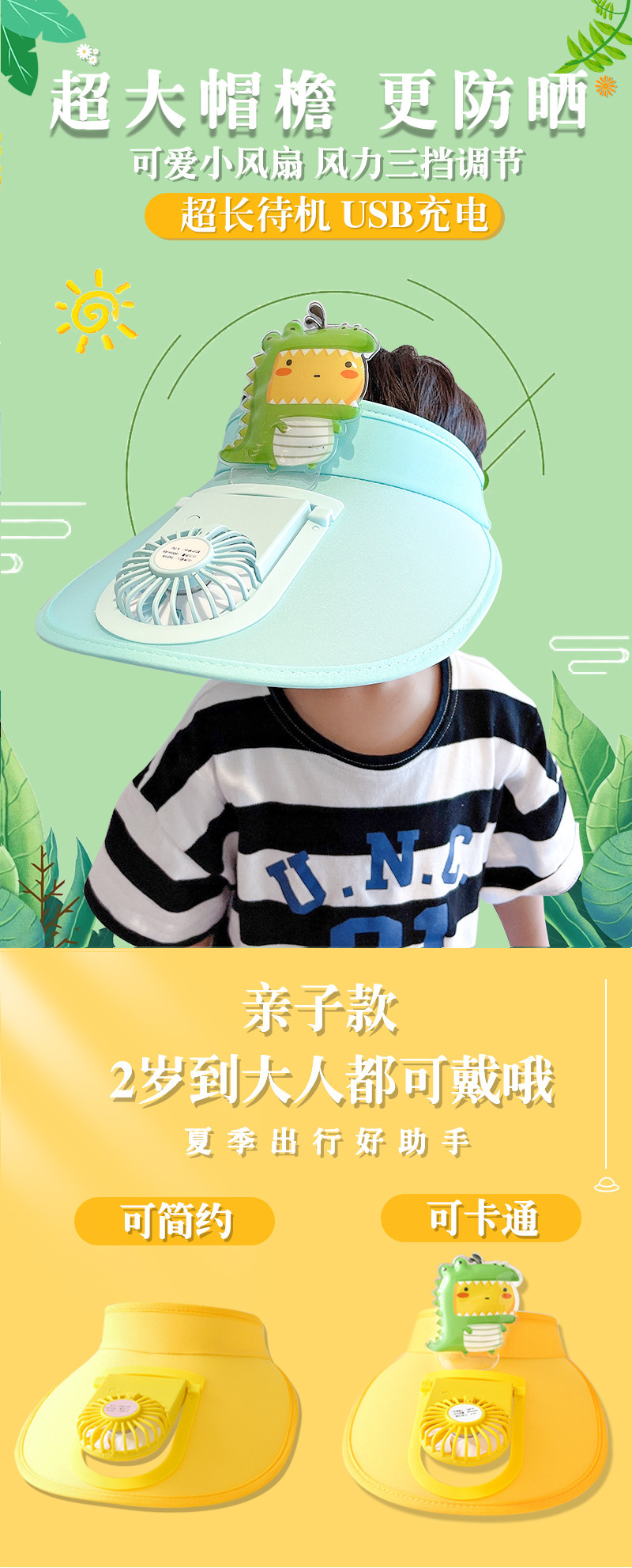 宝宝帽子夏季可充电带风扇遮阳帽男童女童防晒户外儿童大檐空顶帽