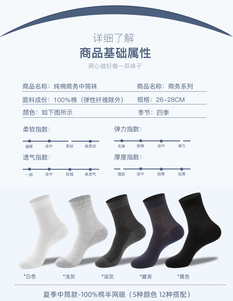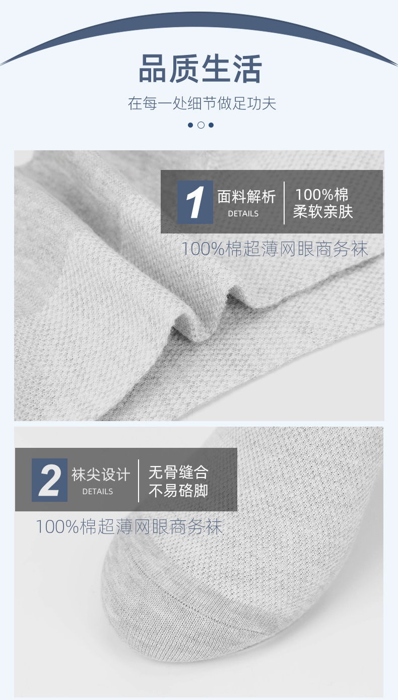2023浪莎男士棉袜中筒袜纯棉超薄男士商务网眼袜子厂家直销