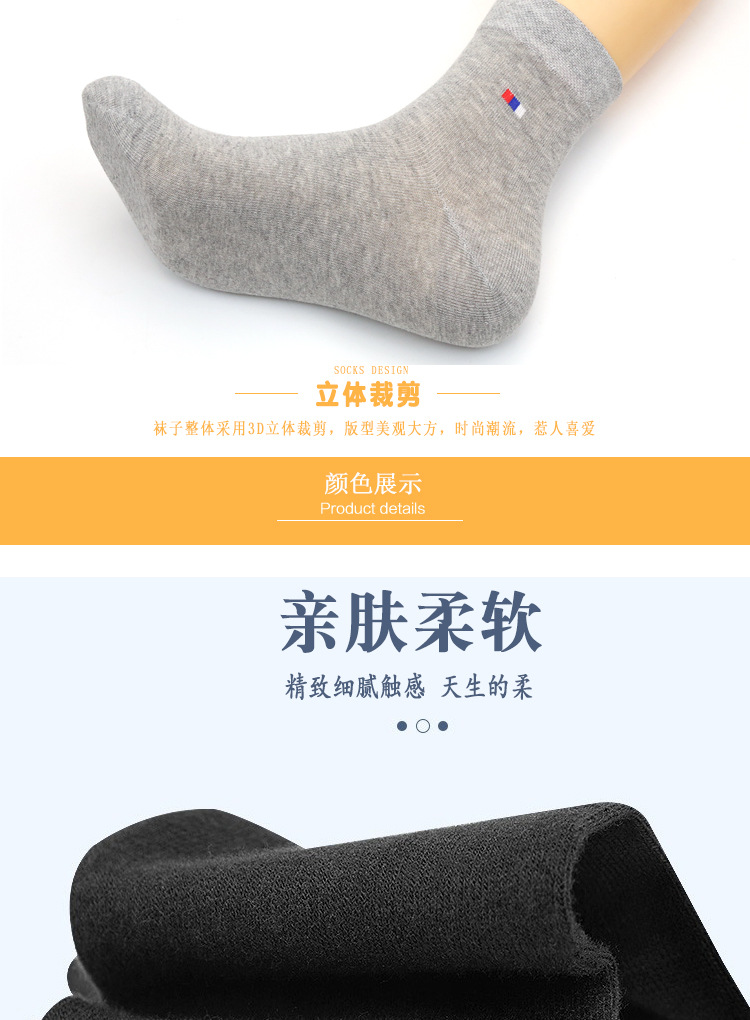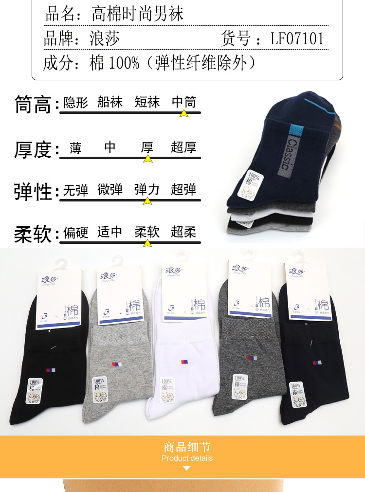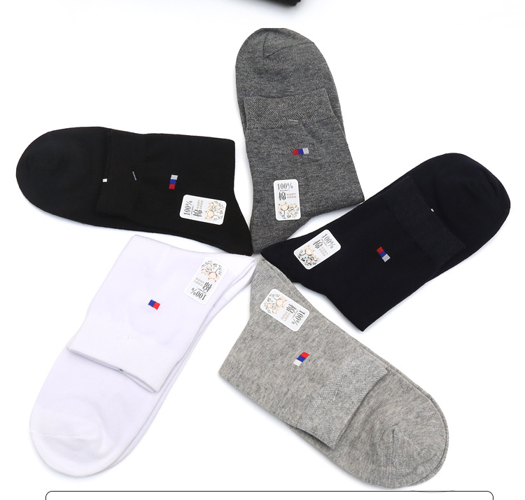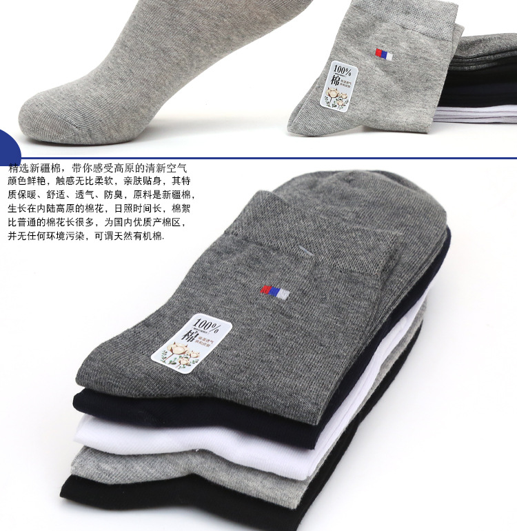 浪莎秋冬四季纯色100棉男士休闲男款纯色纯棉保暖中筒透气男袜子