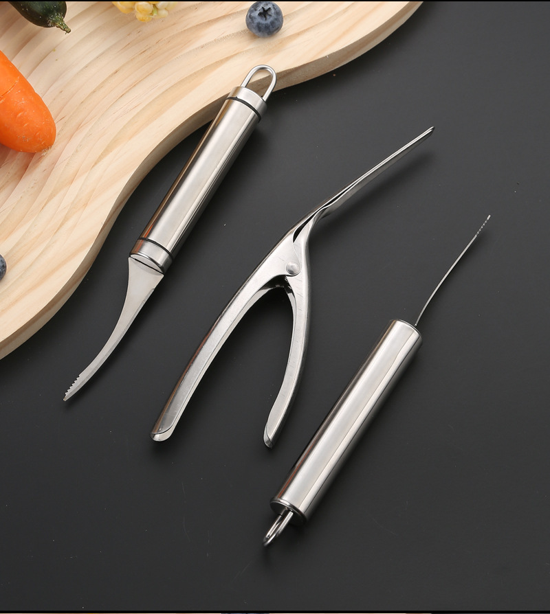 430不锈钢去虾线刀海鲜火锅厨房专用挑虾线不锈钢剥虾背神器