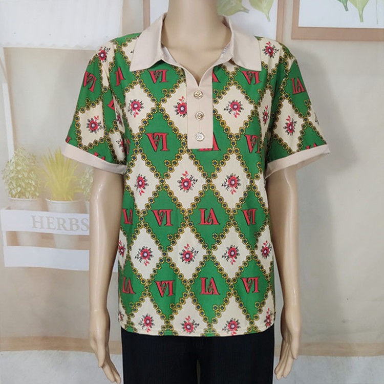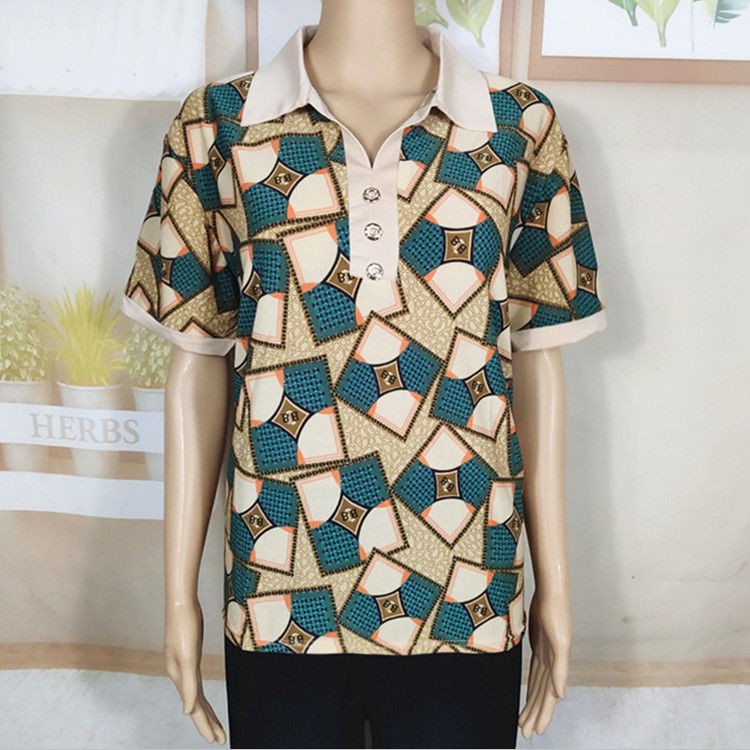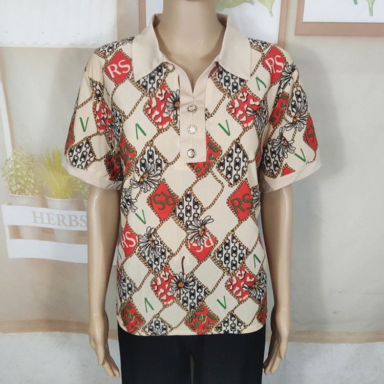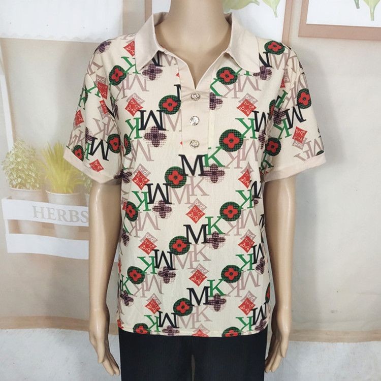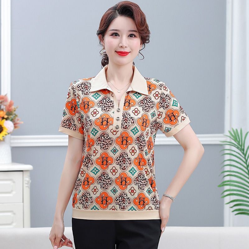 2023年中老年女装夏t恤打底衫短袖翻领时尚百搭减龄妈妈装冰丝衫